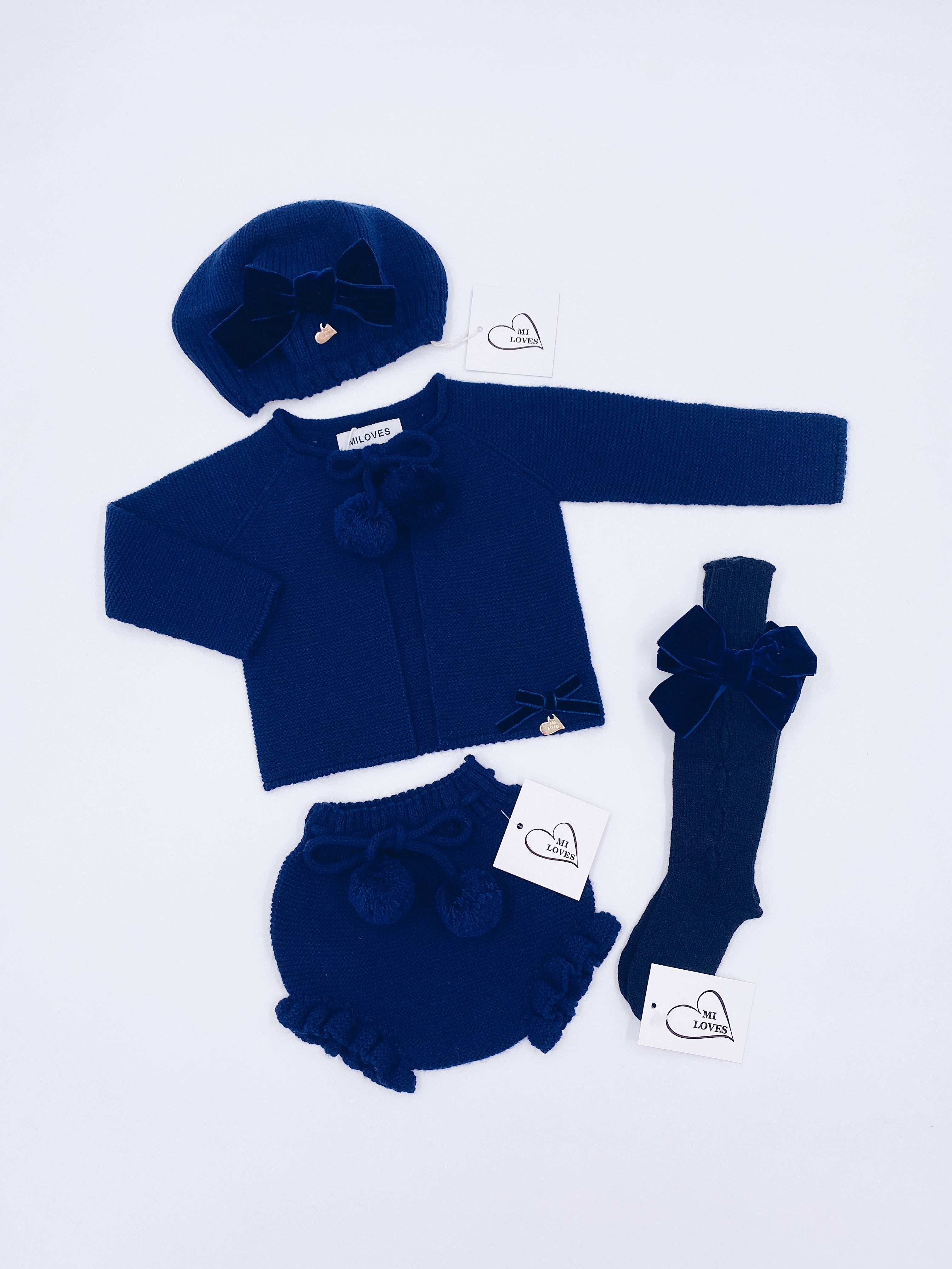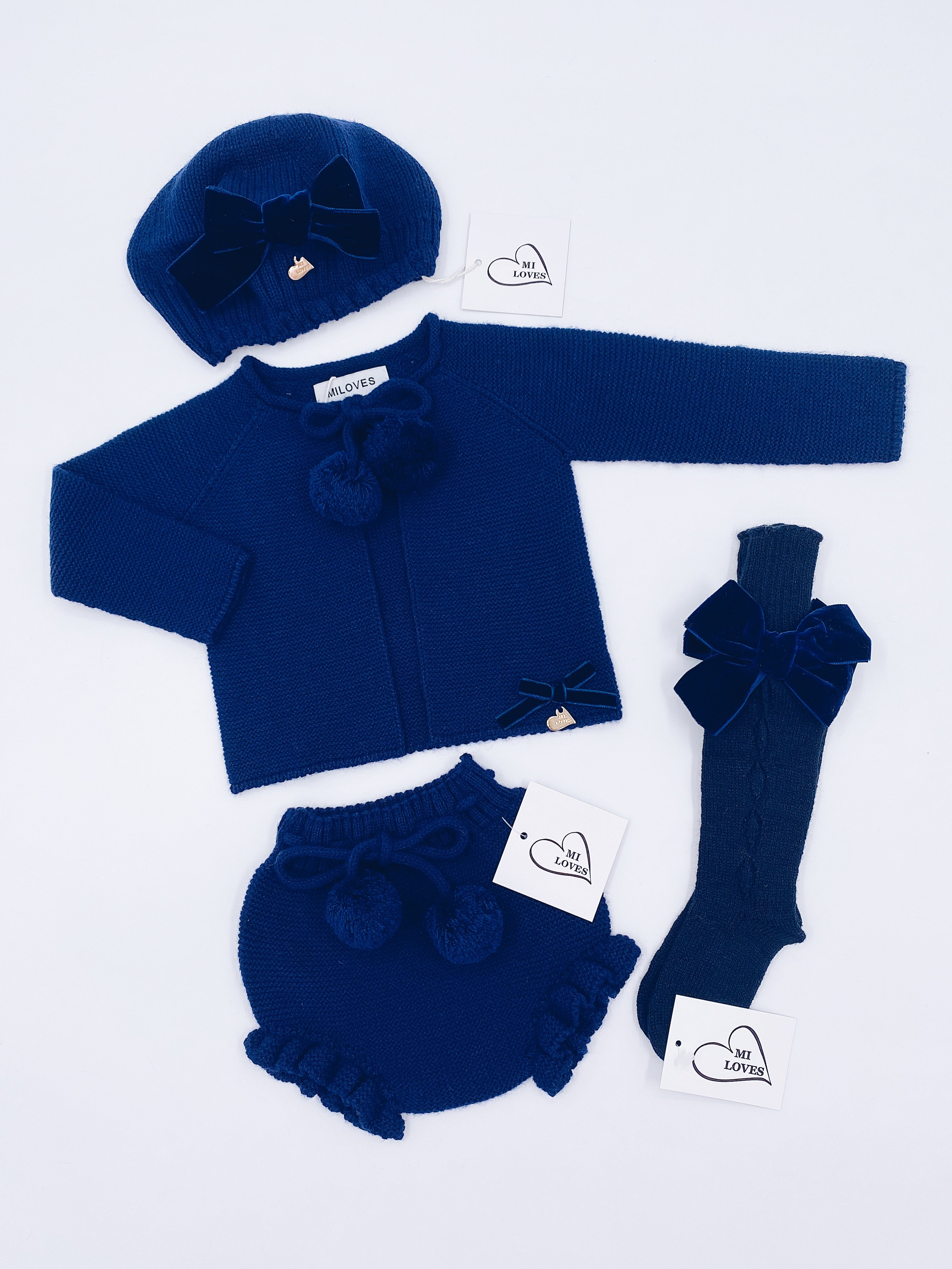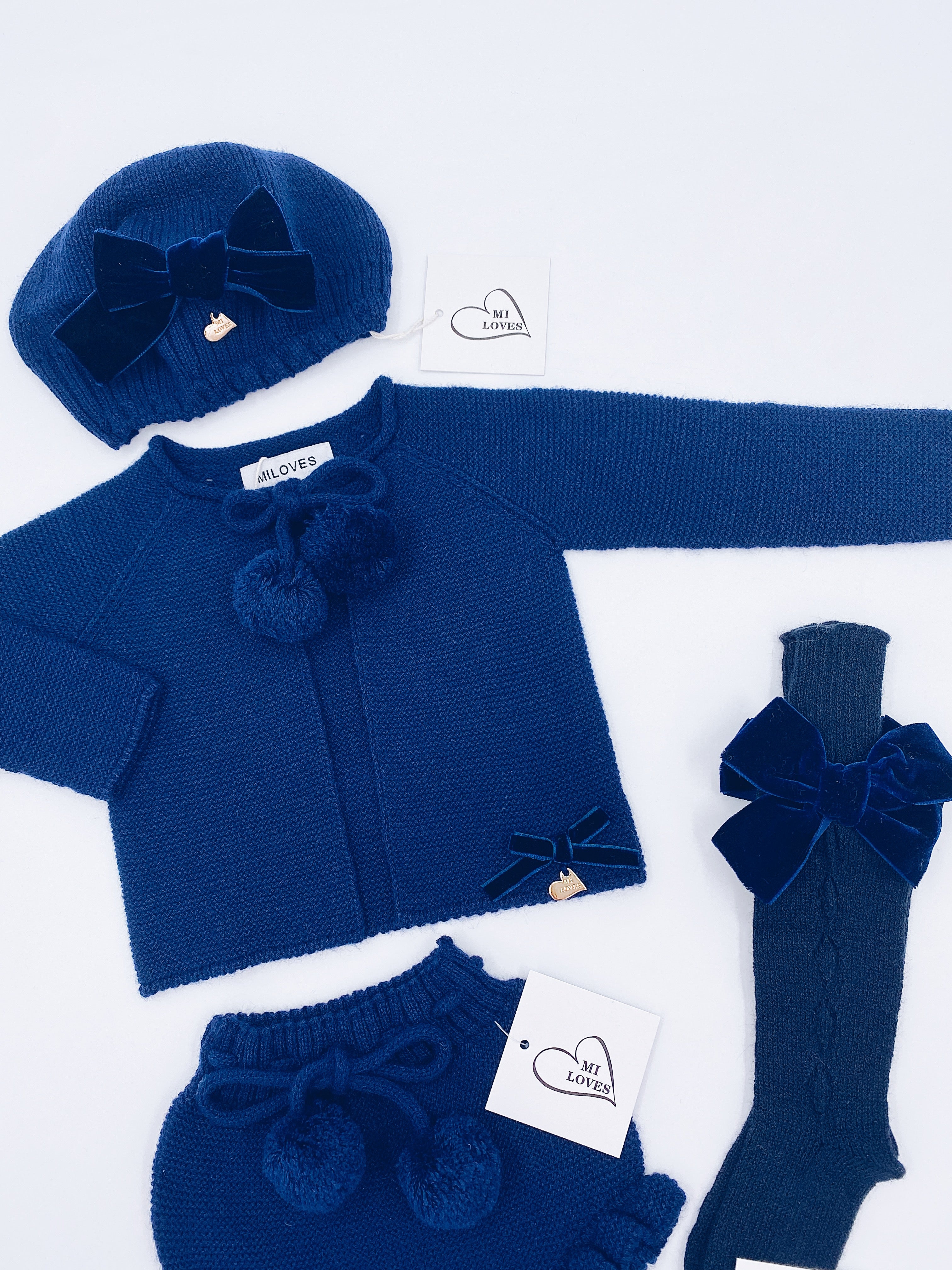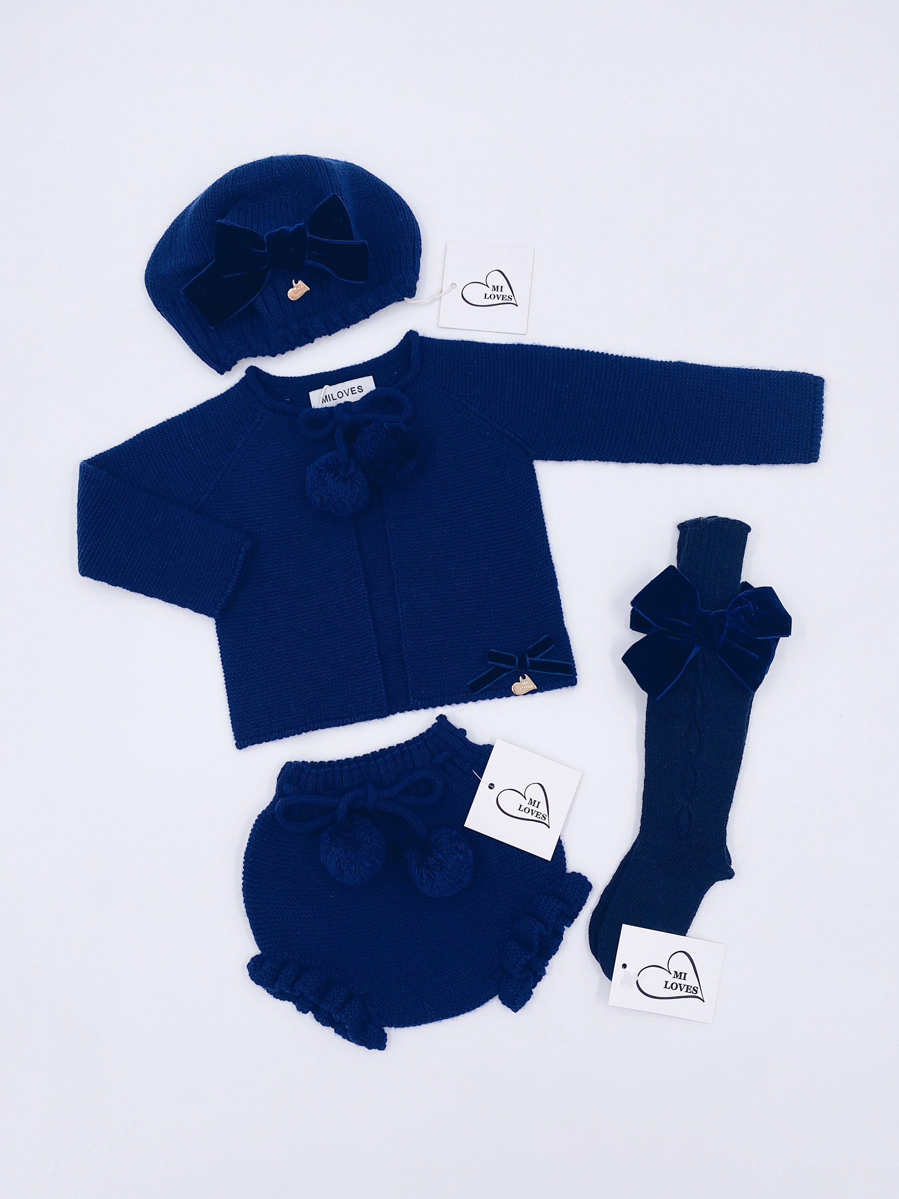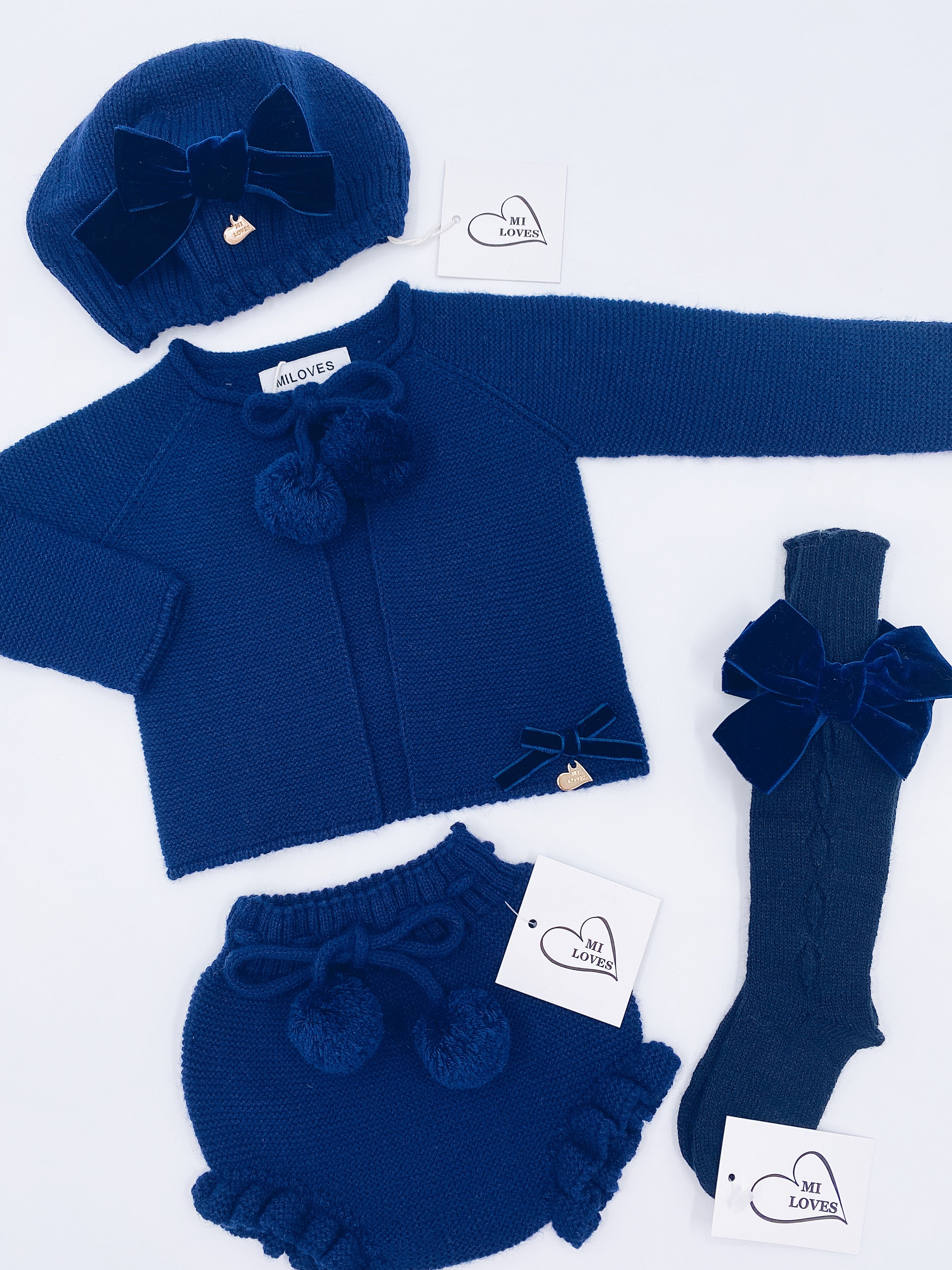 MI LOVES SIGNATURE Knitted Cardigan/short 2 piece set in Navy.