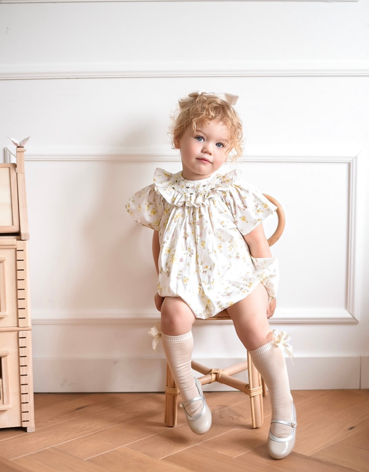 MI LOVES SS21 Beautiful Floral Romper with Hand Smoking details
