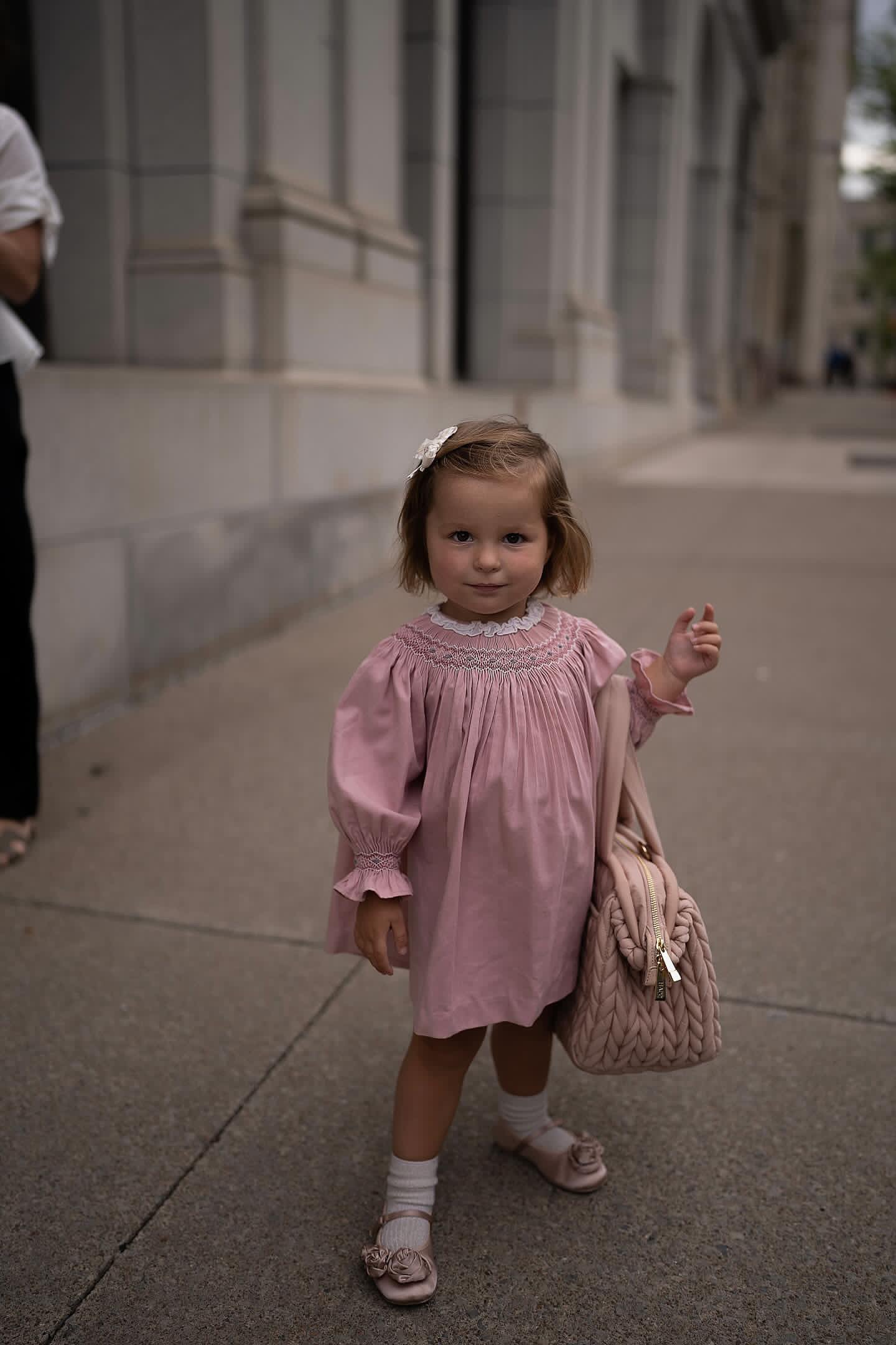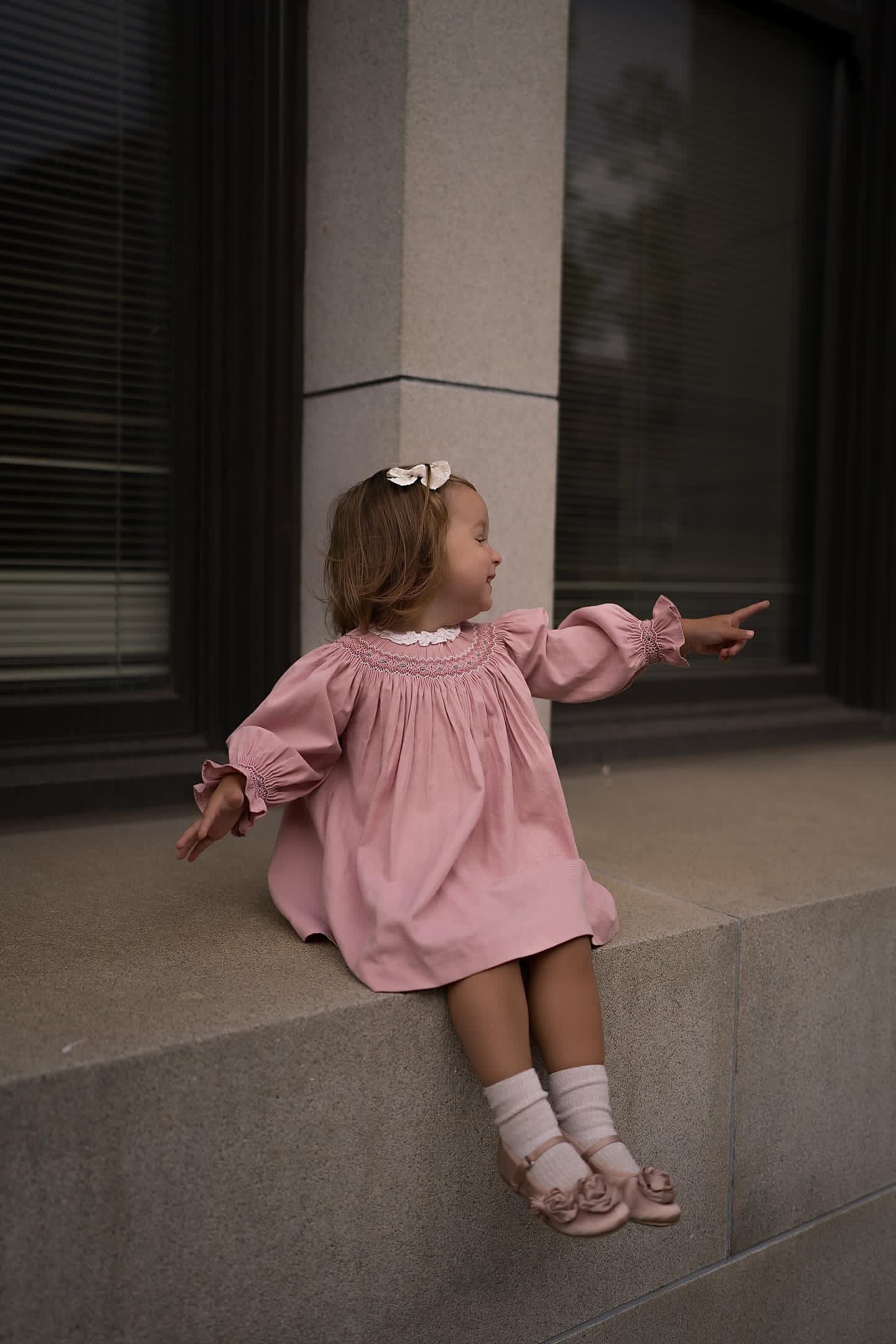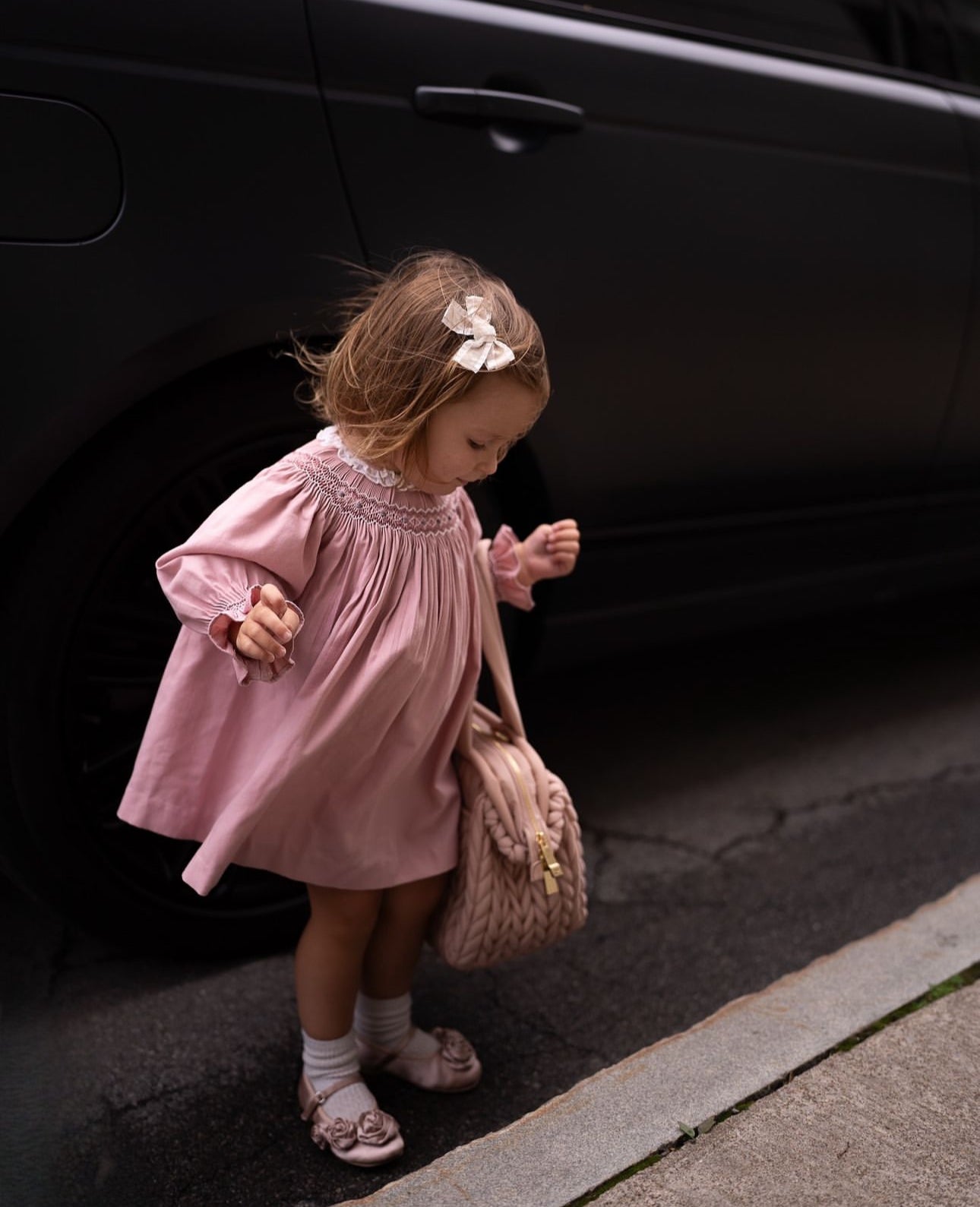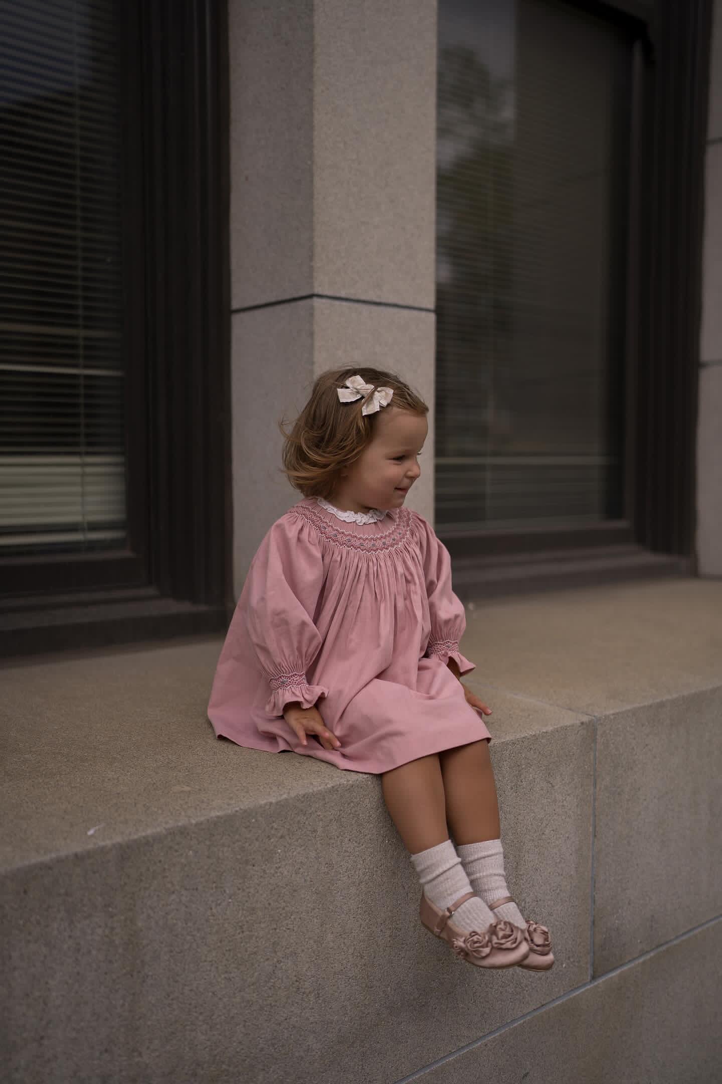 MI LOVES Beautiful Dusty Pink Girl Dress with hand smoked details.