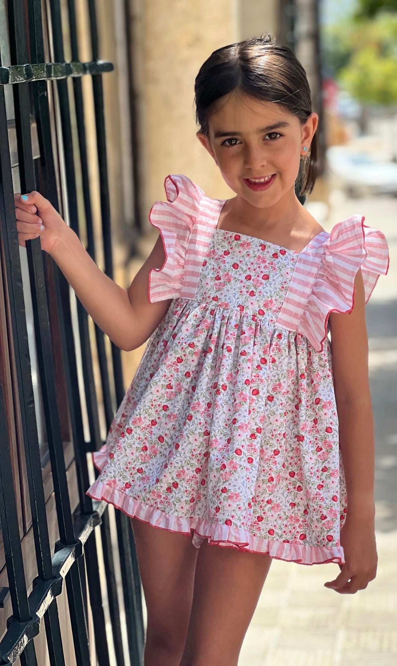 MI LOVES SIGNATURE Wild Strawberry print dress with Beautiful frill details.