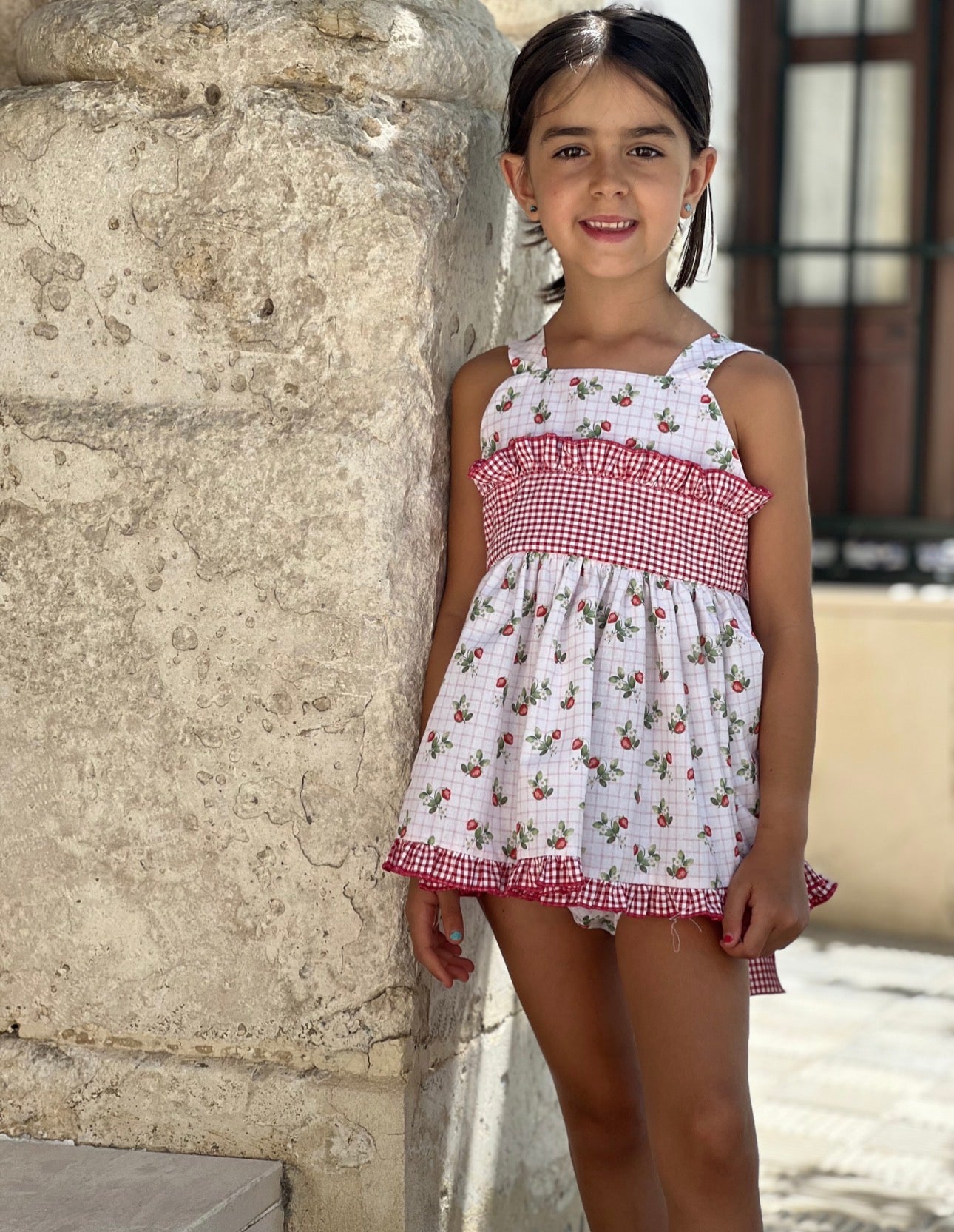 PRE ORDER(delivery in 10 days)MI LOVES SIGNATURE Berry print dress/bloomers set with Beautiful frill details.
