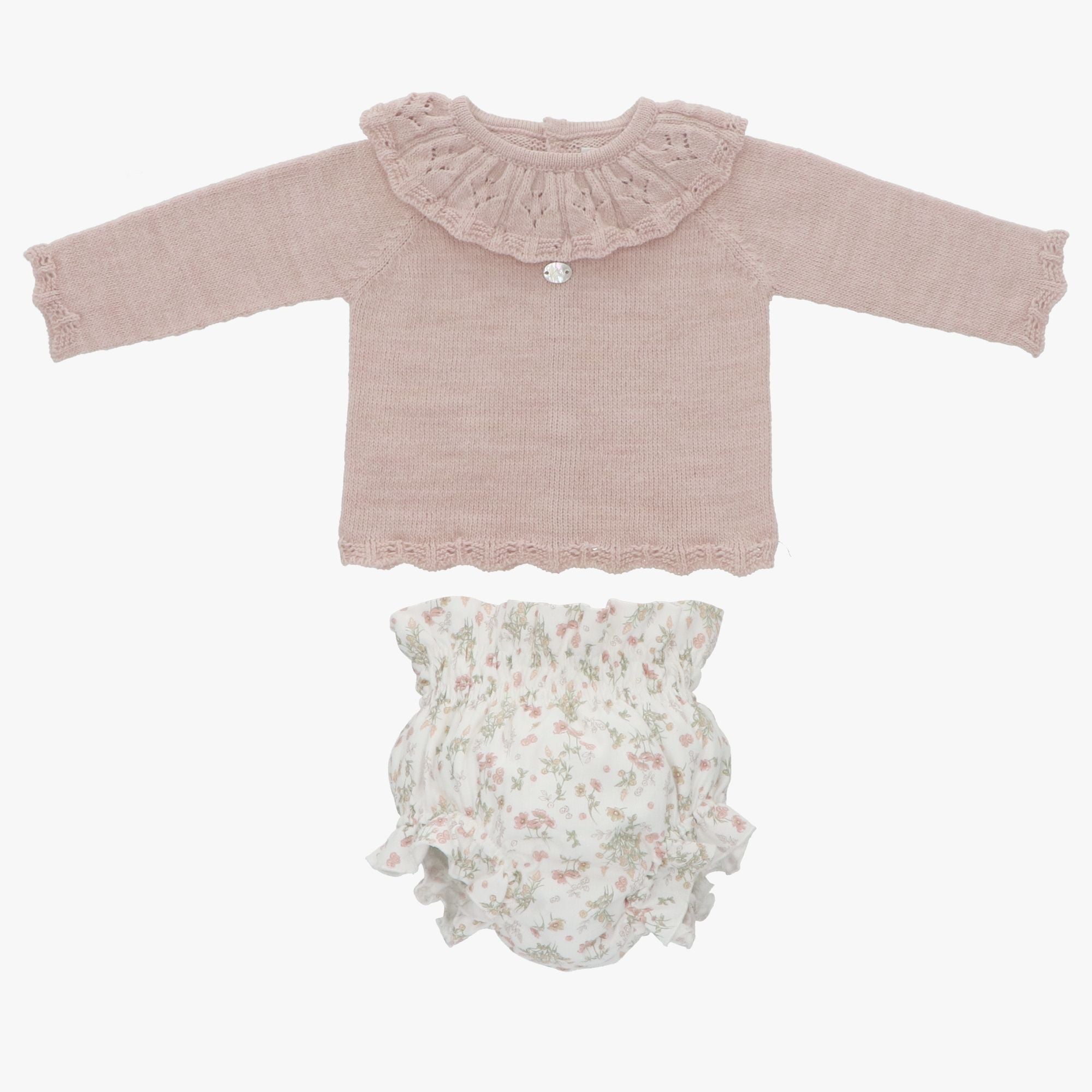 Beautiful Dusty pink Knitted jumper and floral print bloomers 2 piece set