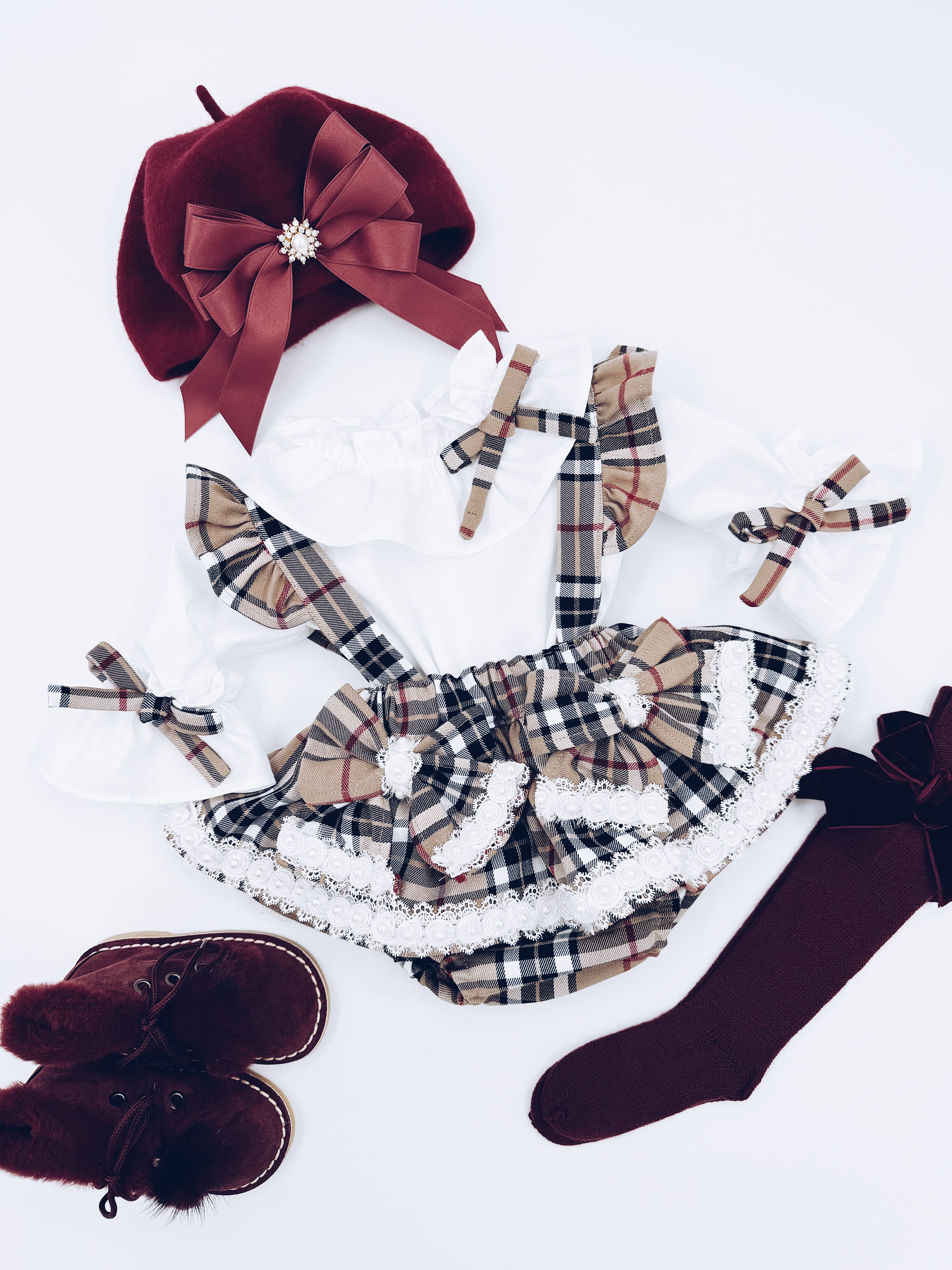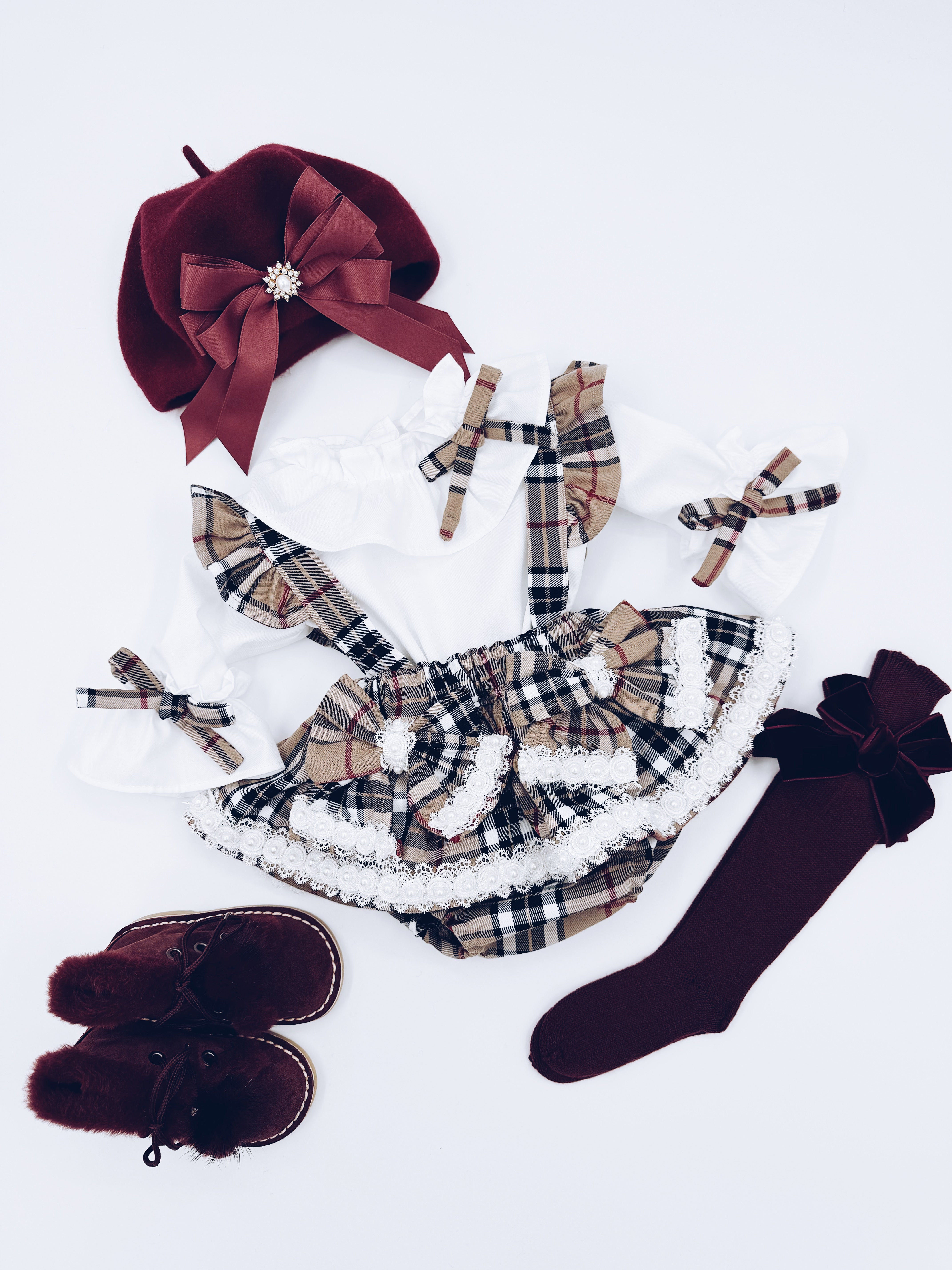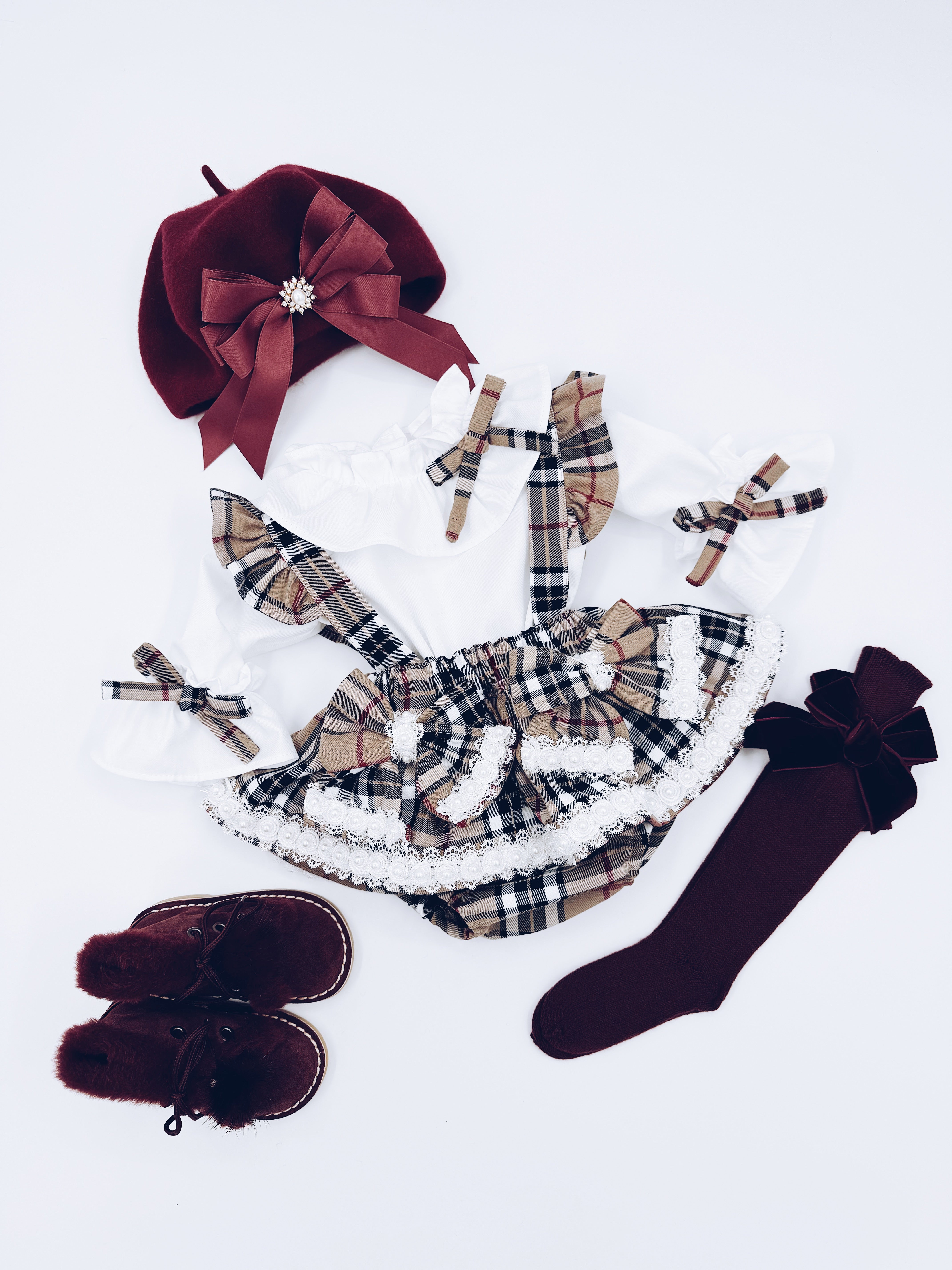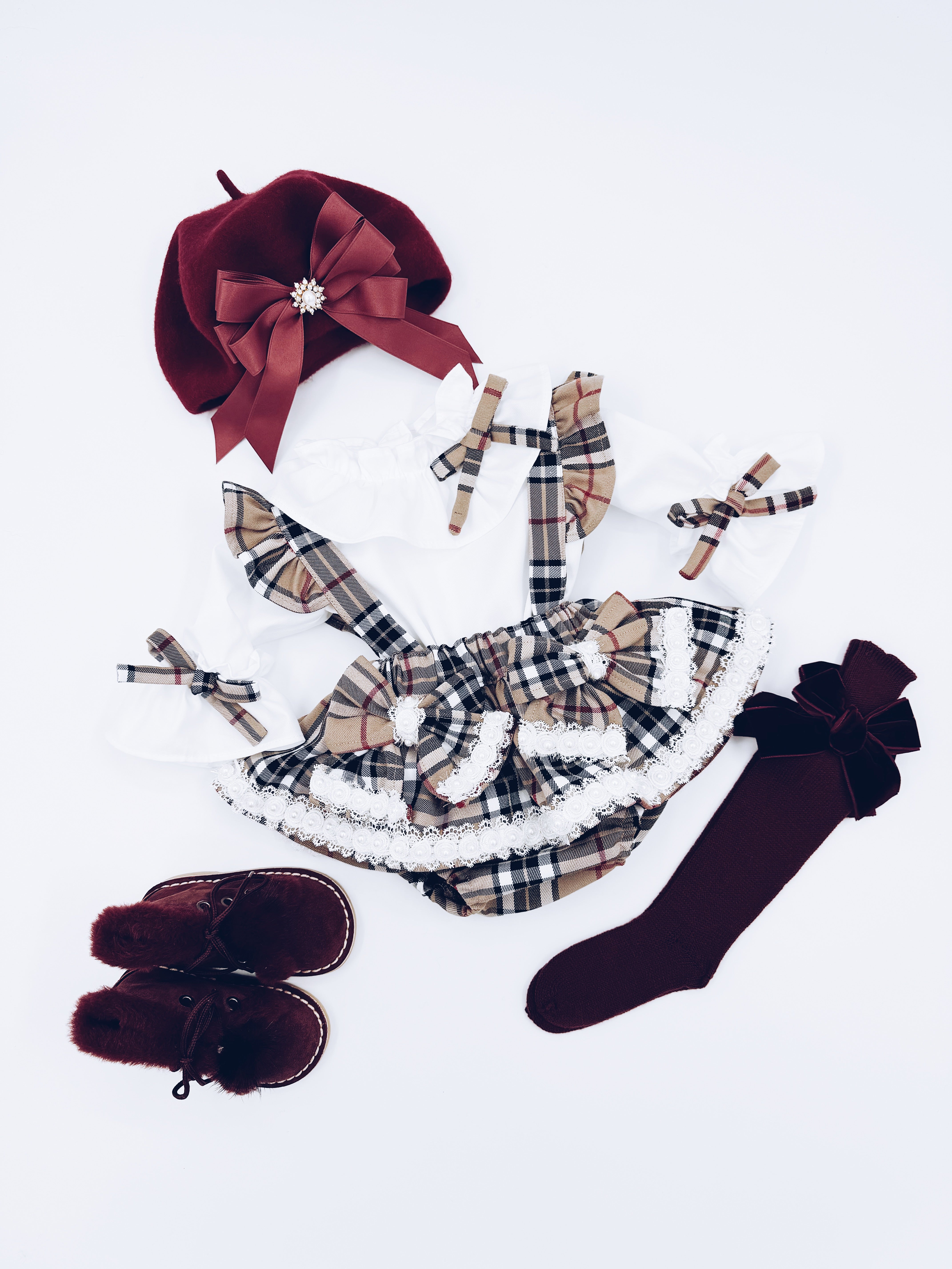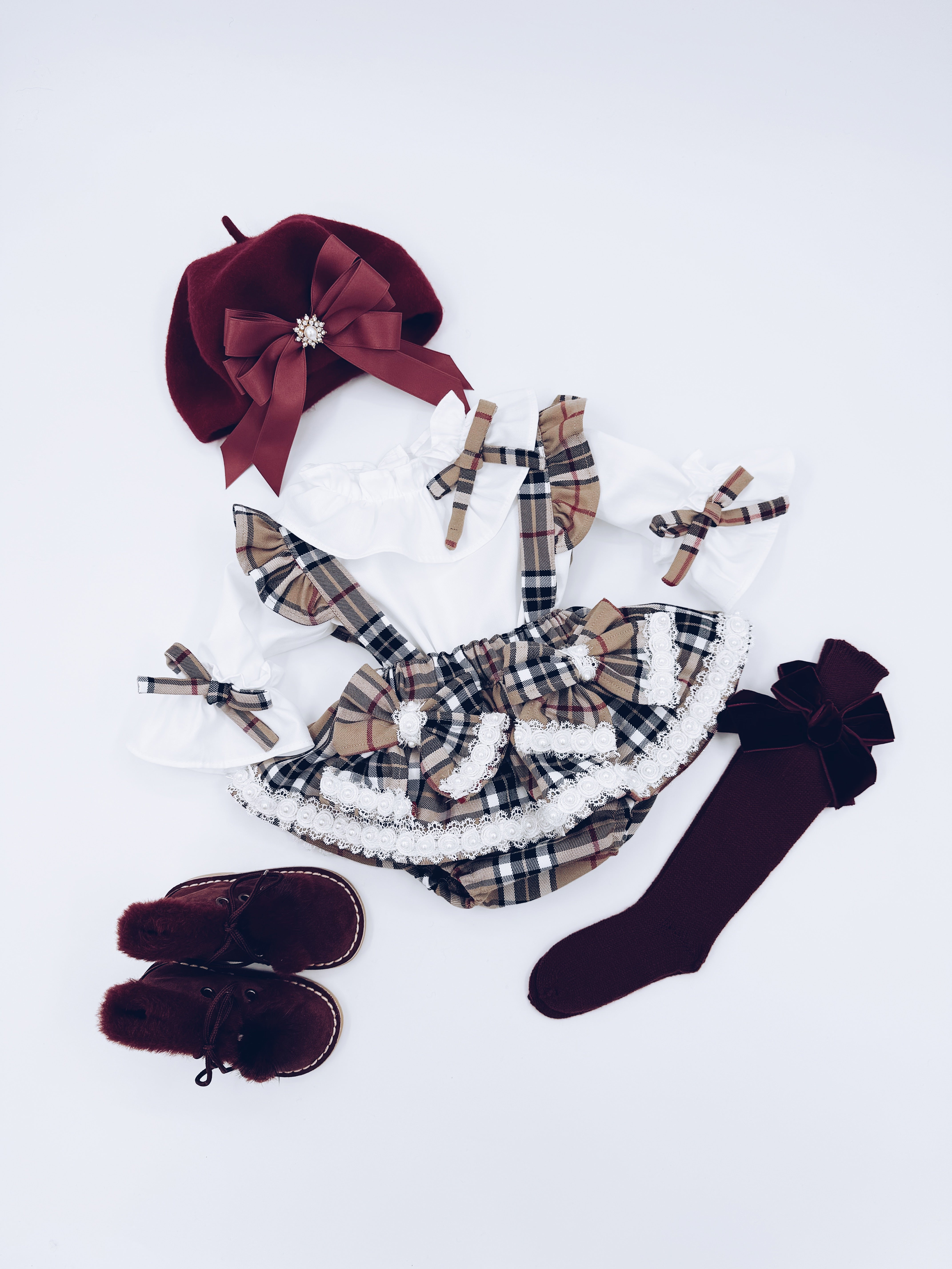 Matching Burgundy beret,knitted socks and Suede boots(Sold Separately)also available on the website.