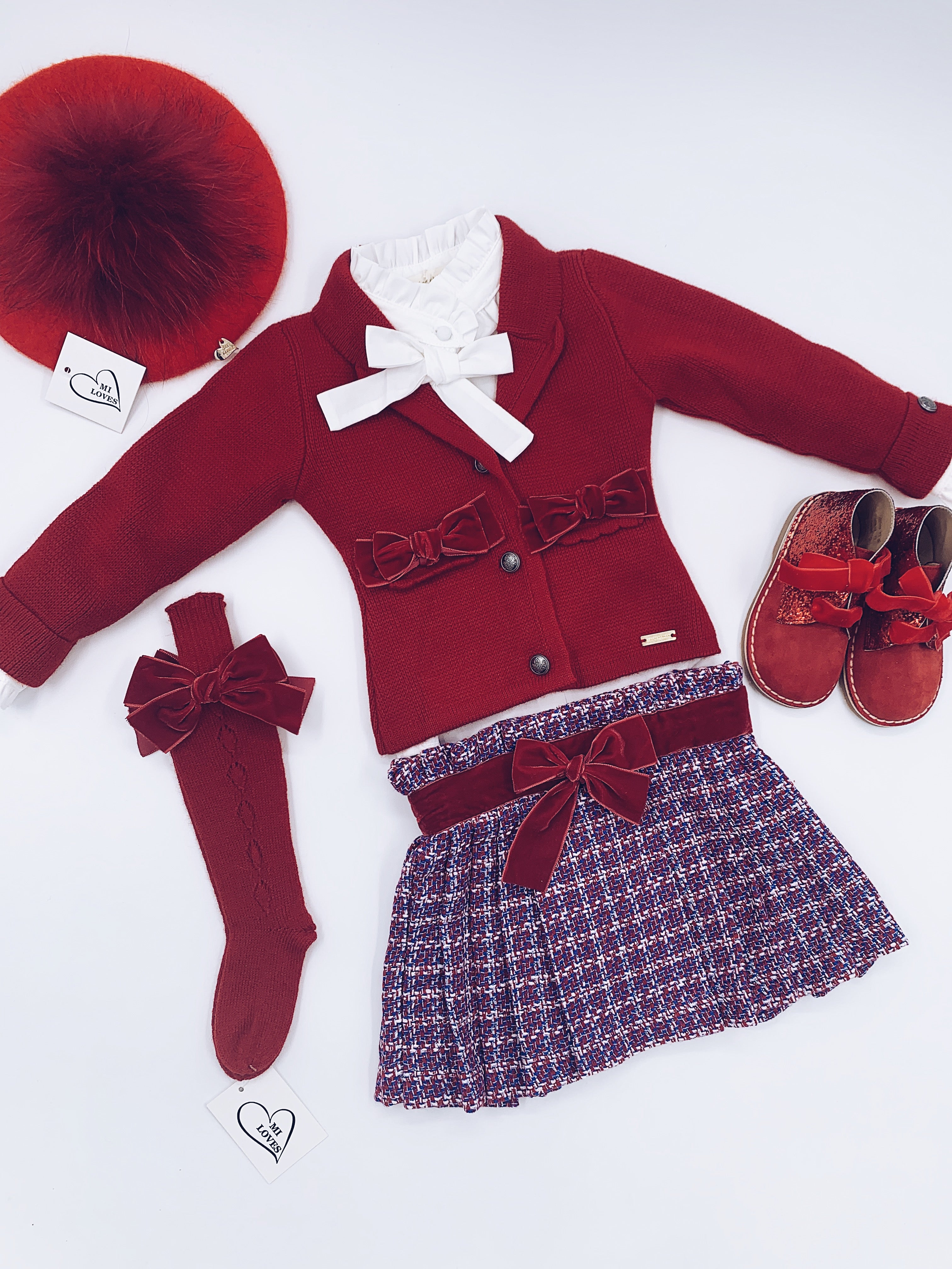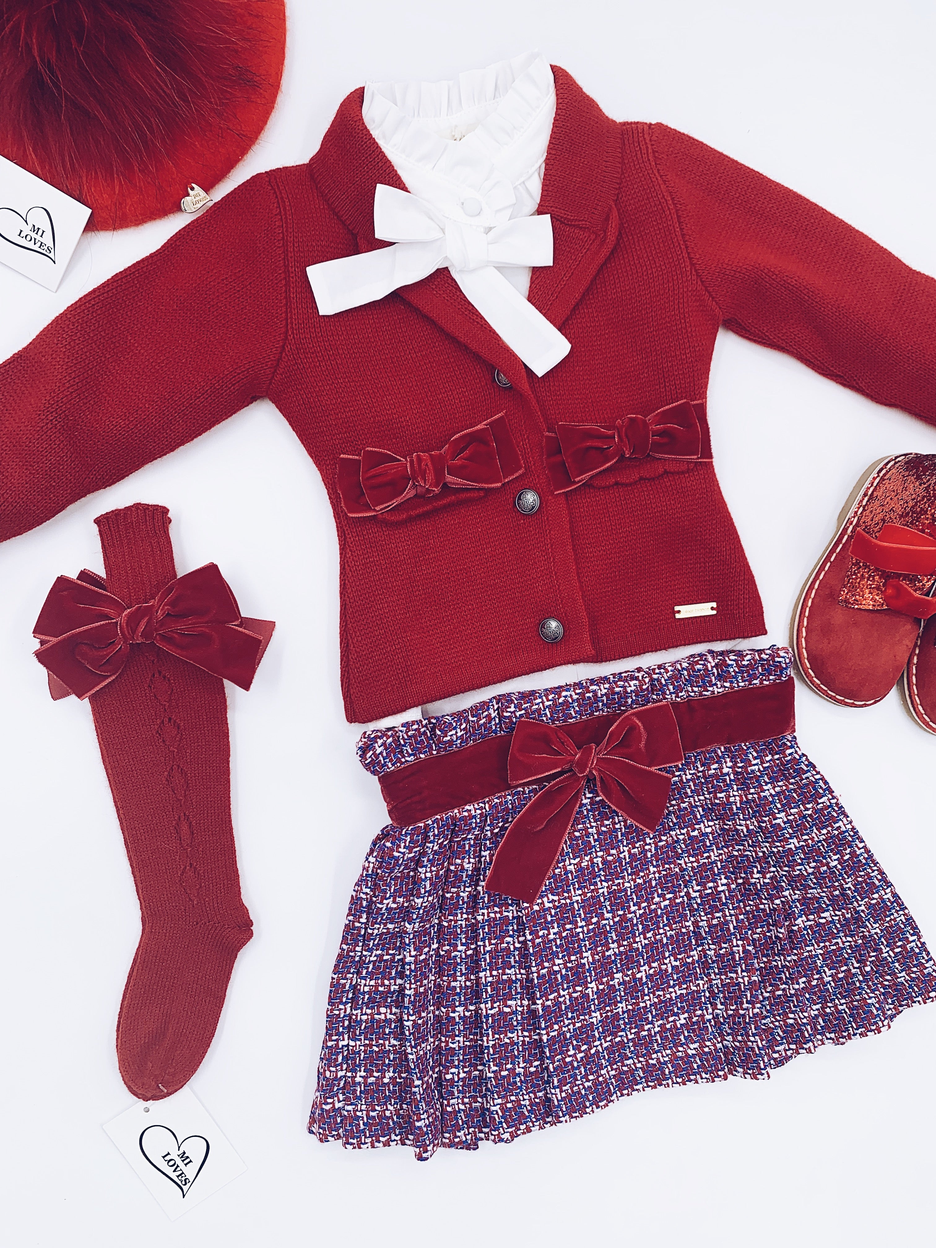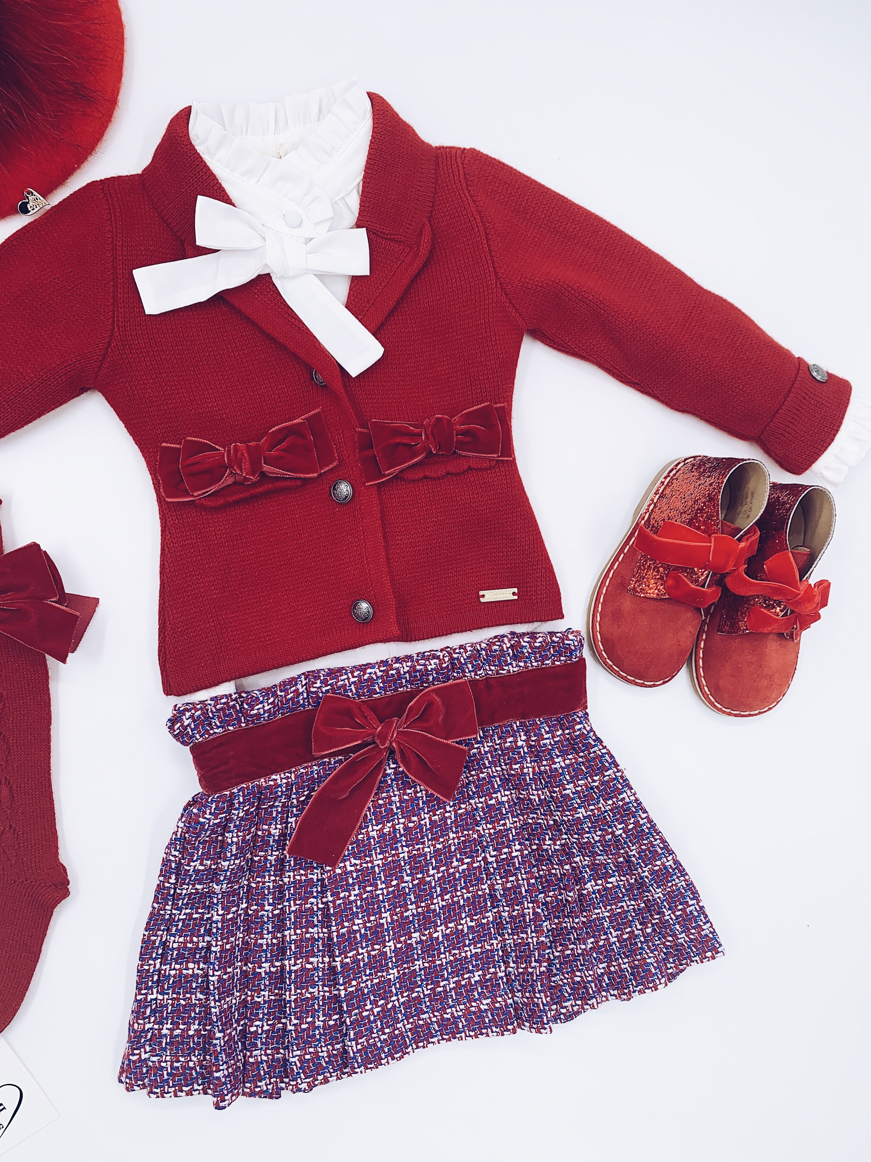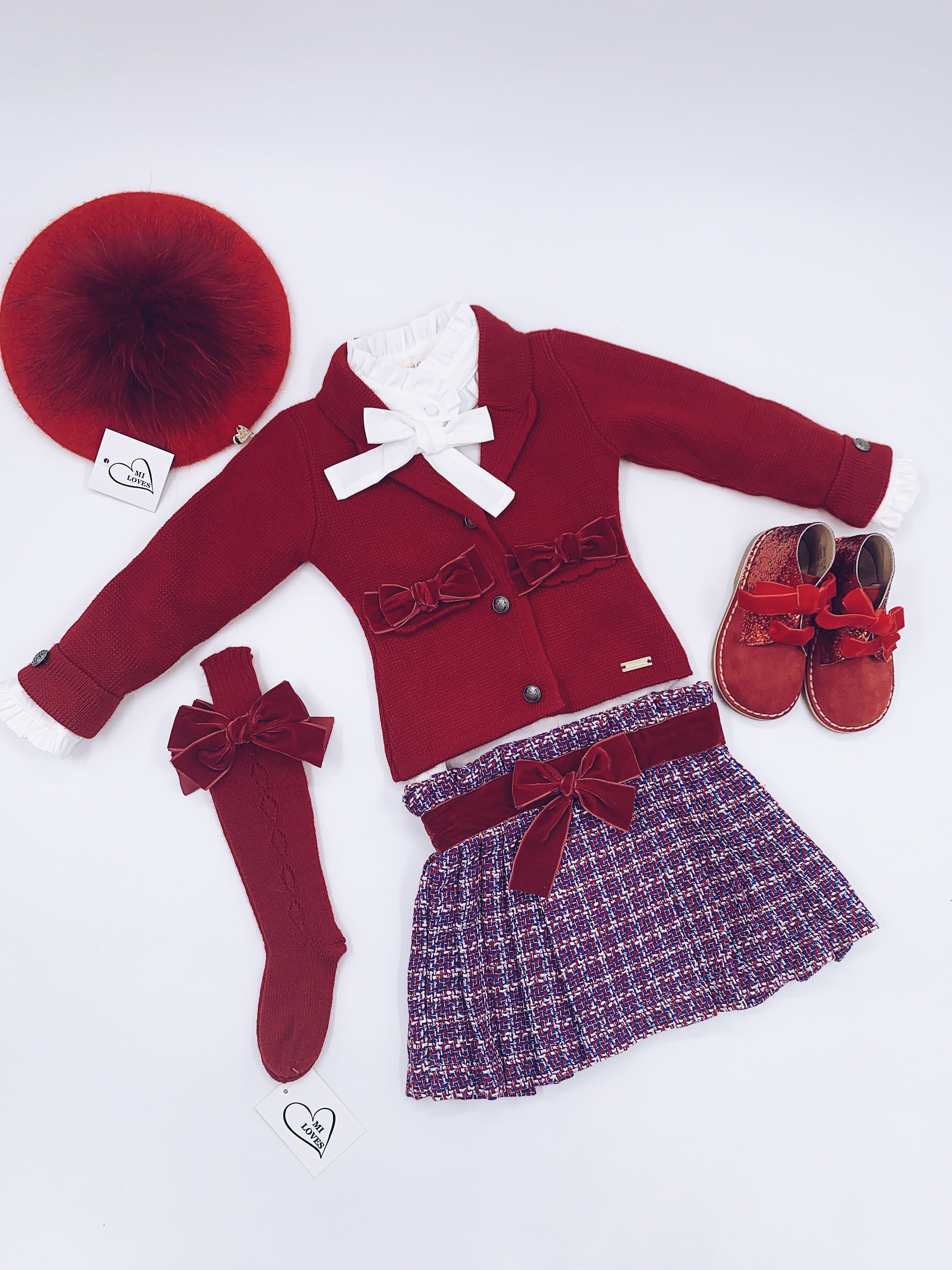 Beautiful Knitted Blazer,Blouse with bow,Pleated skirt!