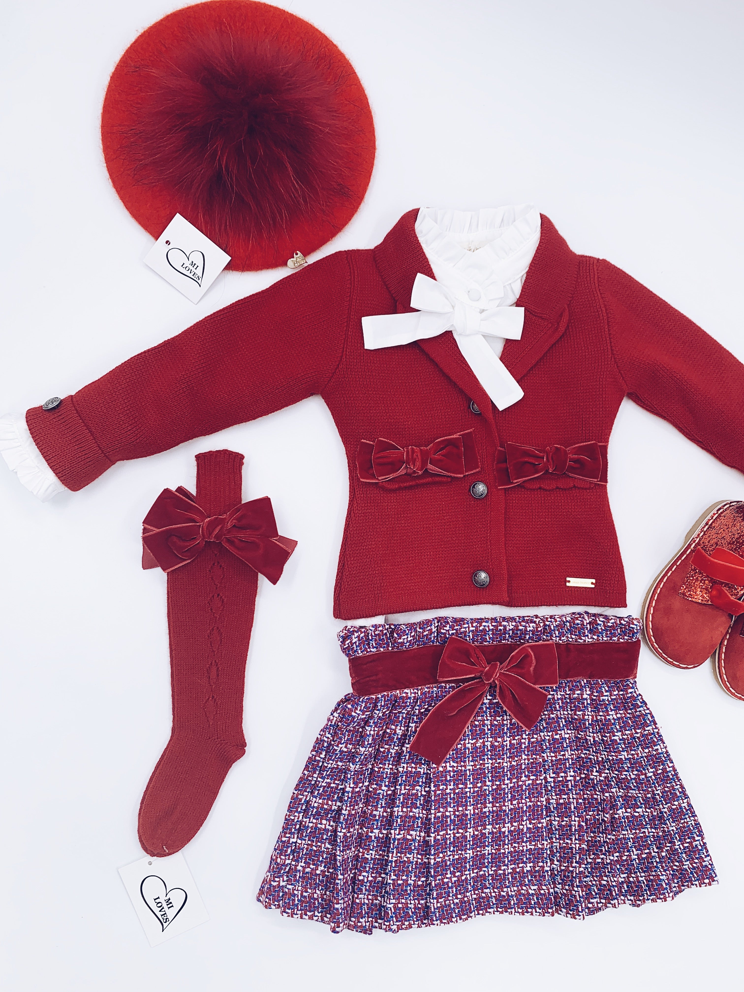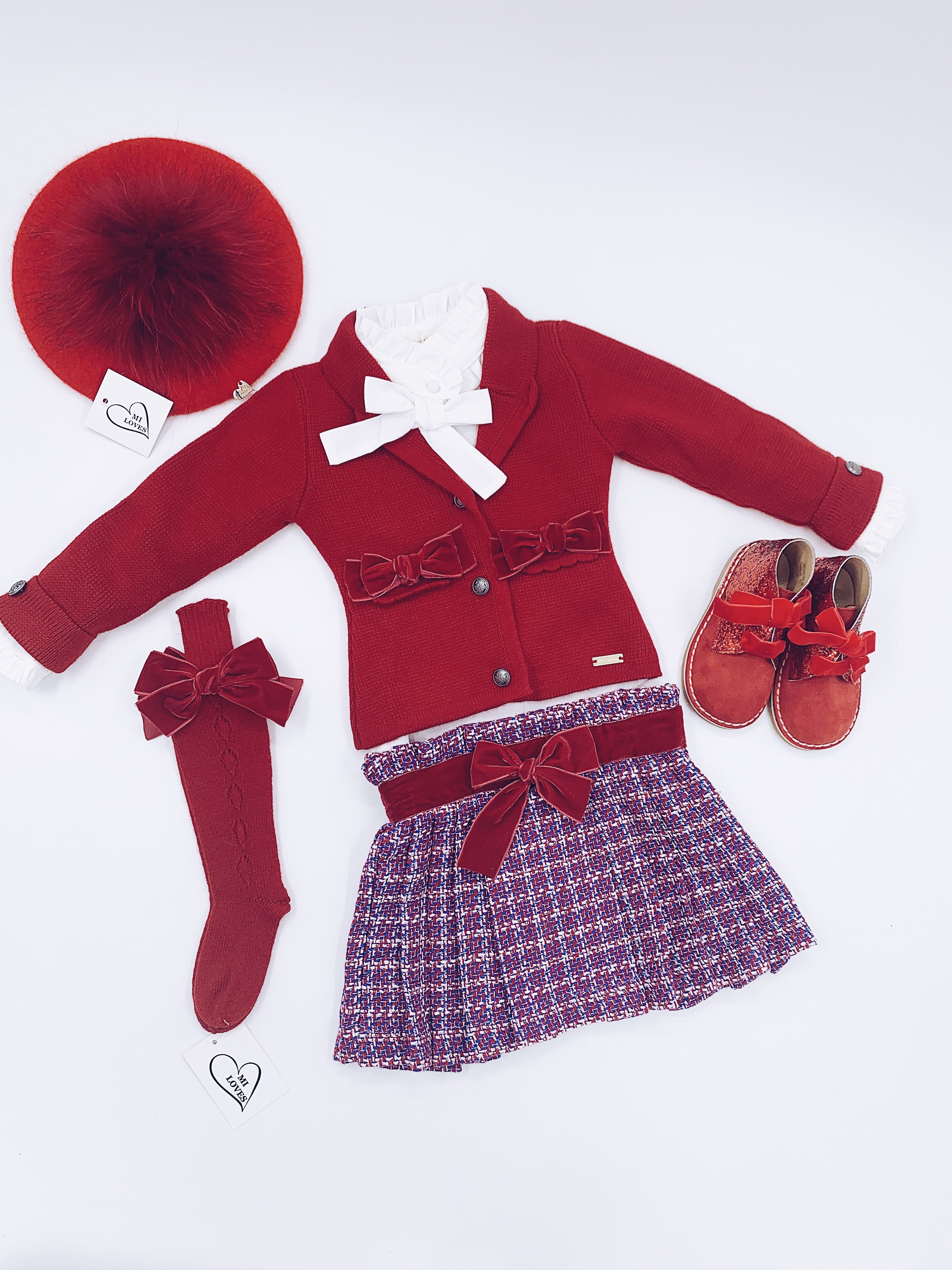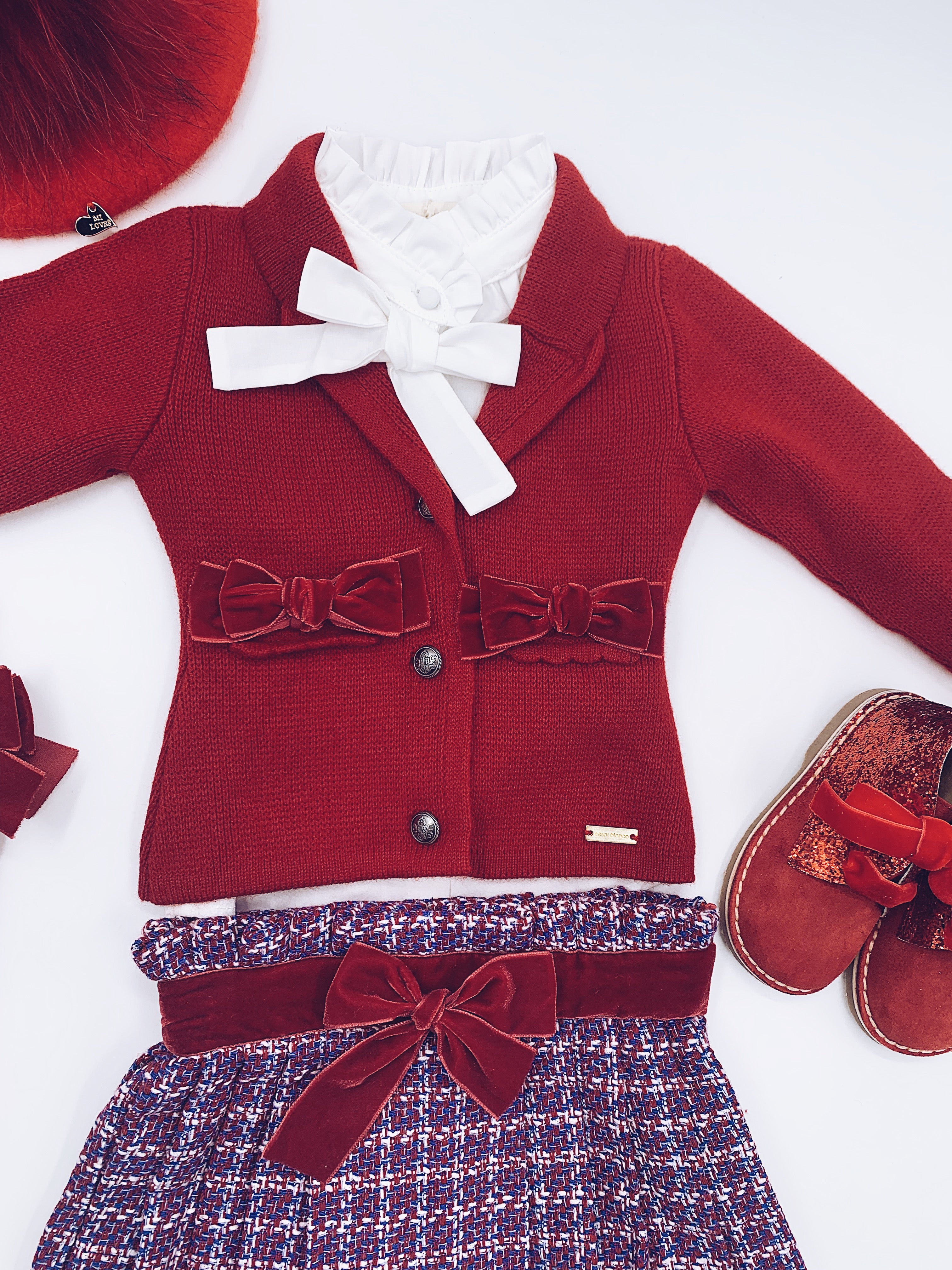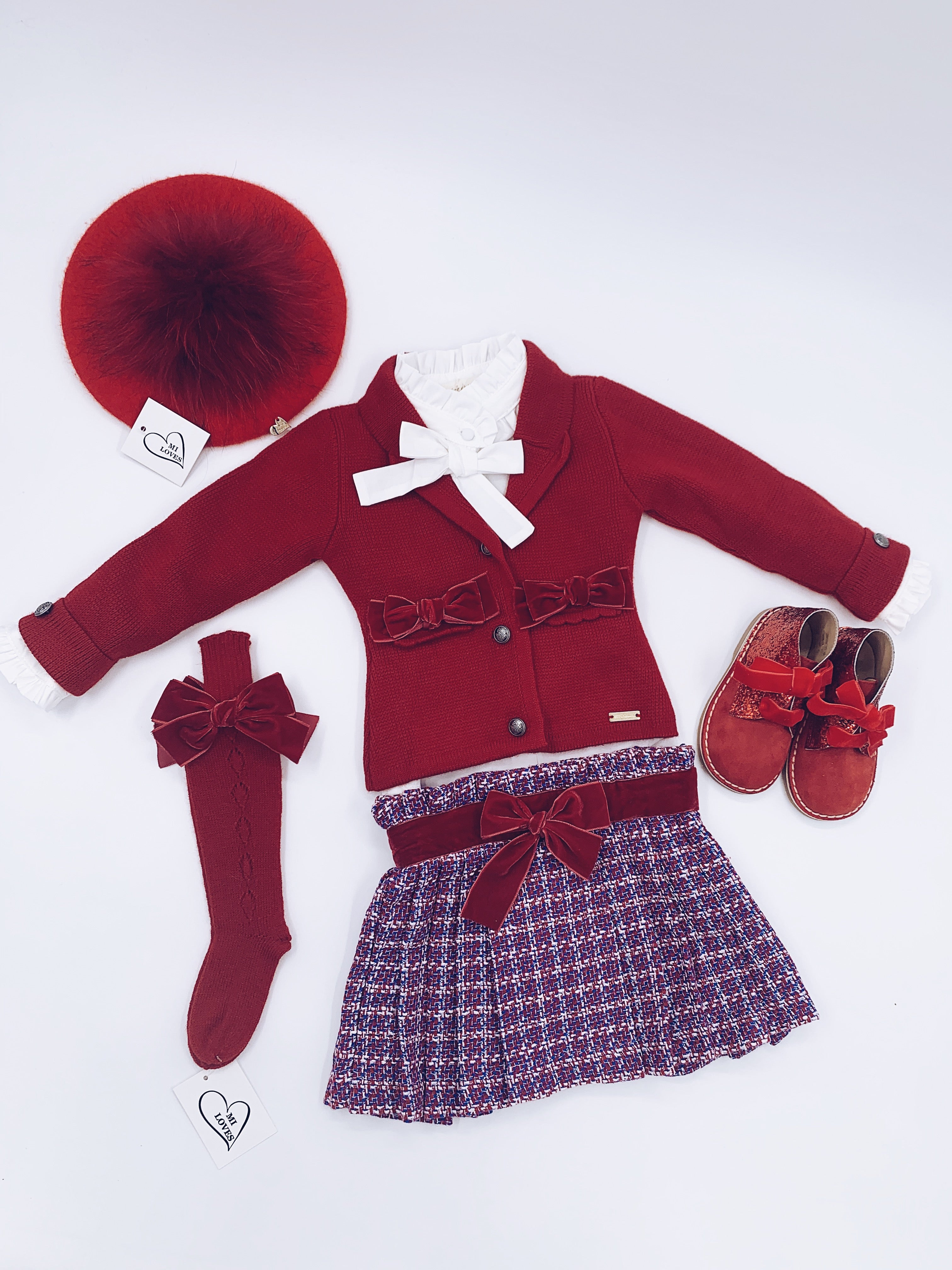 Beautiful Knitted Blazer,Blouse with bow,Pleated skirt!