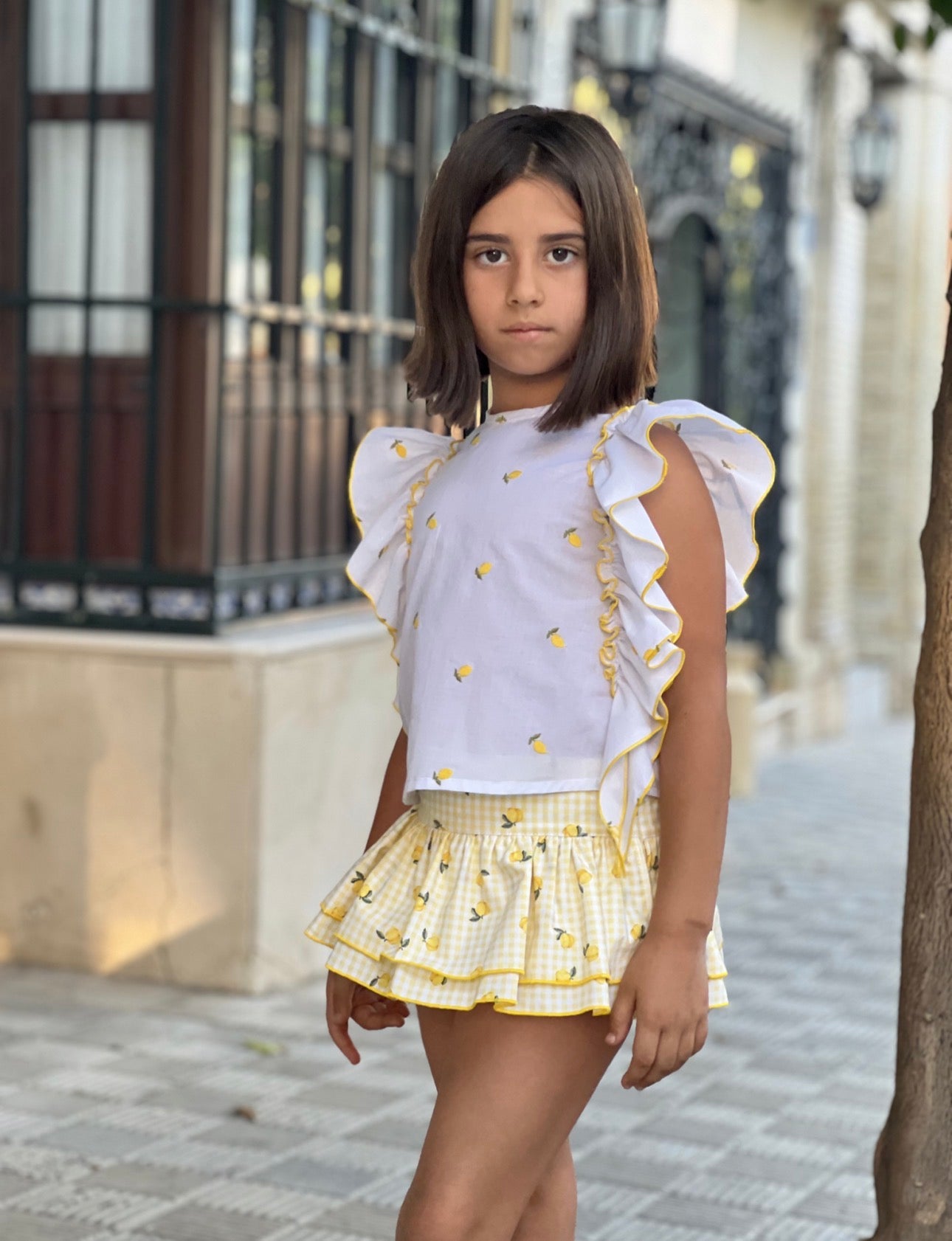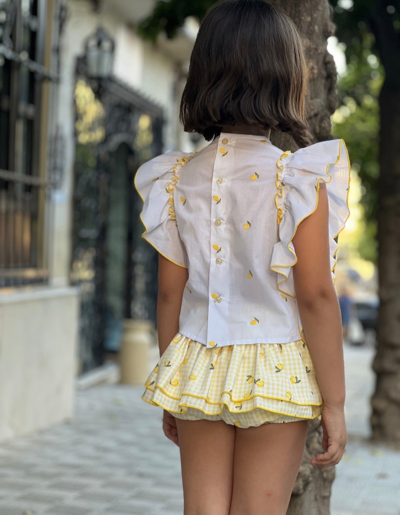 PRE ORDER(delivery at the end of February)MI LOVES SIGNATURE Lemon print Blouse/Bloomers set with Beautiful frill details.
