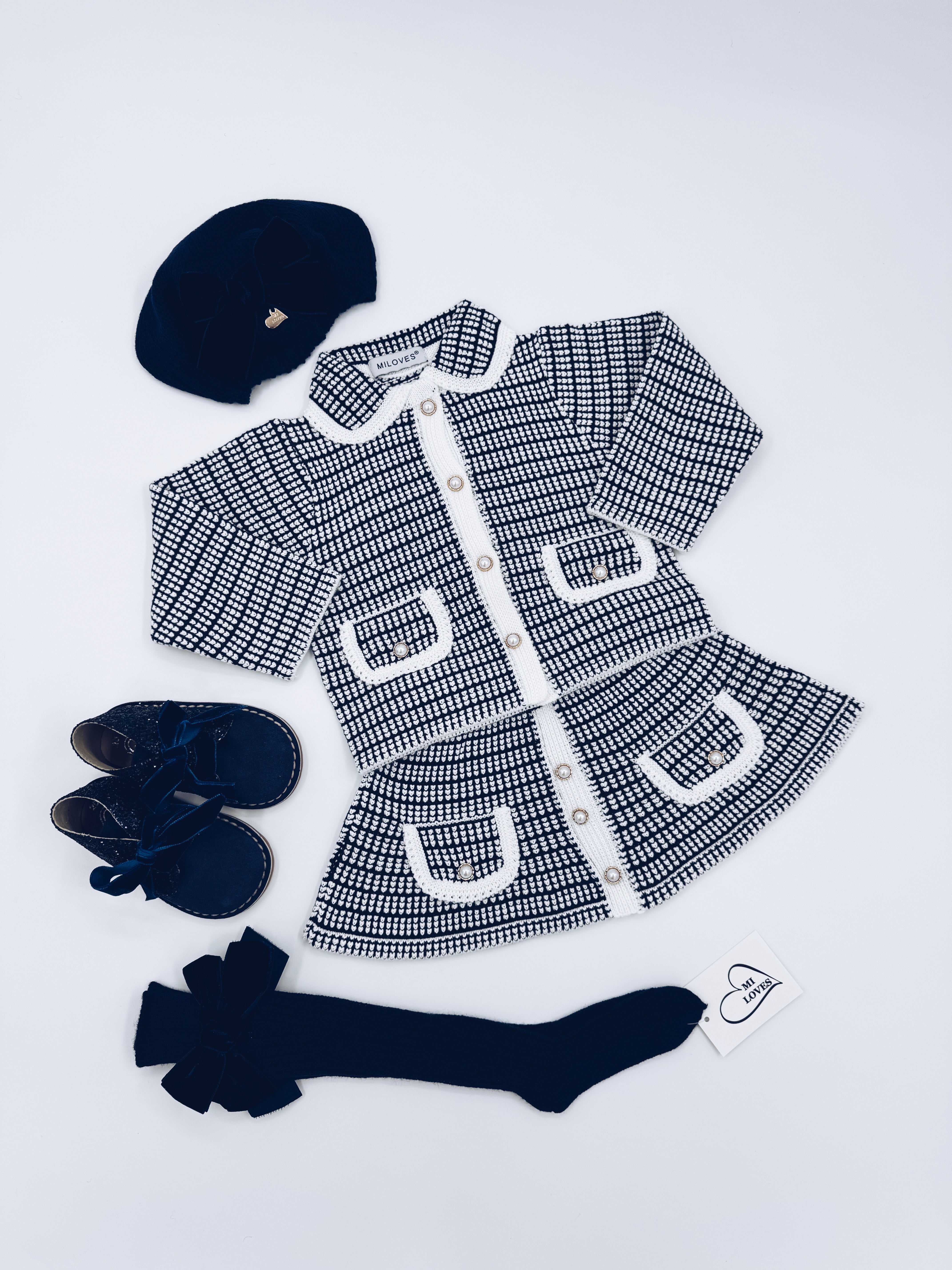 MI LOVES Signature Navy/White Lurex Skirt 2 piece set.