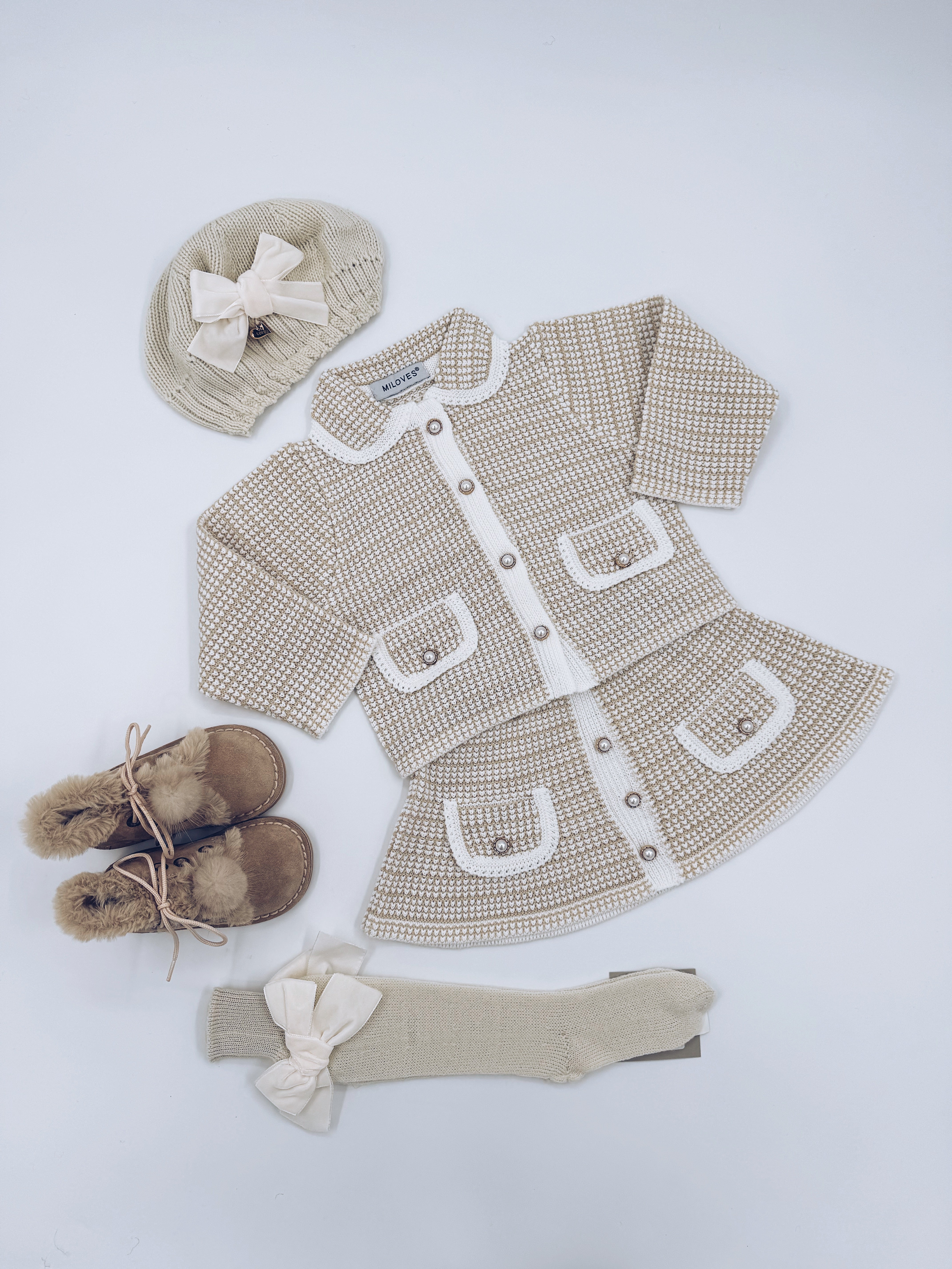 MI LOVES Signature Cream/White Lurex Skirt 2 piece set.