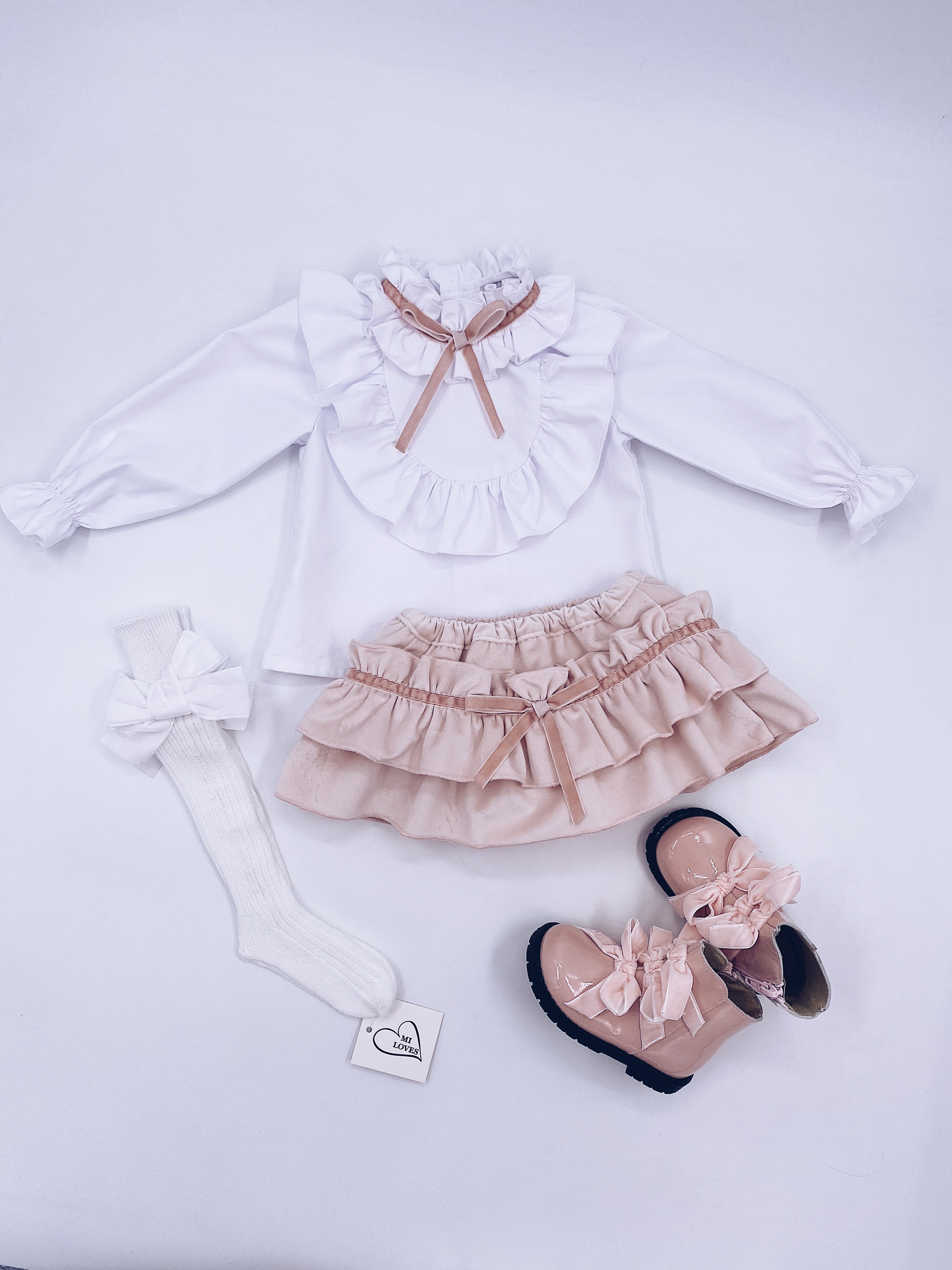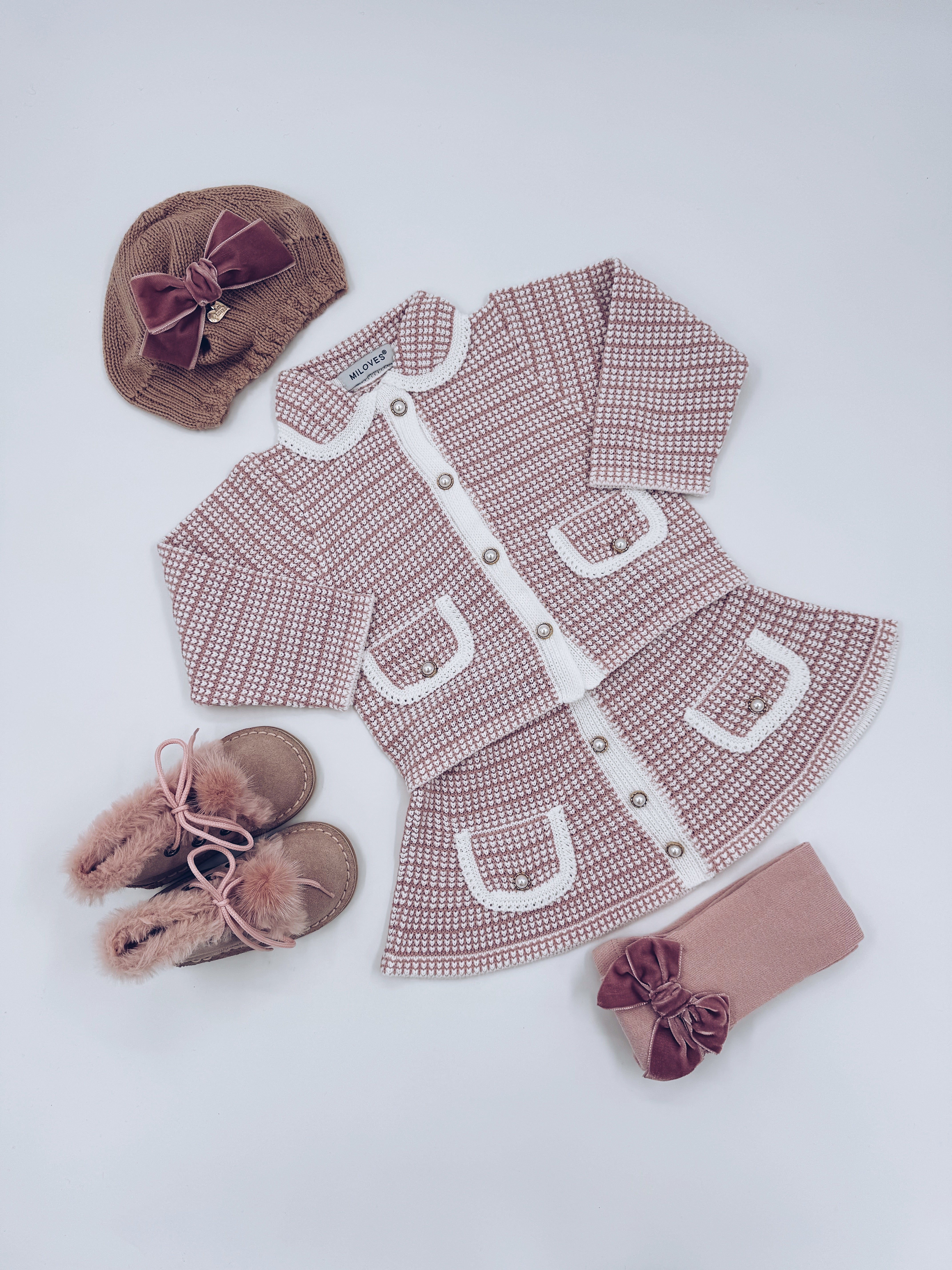 MI LOVES Signature Dusty Pink/White Lurex Skirt 2 piece set.