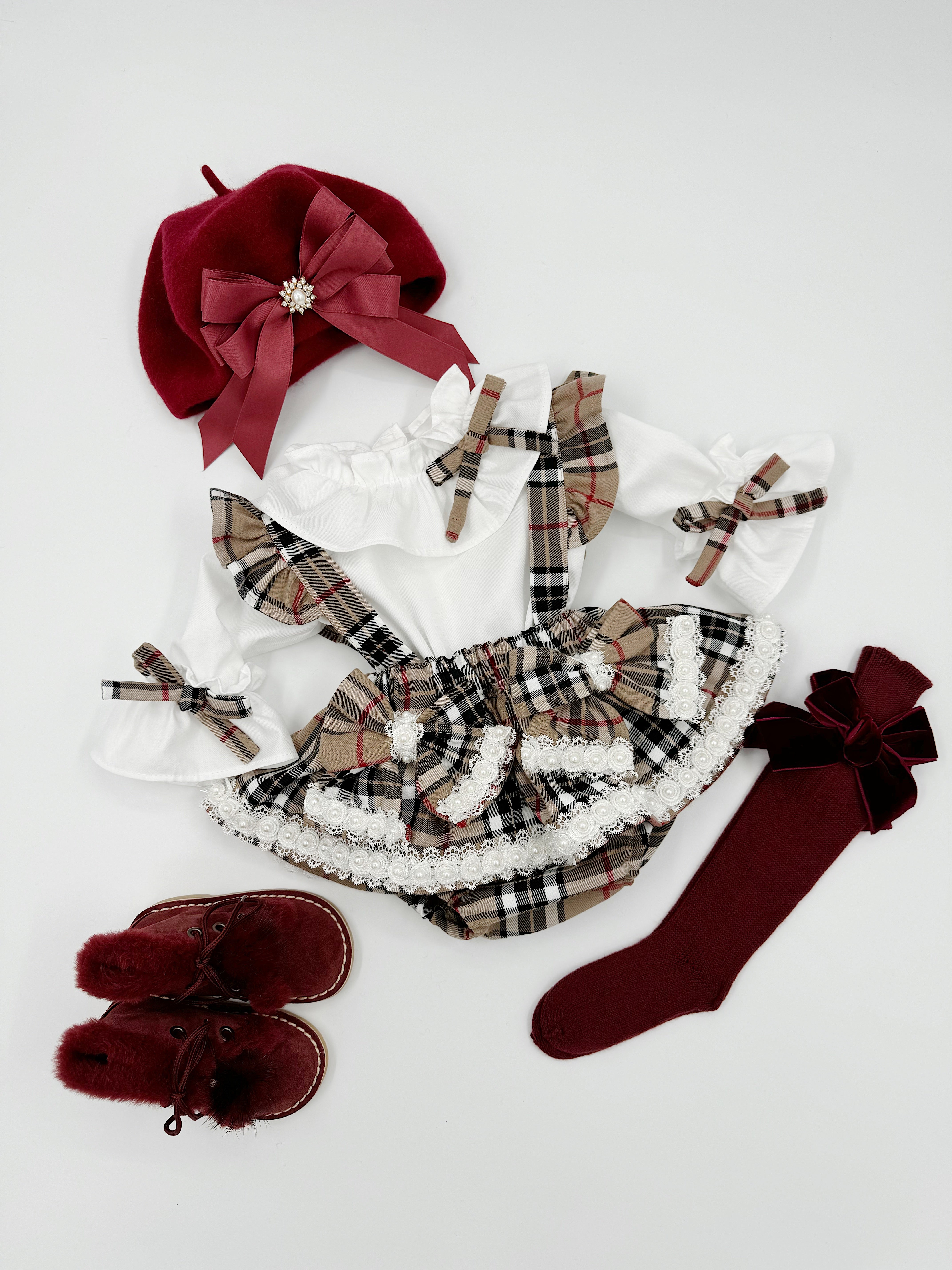 Beautiful Cappuccino Tweed Bloomers and Hand Smoked Shirt 2 piece set.