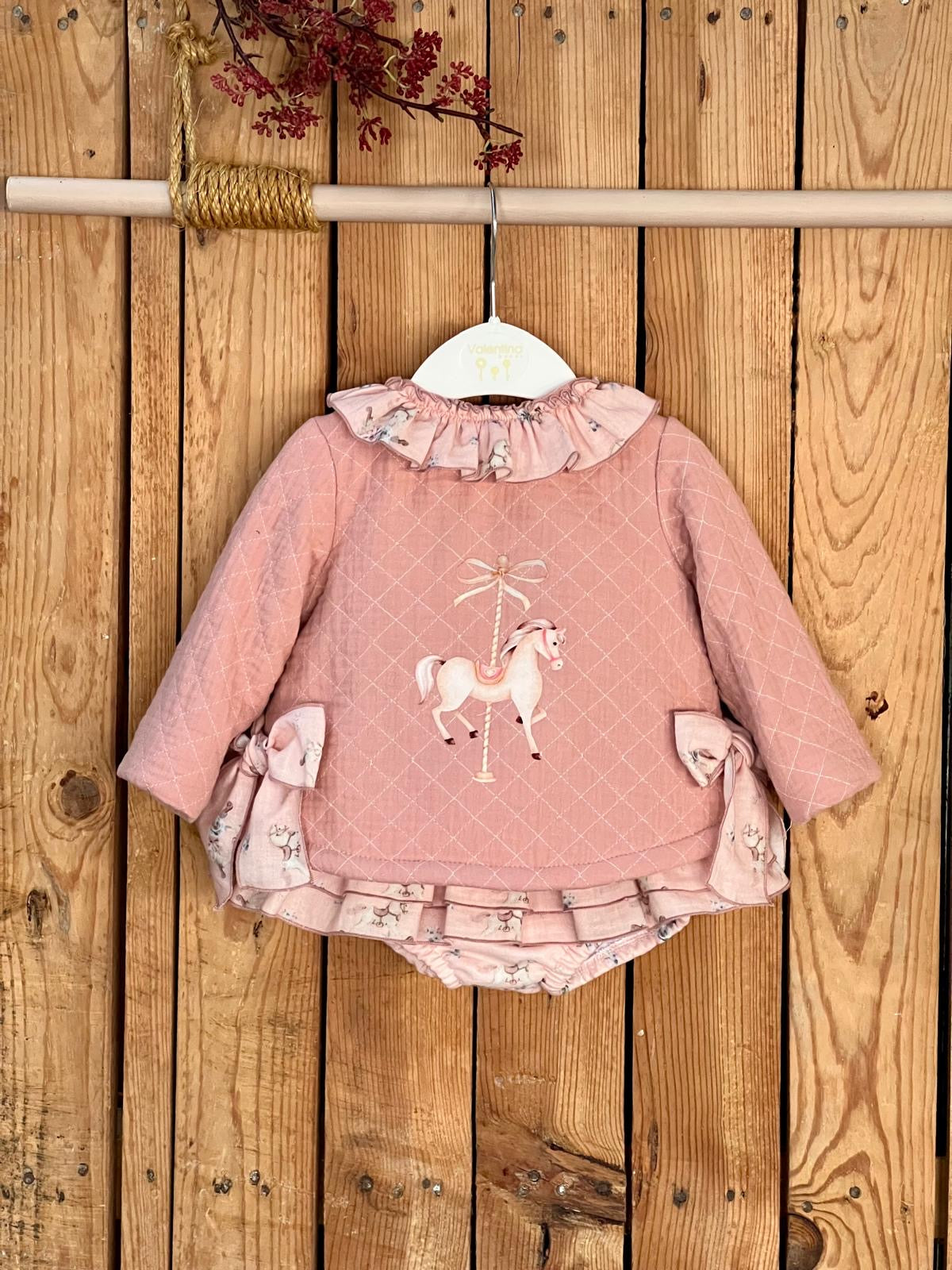 Beautiful Rocking horse Fleece top and jam pants 2 piece set.