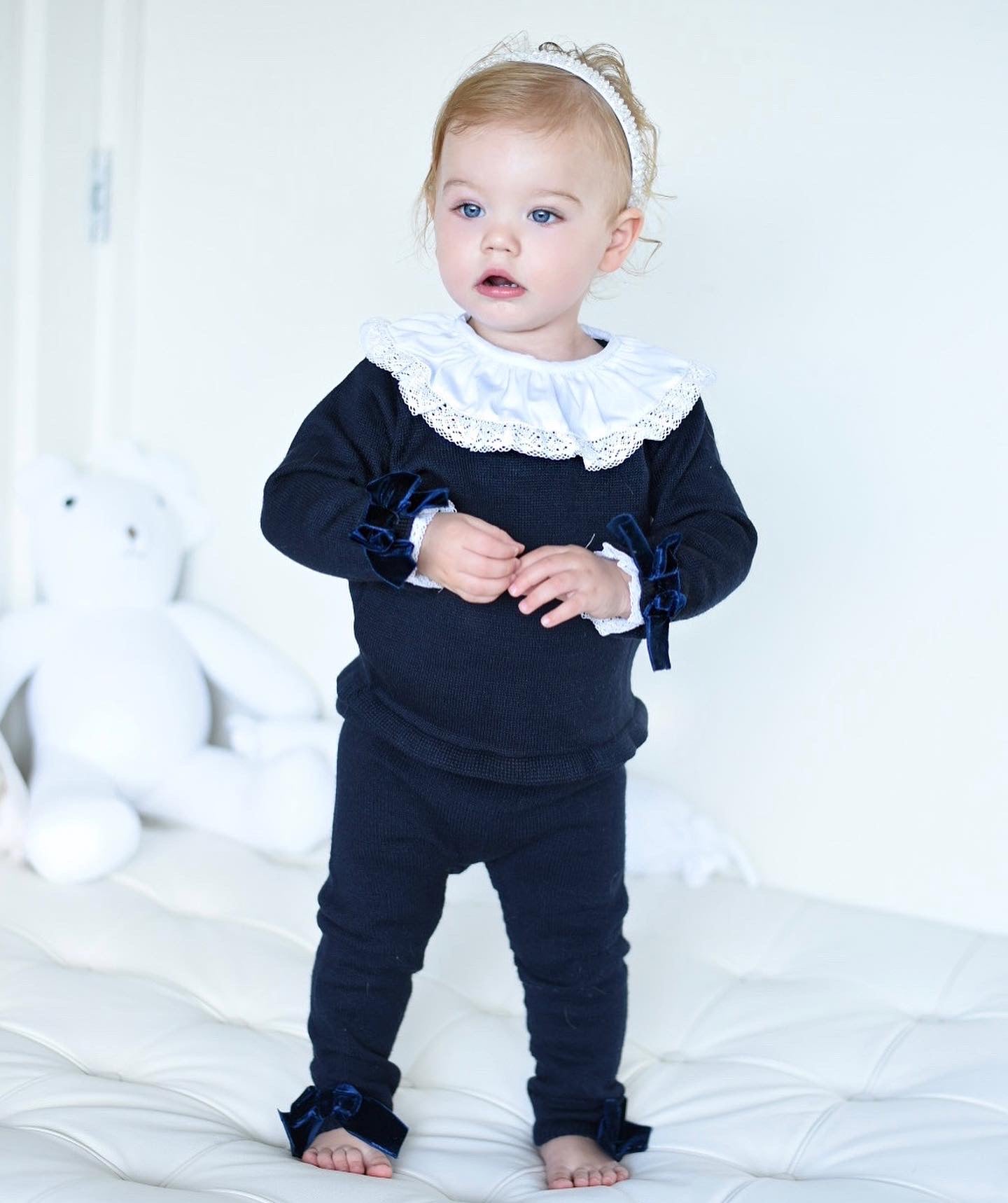 MI LOVES SIGNATURE LUXURIOUS Knitted suit with velvet bows in Navy