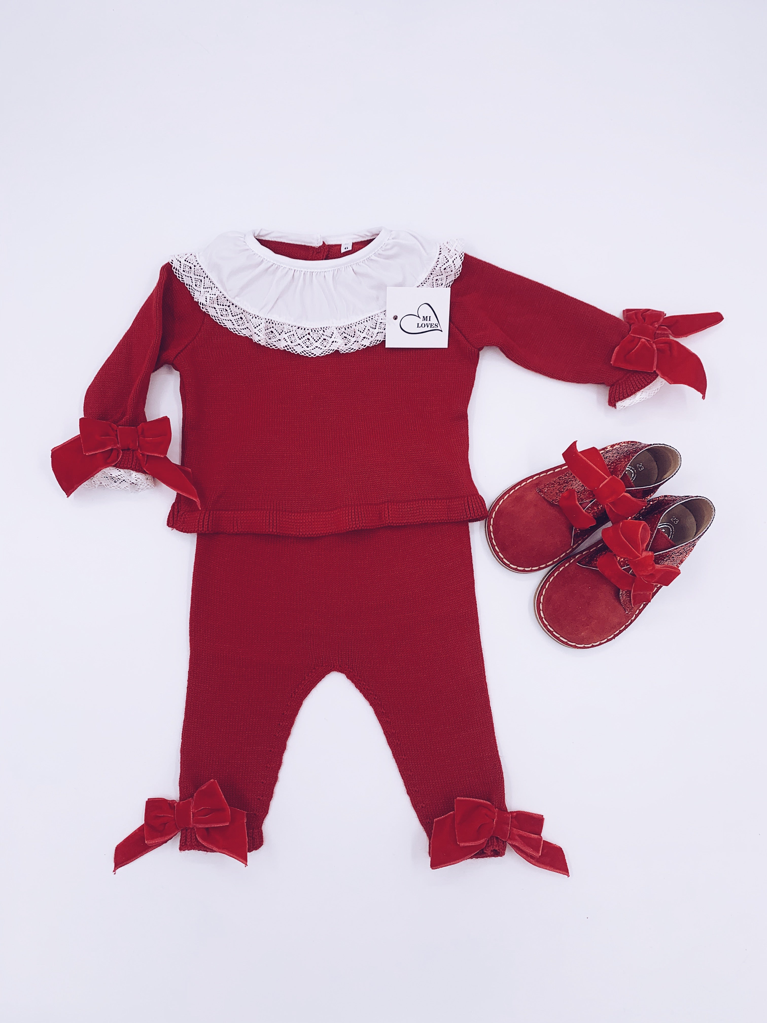 MI LOVES SIGNATURE LUXURIOUS Knitted suit with velvet bows in Red.