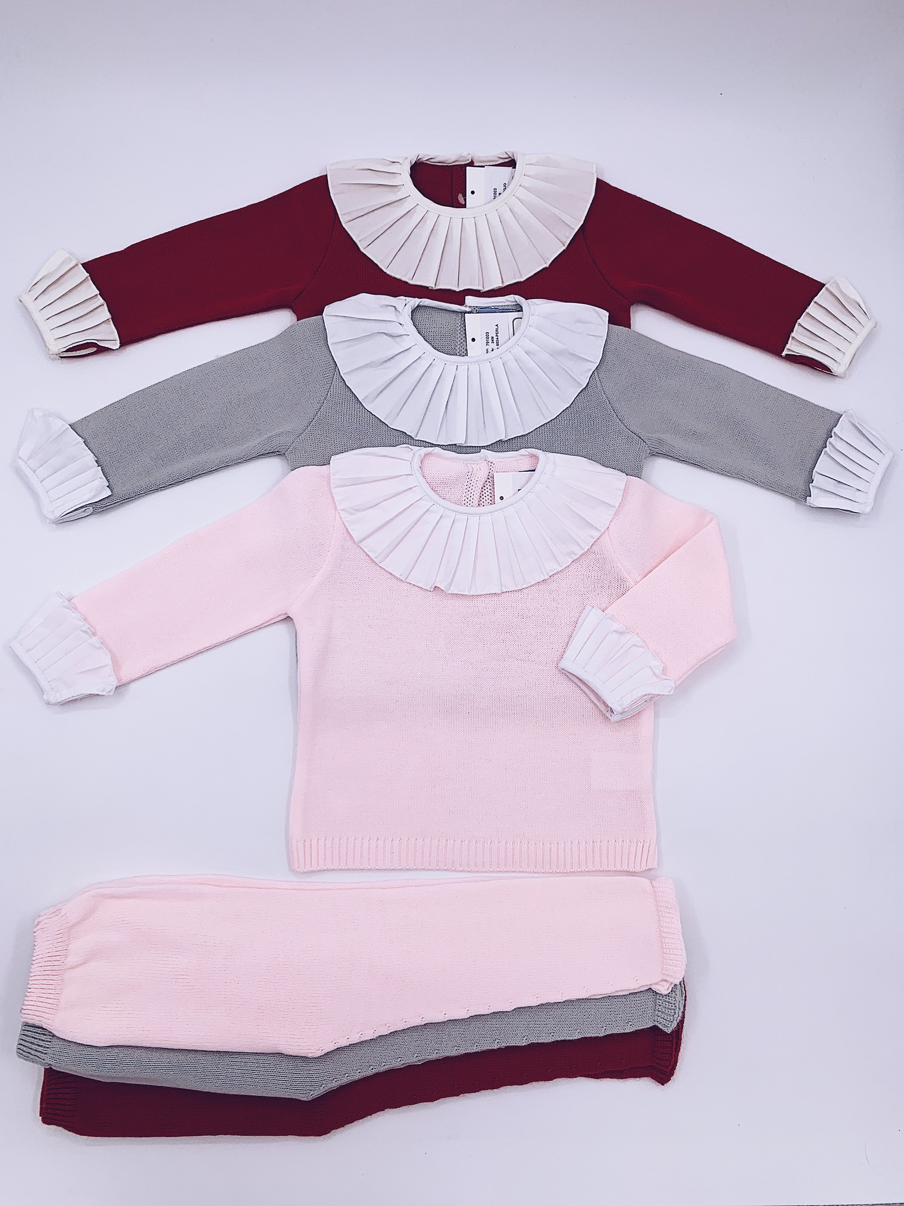 Knitted suit with Ruffled/Frilly neck and cuffs Details