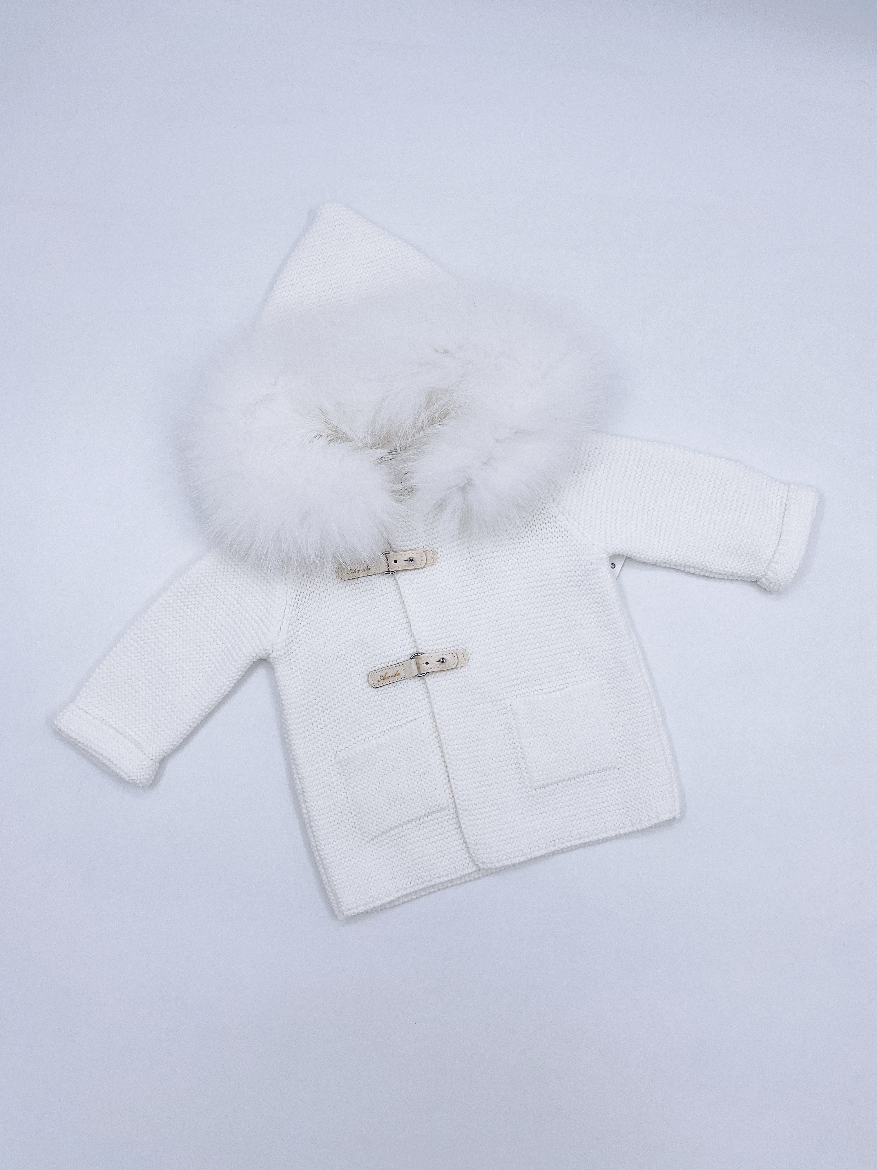 Ivory knitted cardigan with Luxurious Fox fur trim