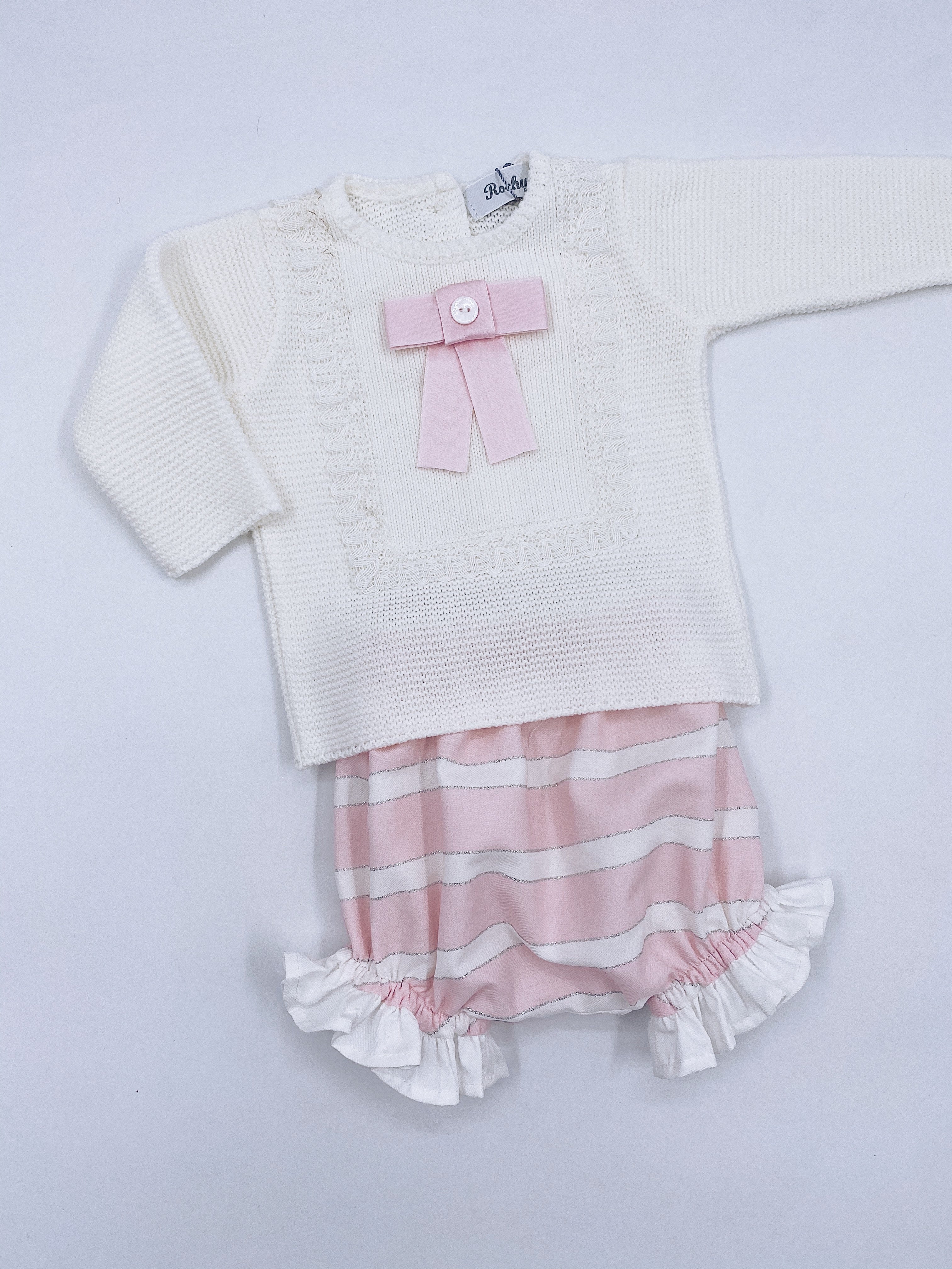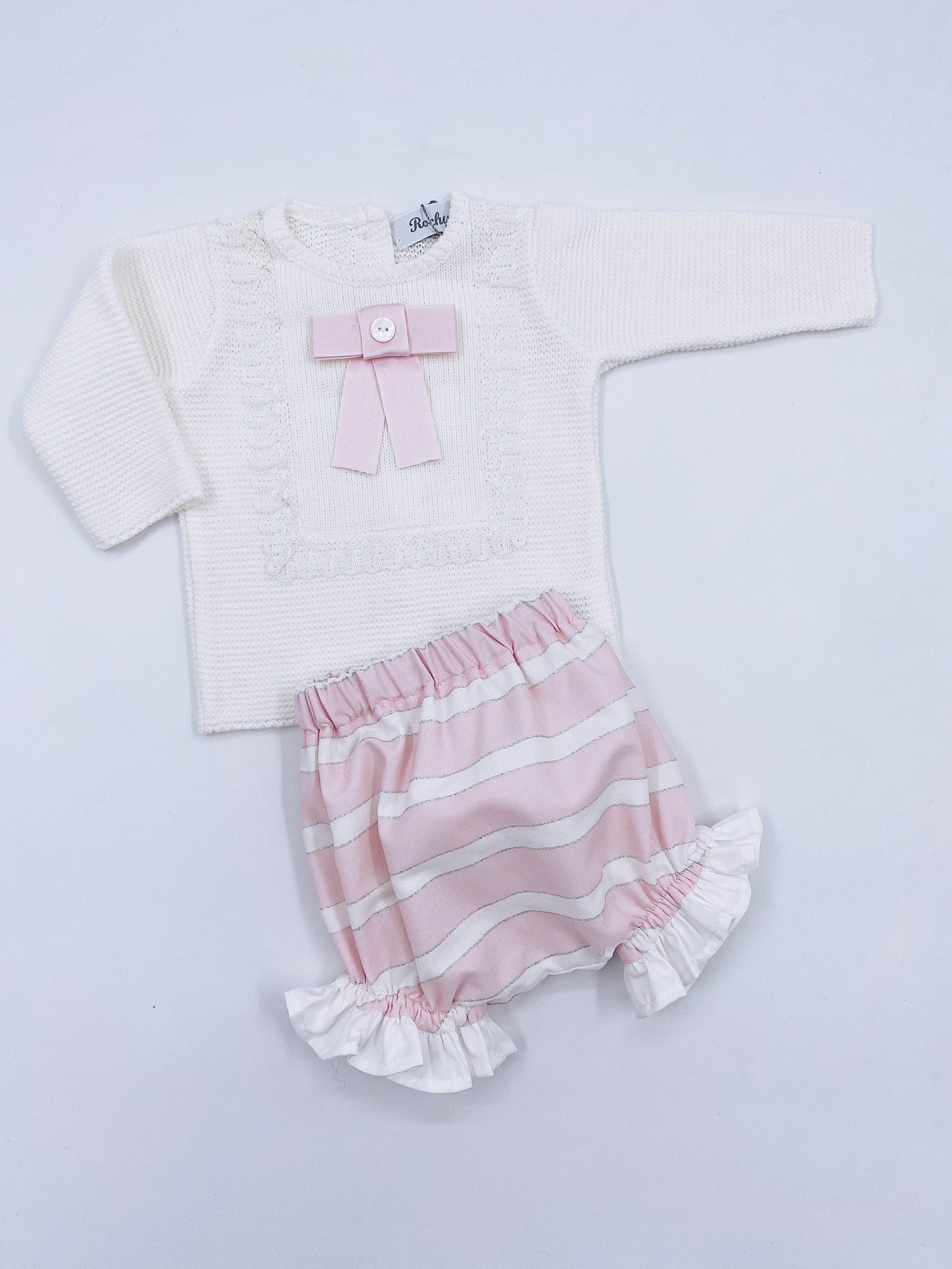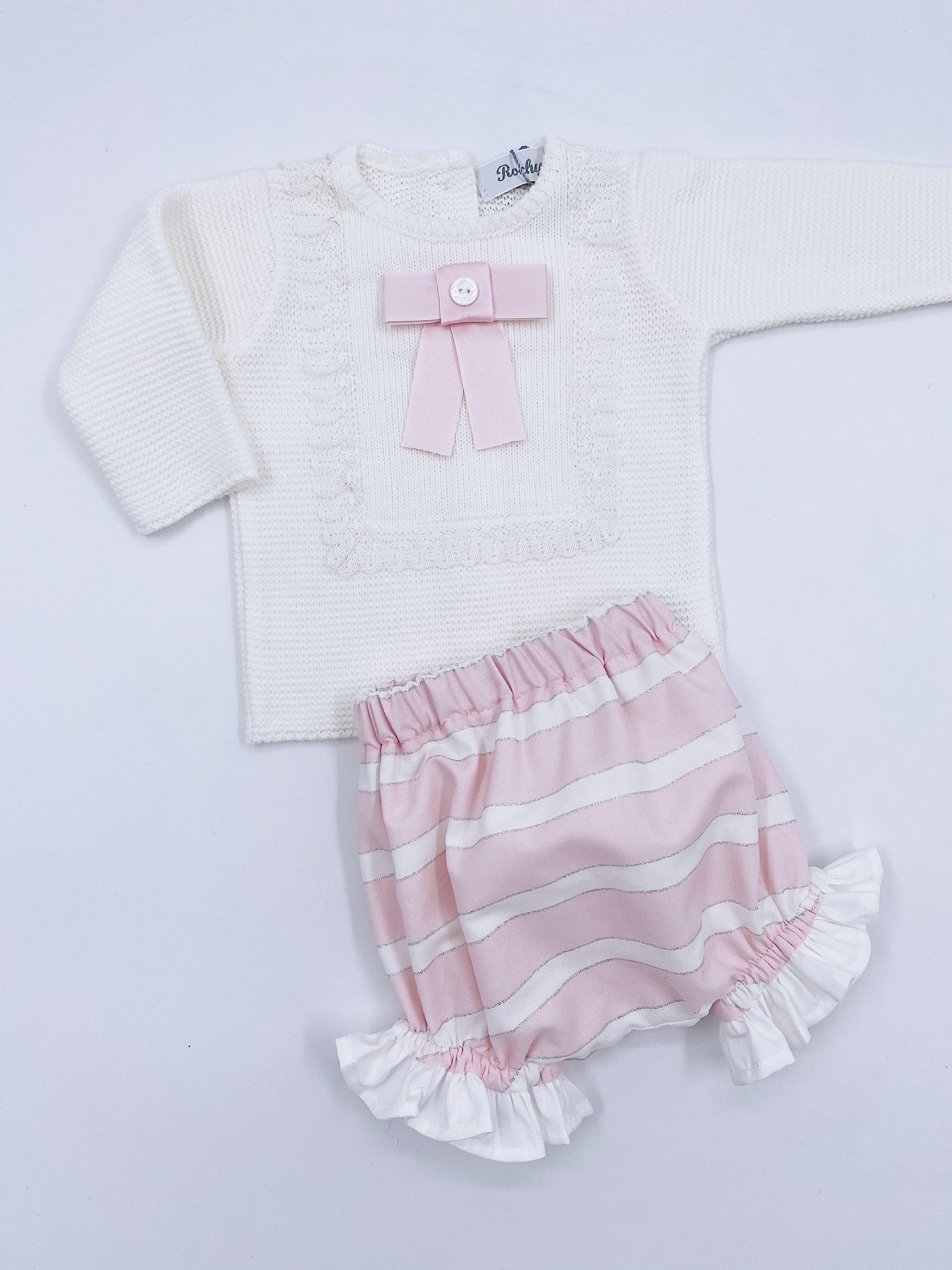 Rochy Beautiful Ivory/Pink knitted top and shorts 2 piece set