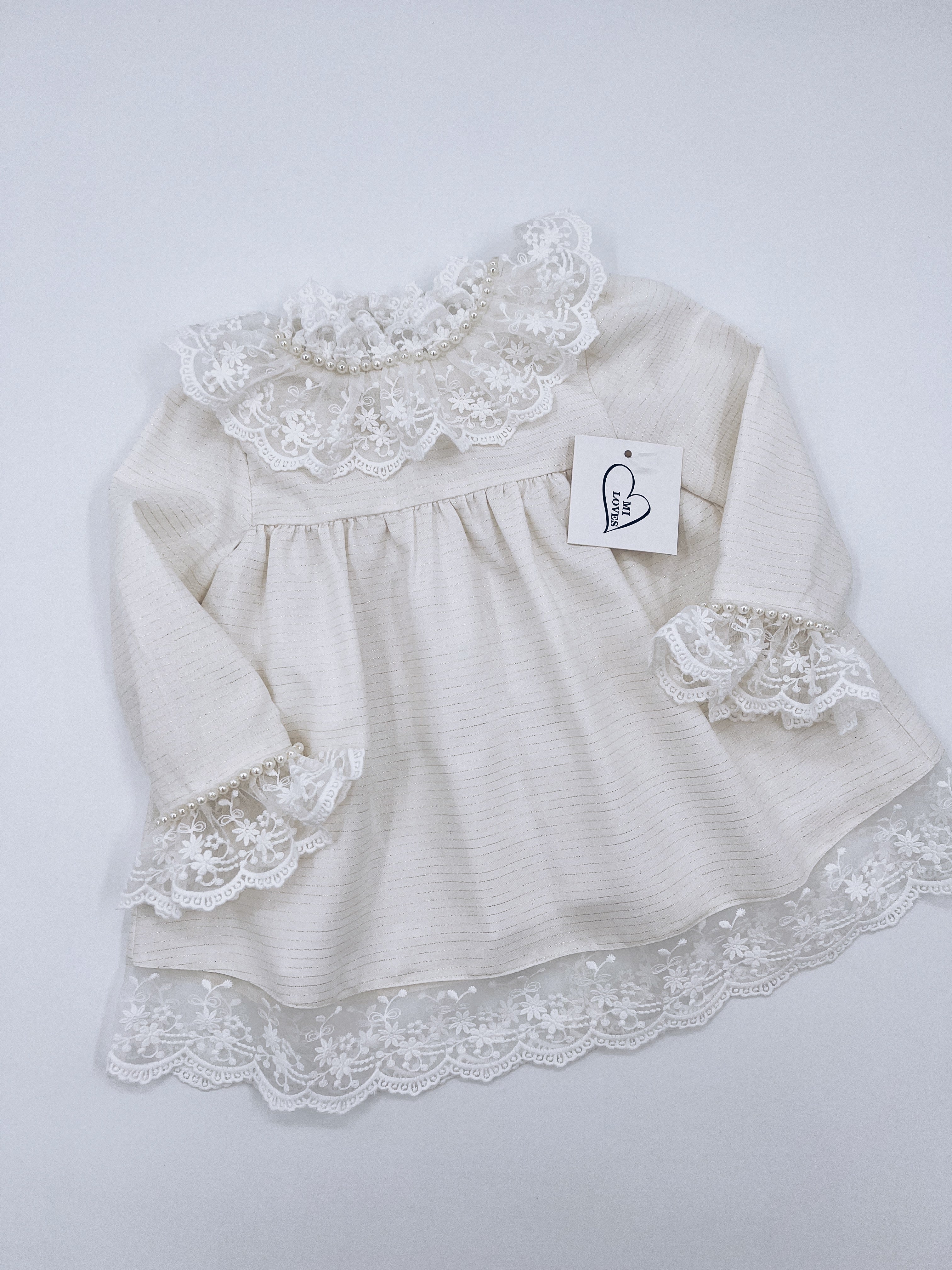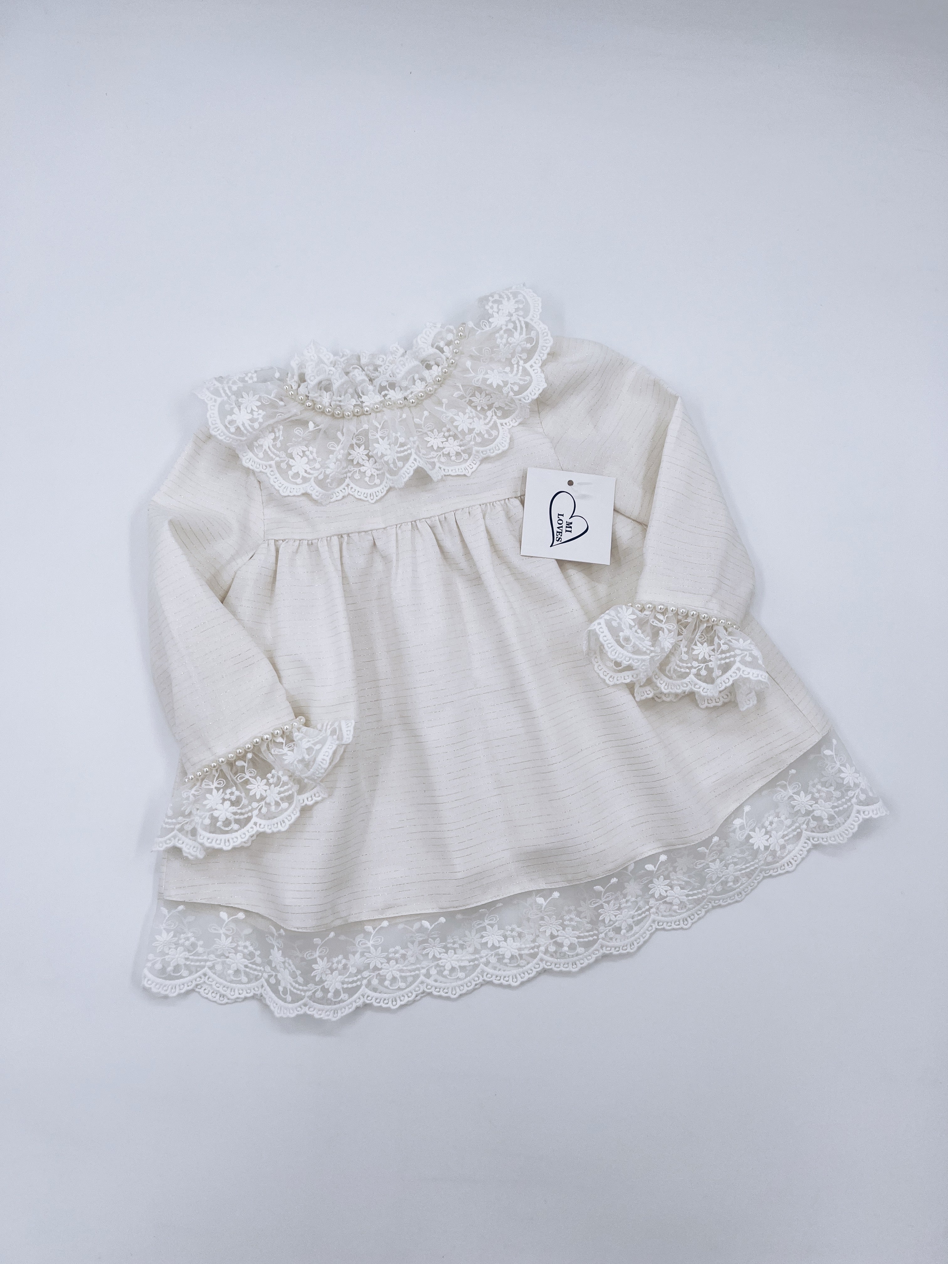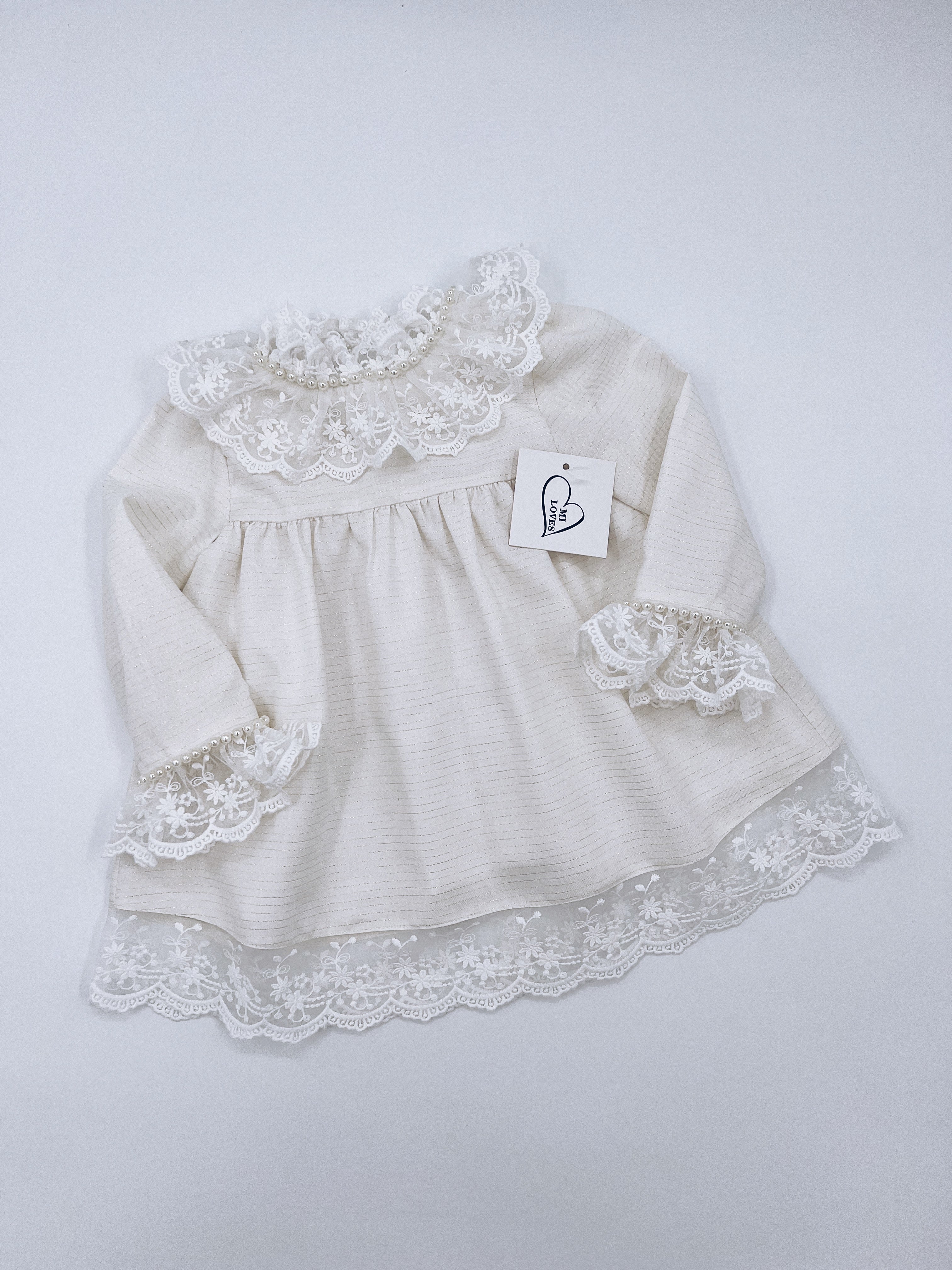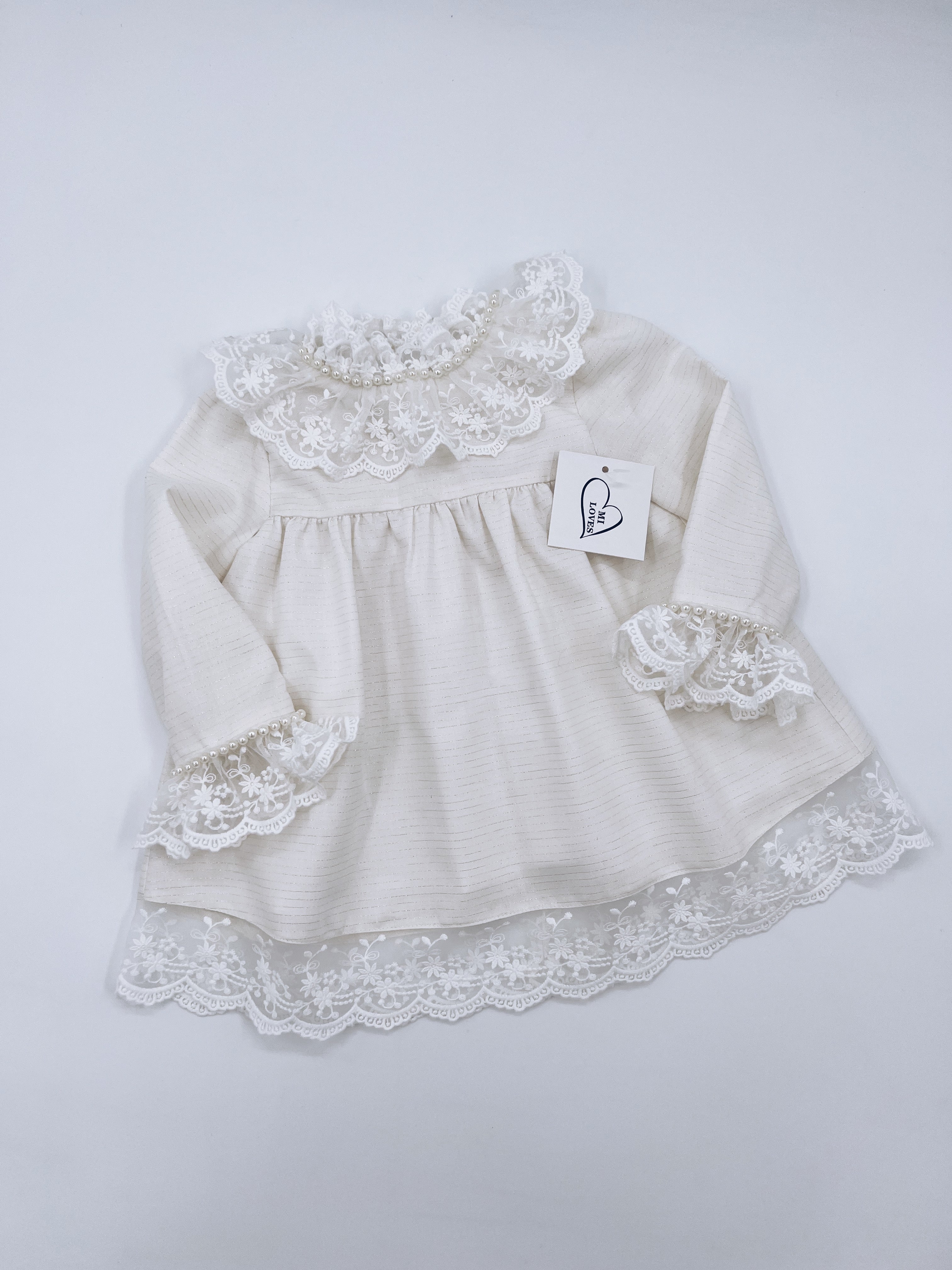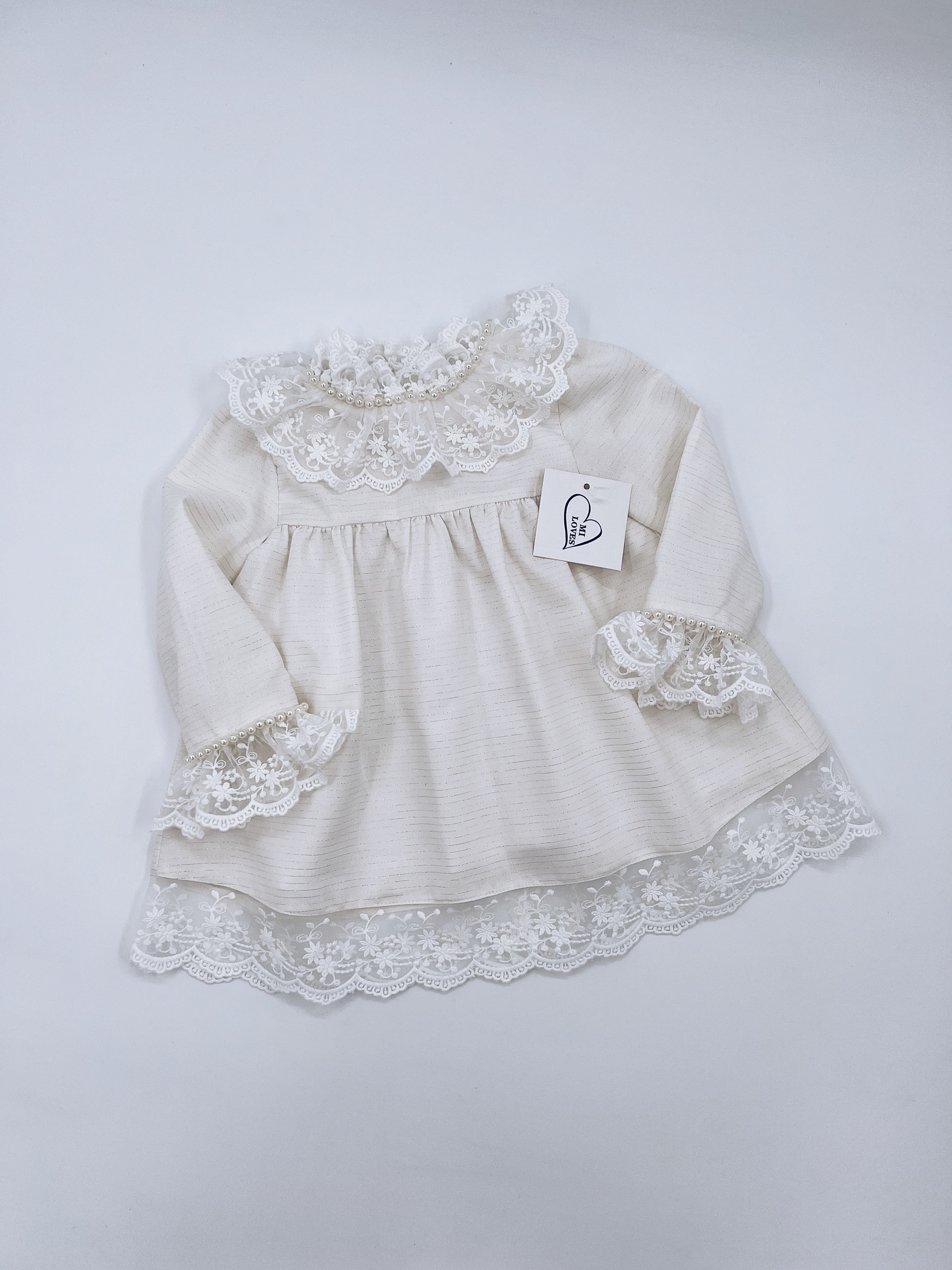 Beautiful Dress with Lovely Bow ,Faux Pearls and Lace details.