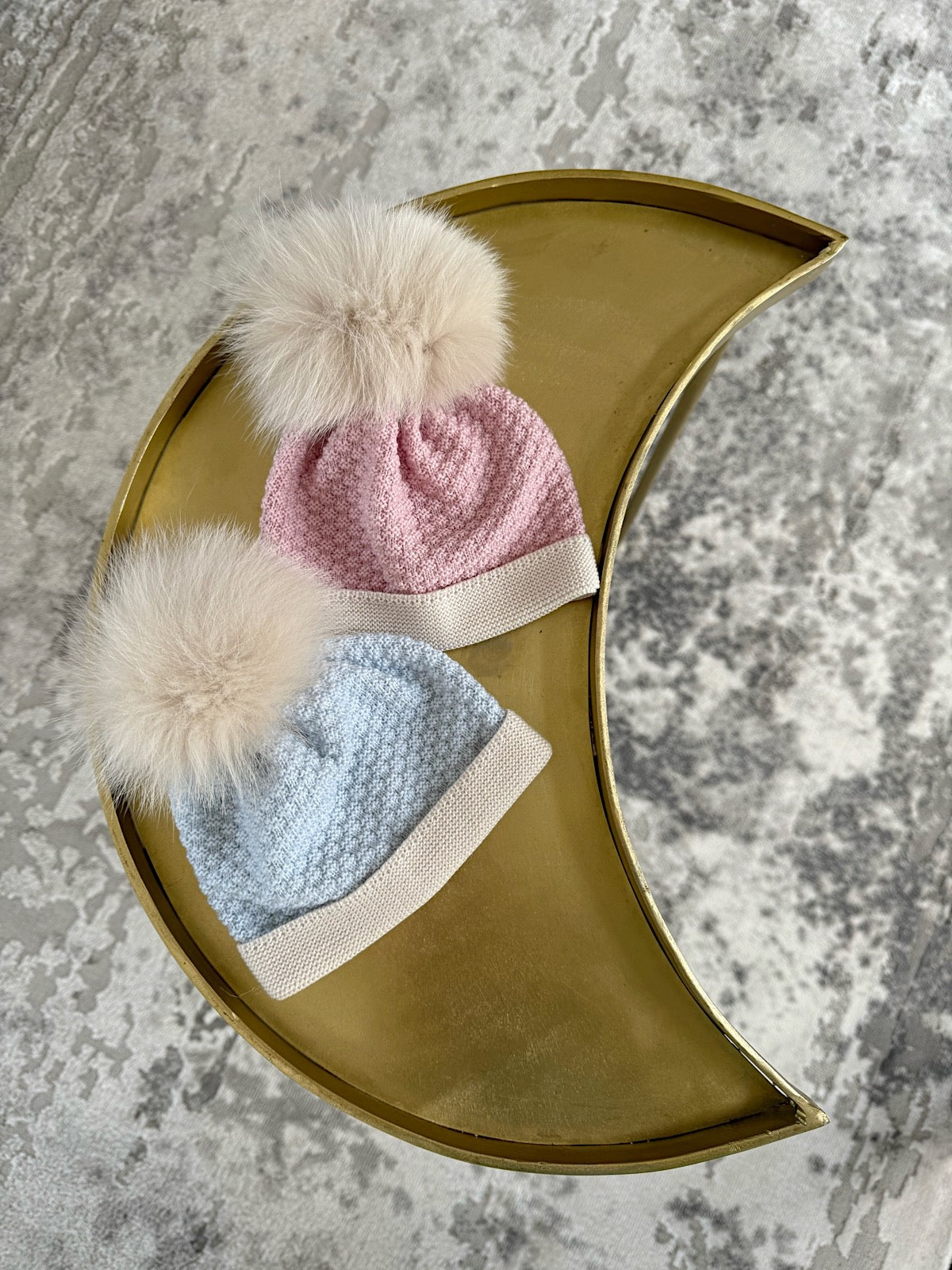 Beautiful knitted Cream/Blue Merino wool hat with pompom.