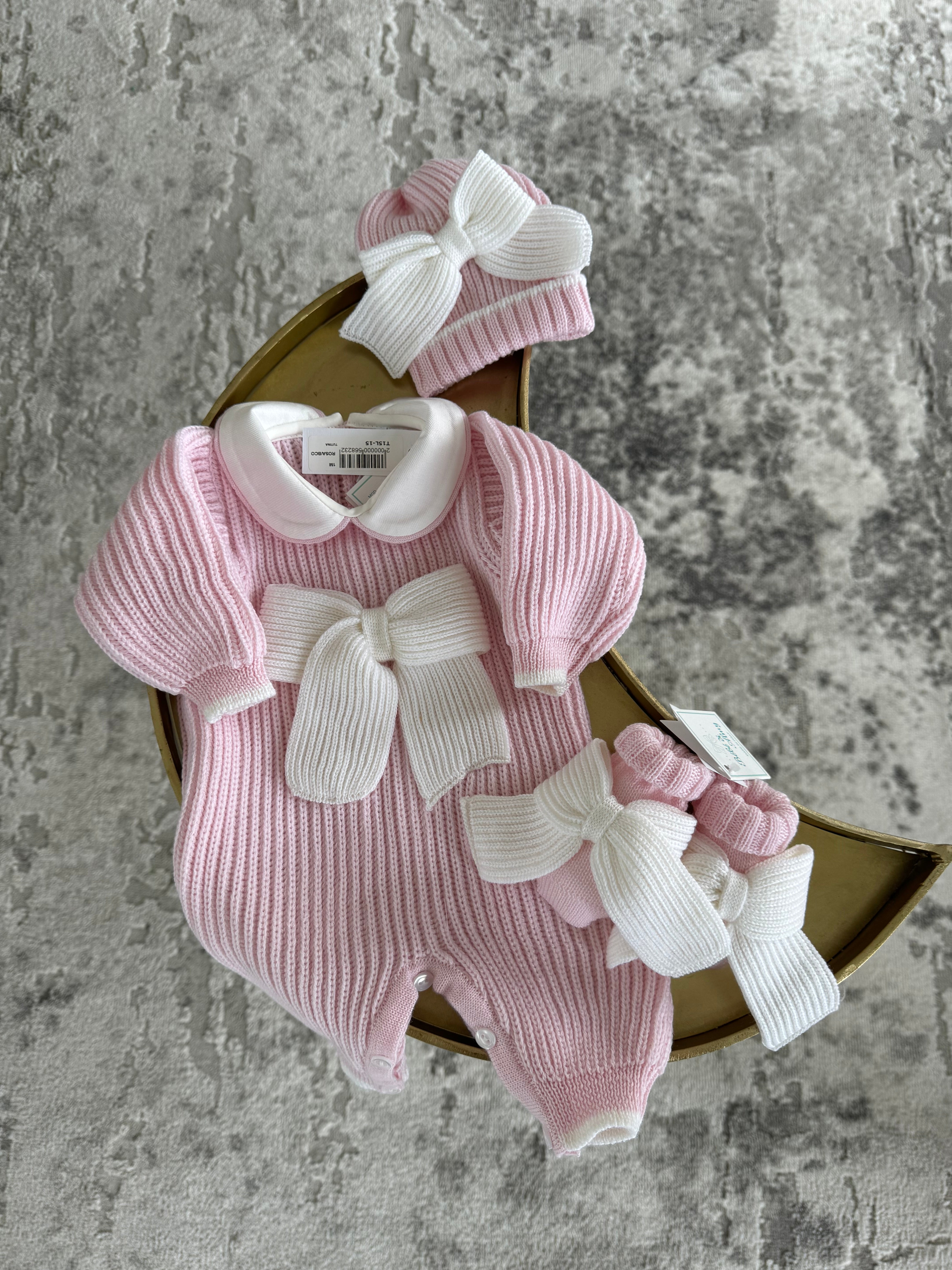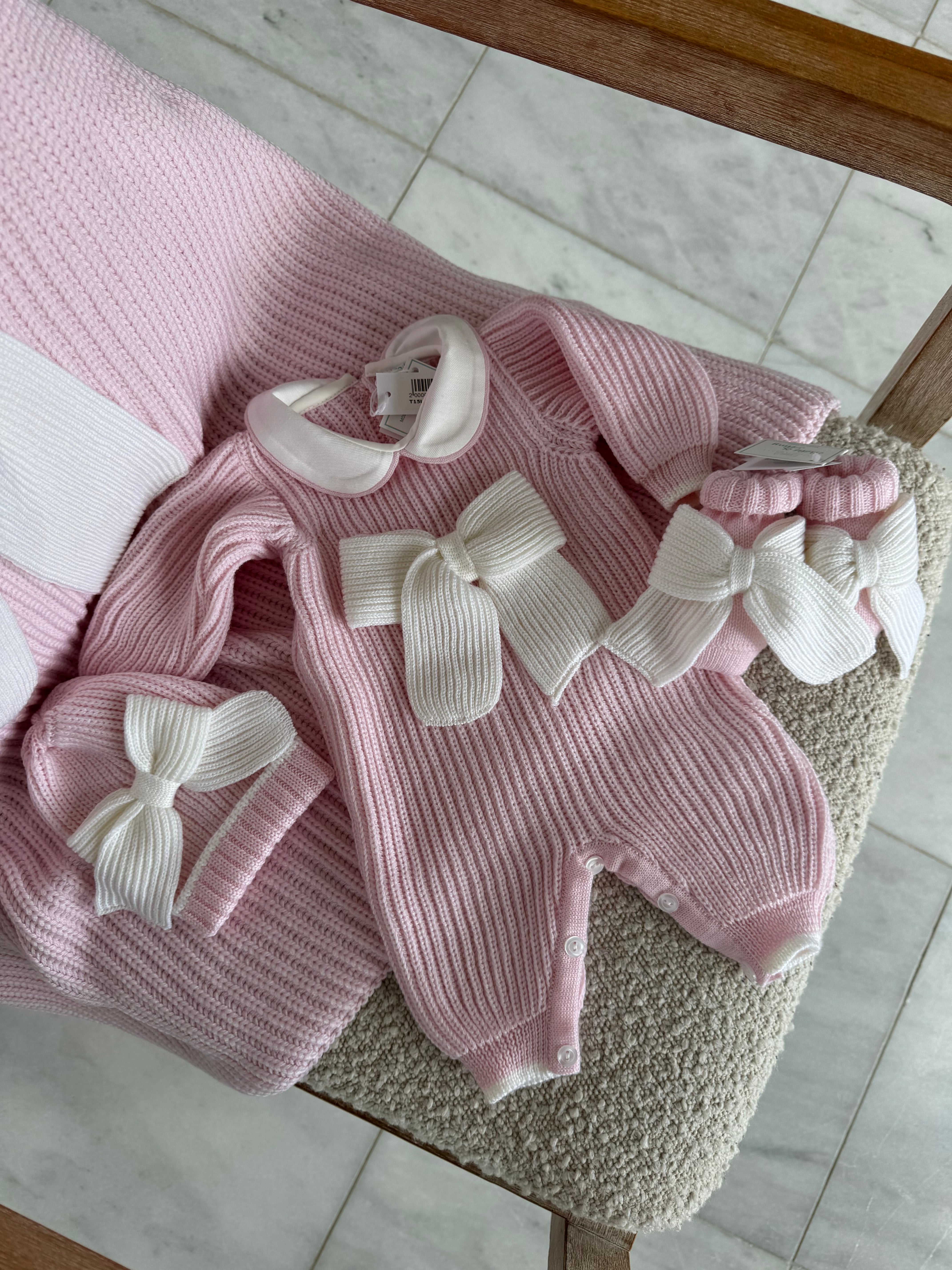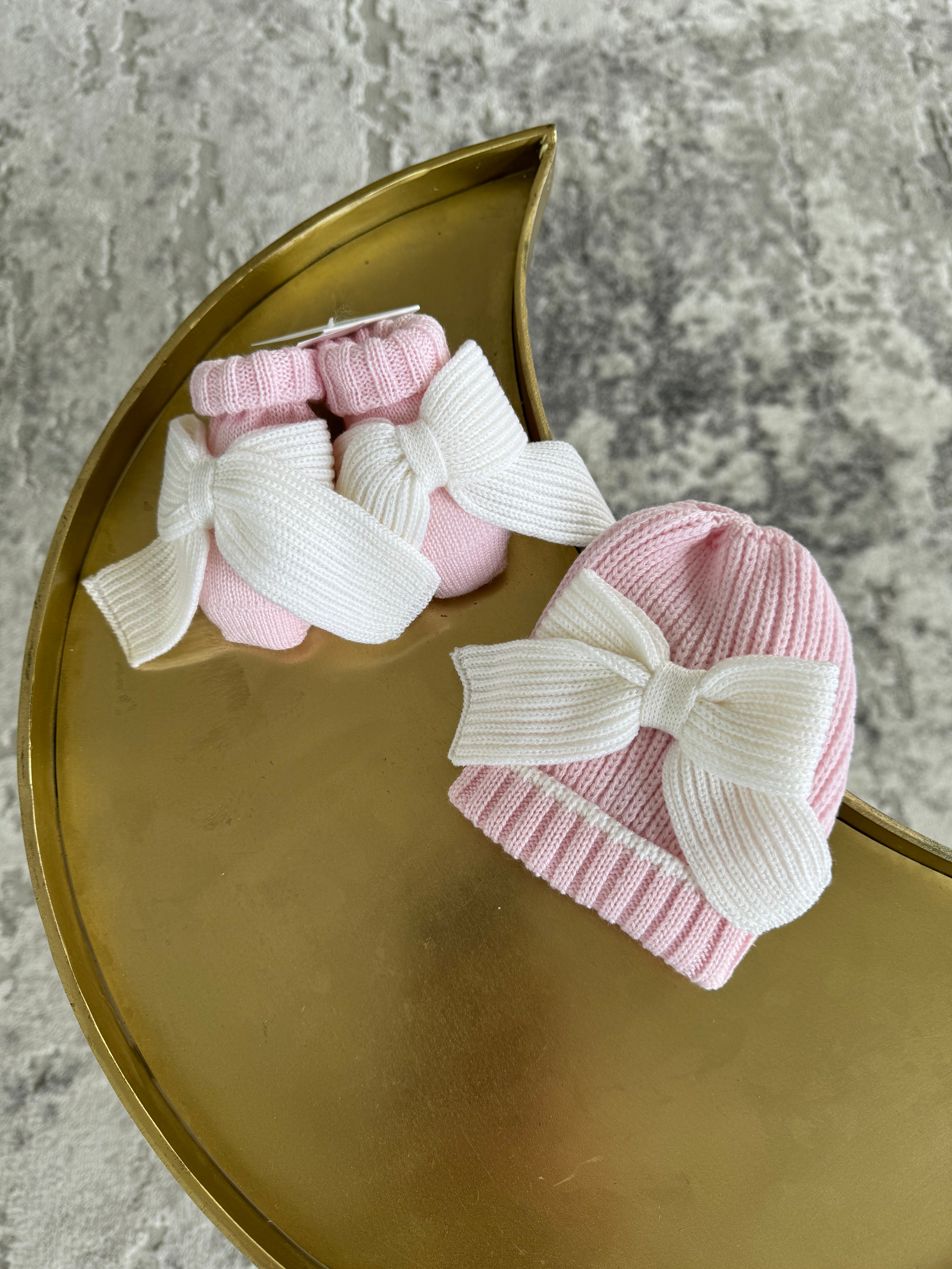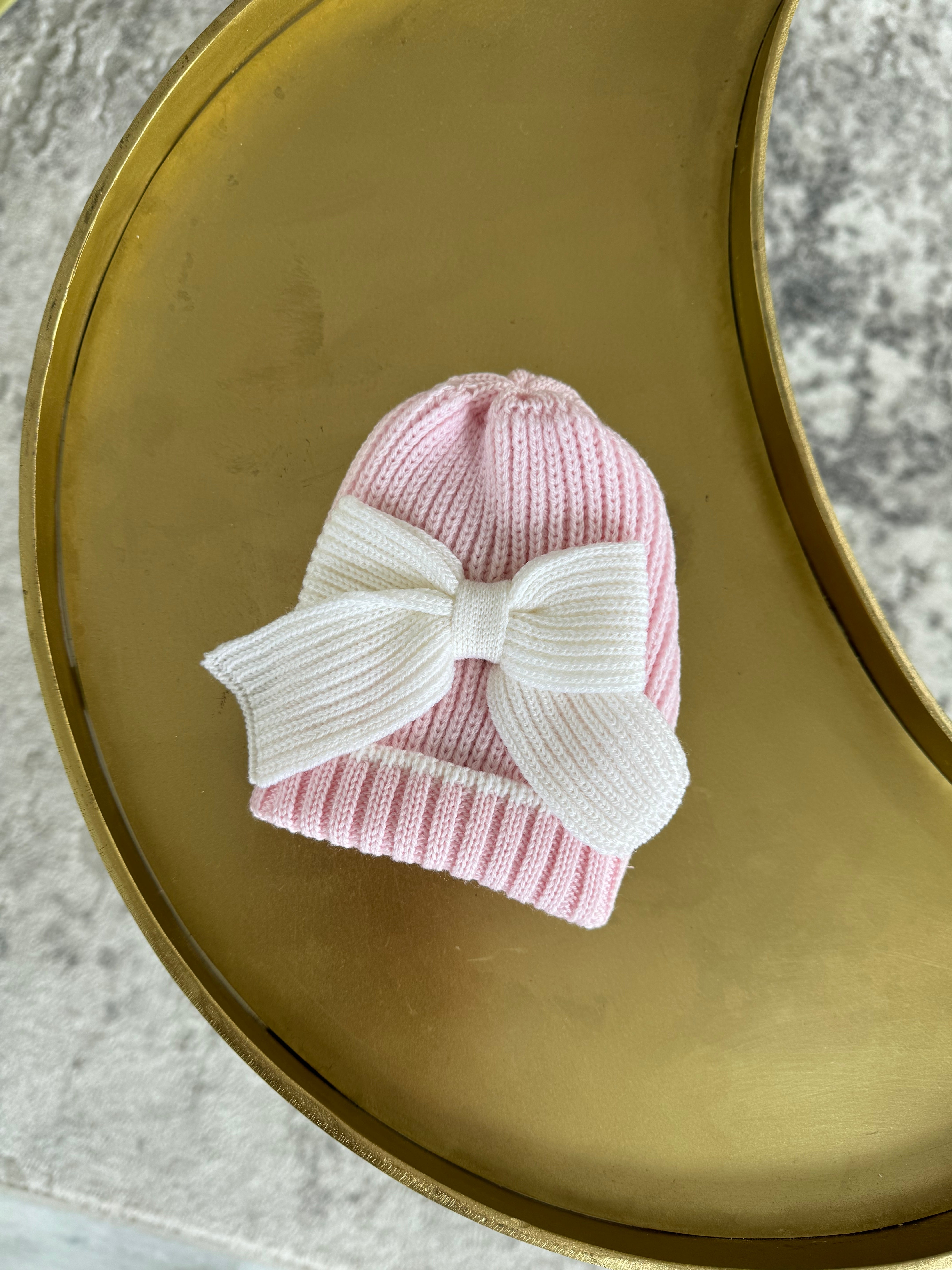 Beautiful knitted Merino wool Pink Baby girl hat with Bow details.