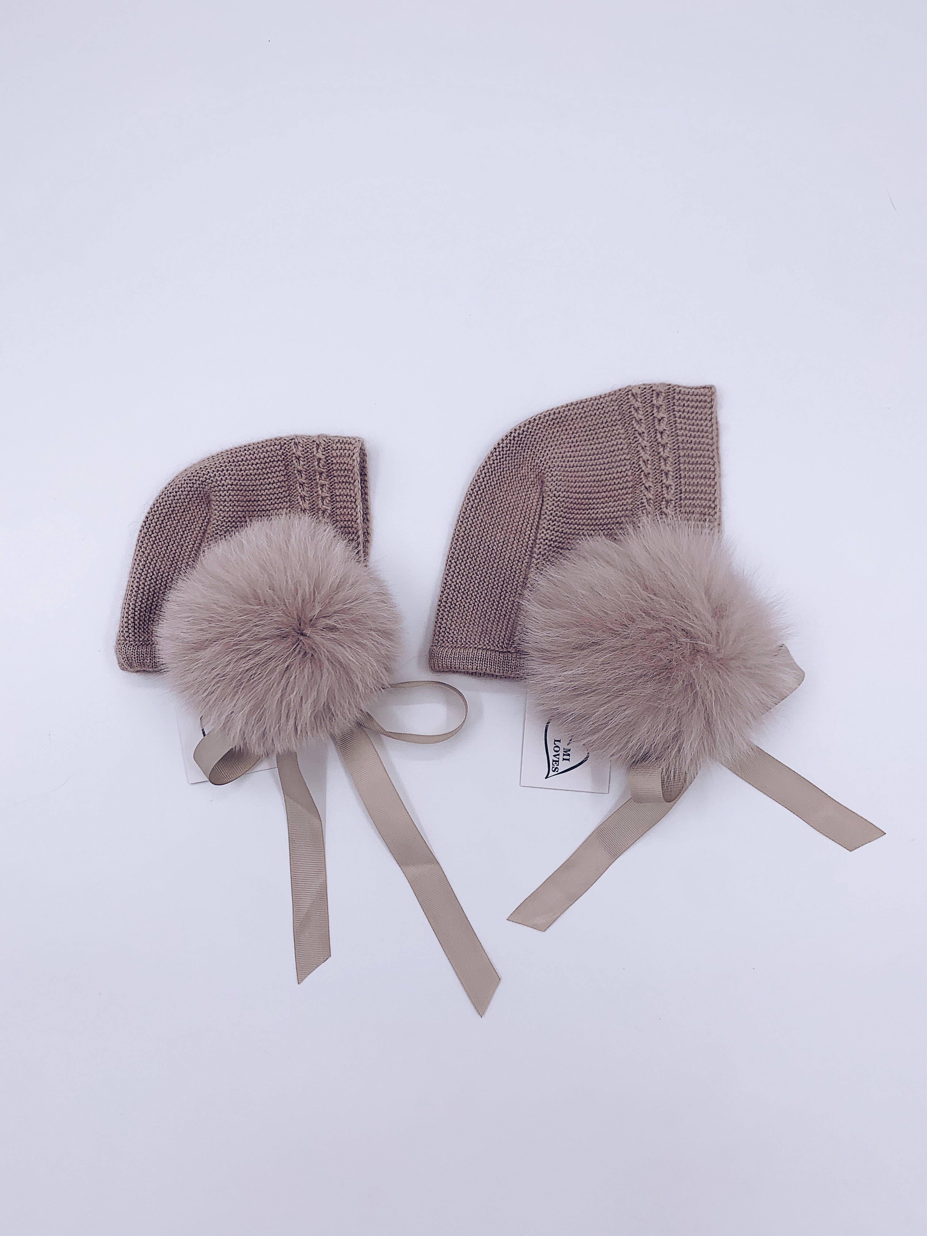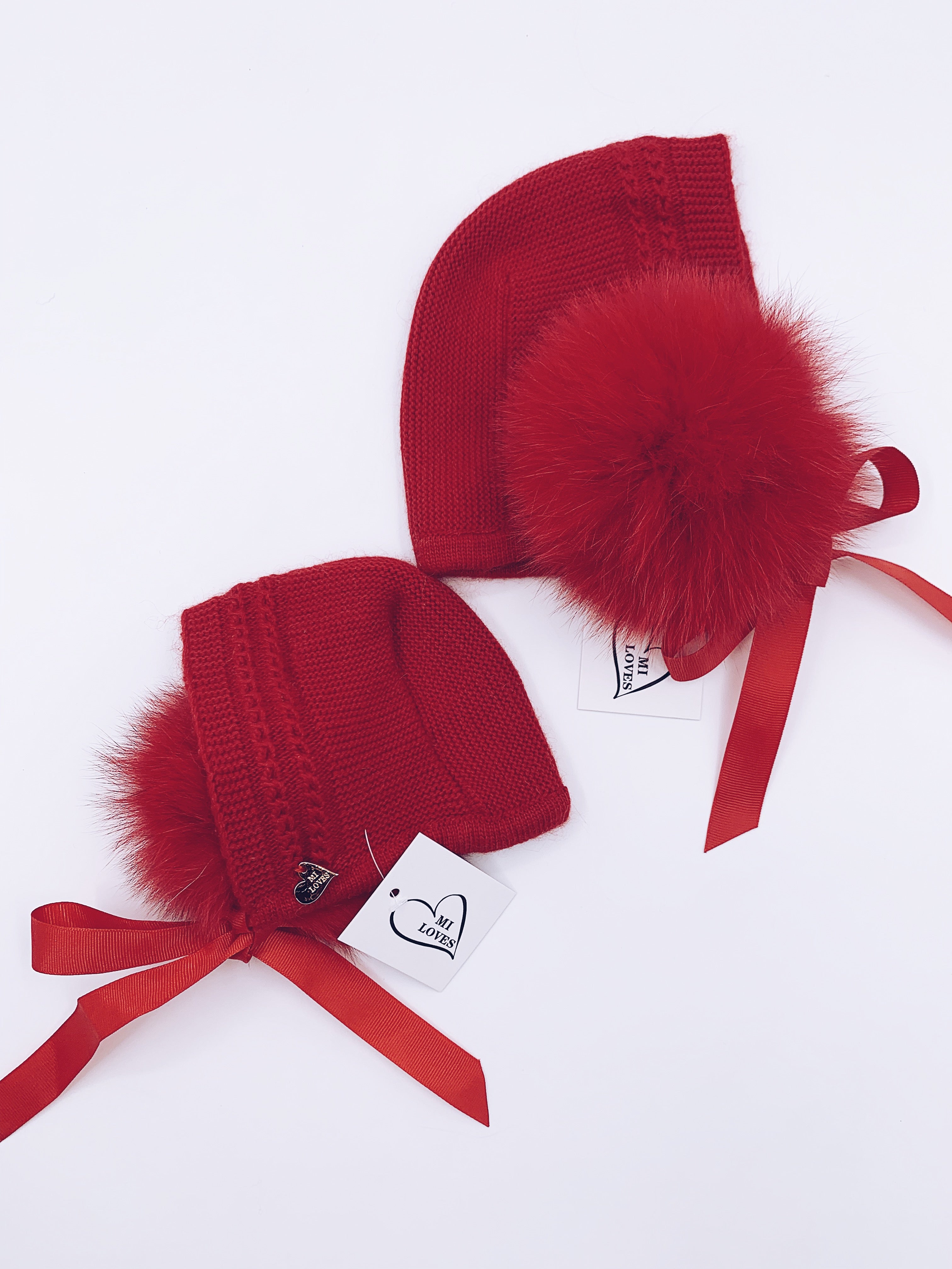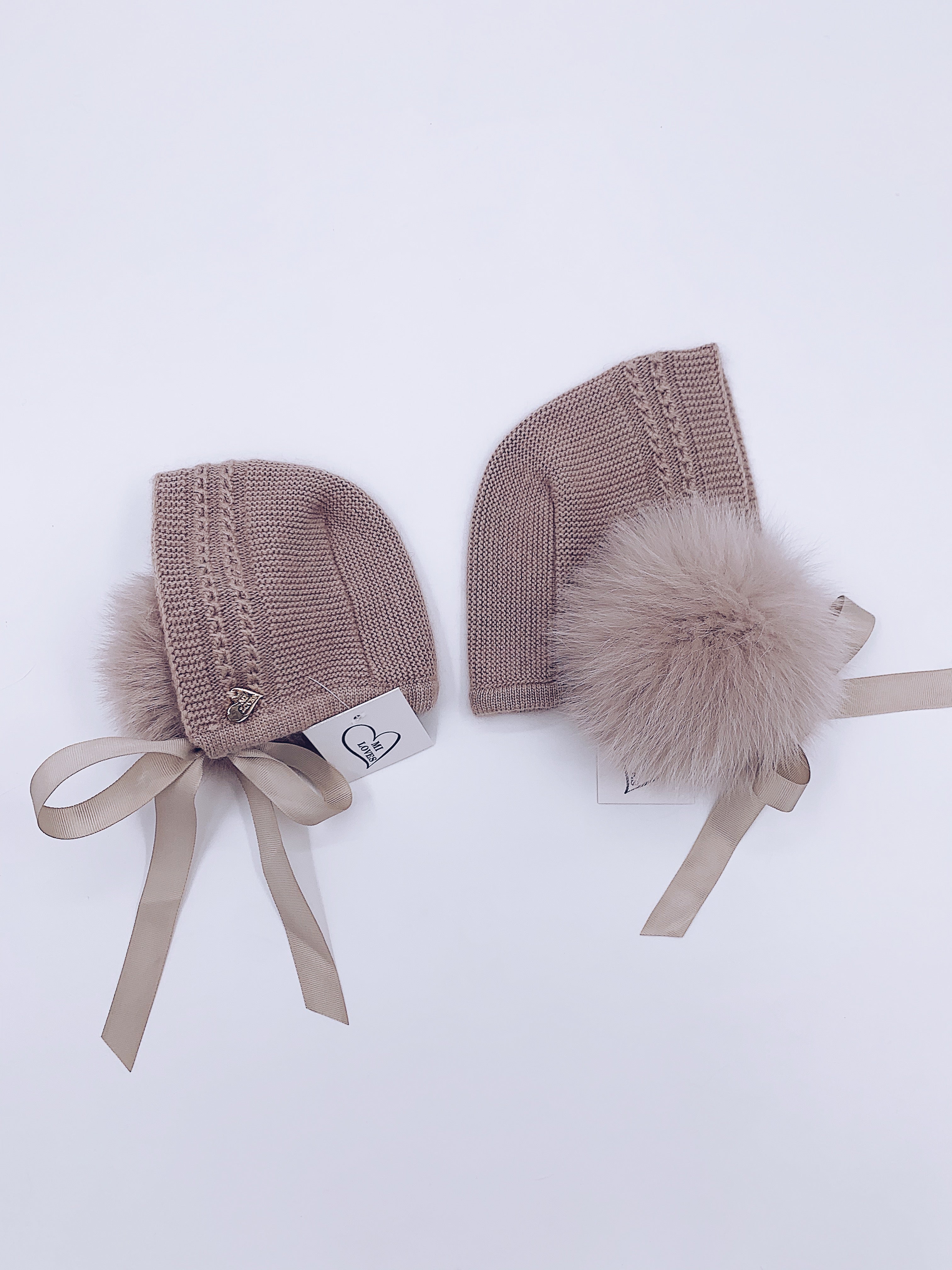 MI LOVES SIGNATURE LUXURIOUS ANGORA BONNETS WITH FOX FUR POMPOM