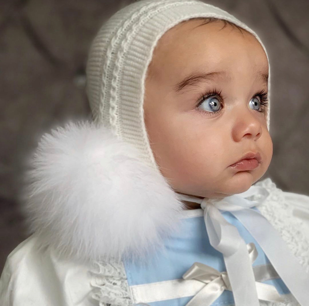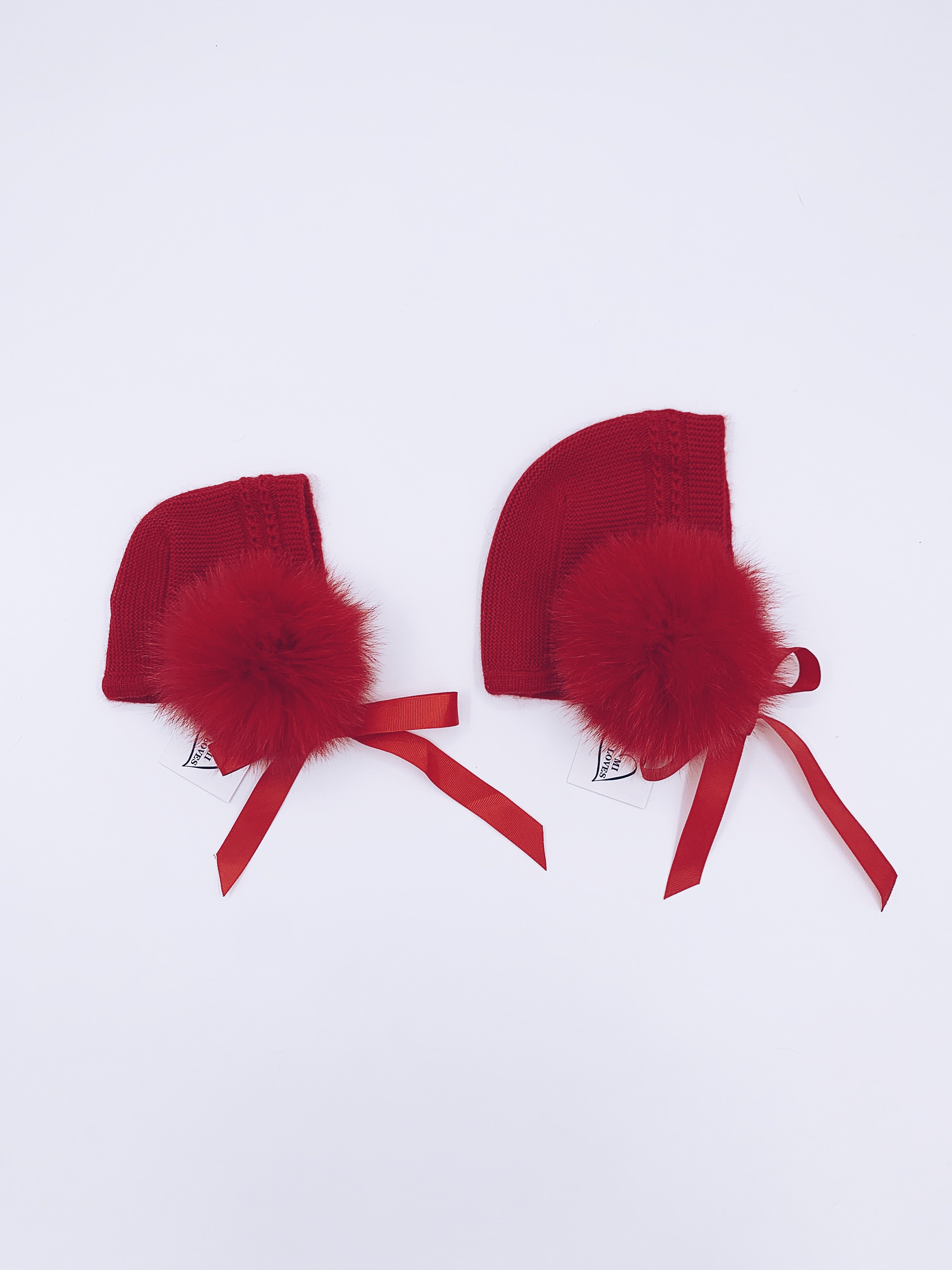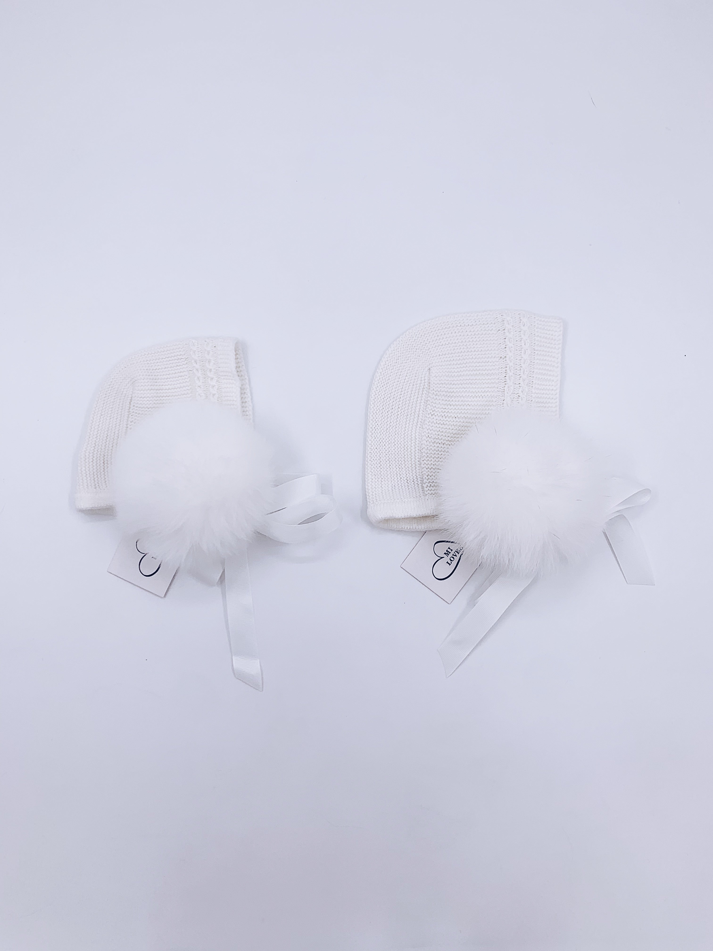 MI LOVES SIGNATURE LUXURIOUS ANGORA BONNETS WITH FOX FUR POMPOM