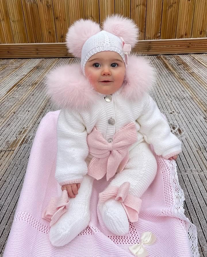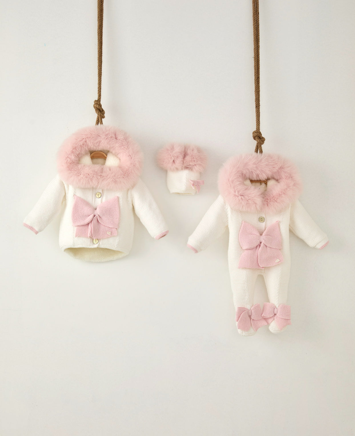 Matching Pramsuit and Cardigan (Sold Separately )also available on the website.