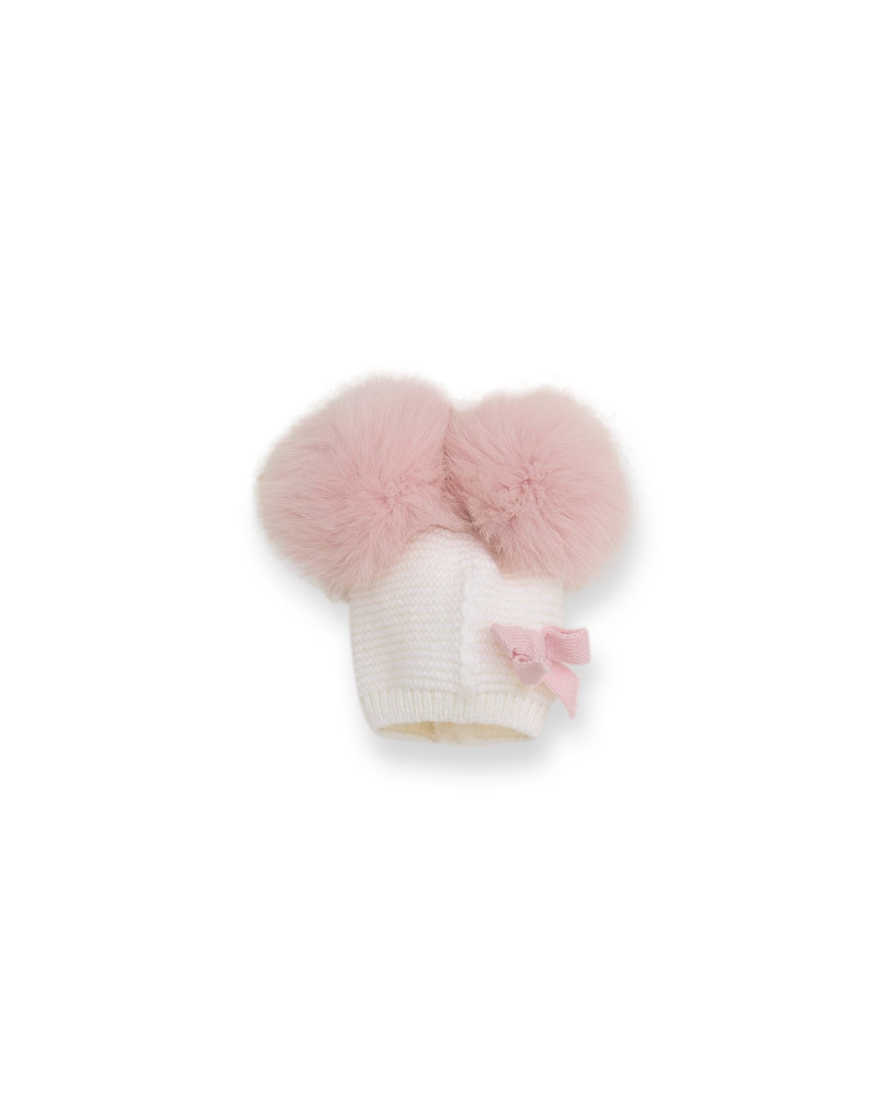 Ivory MI LOVES SIGNATURE Little Doll Double pompom hat.Ivory hat with White/Ivory pompoms.