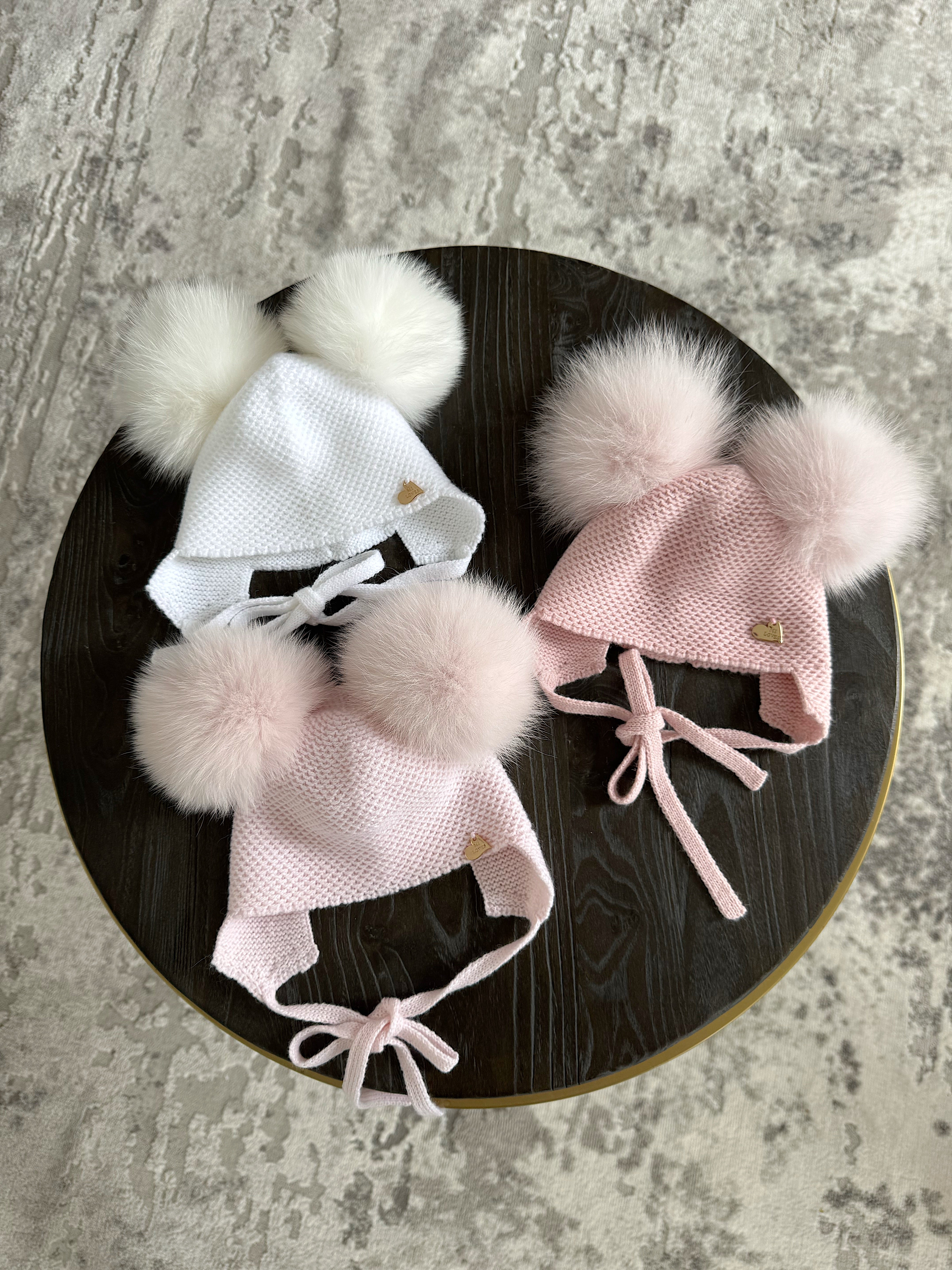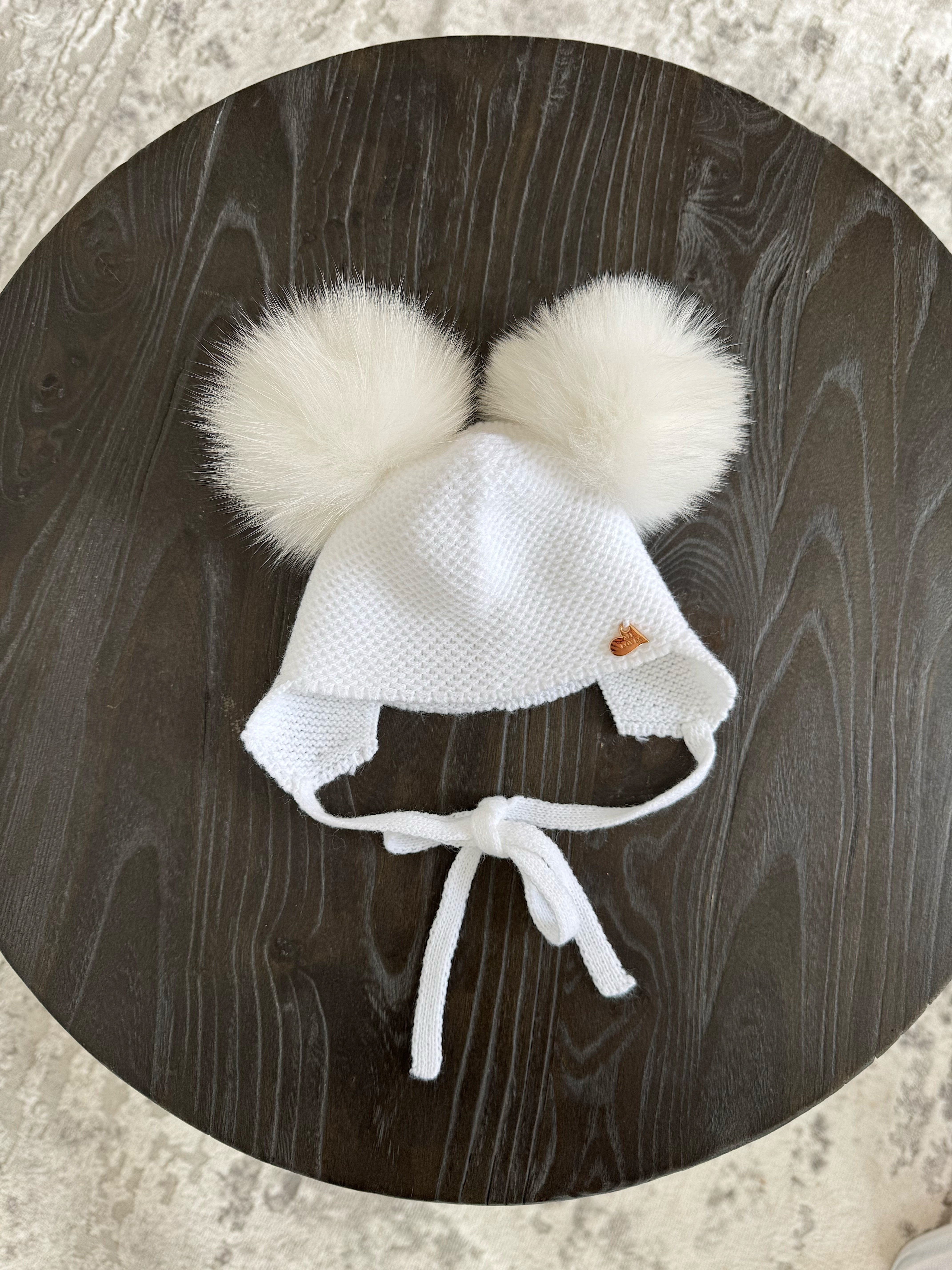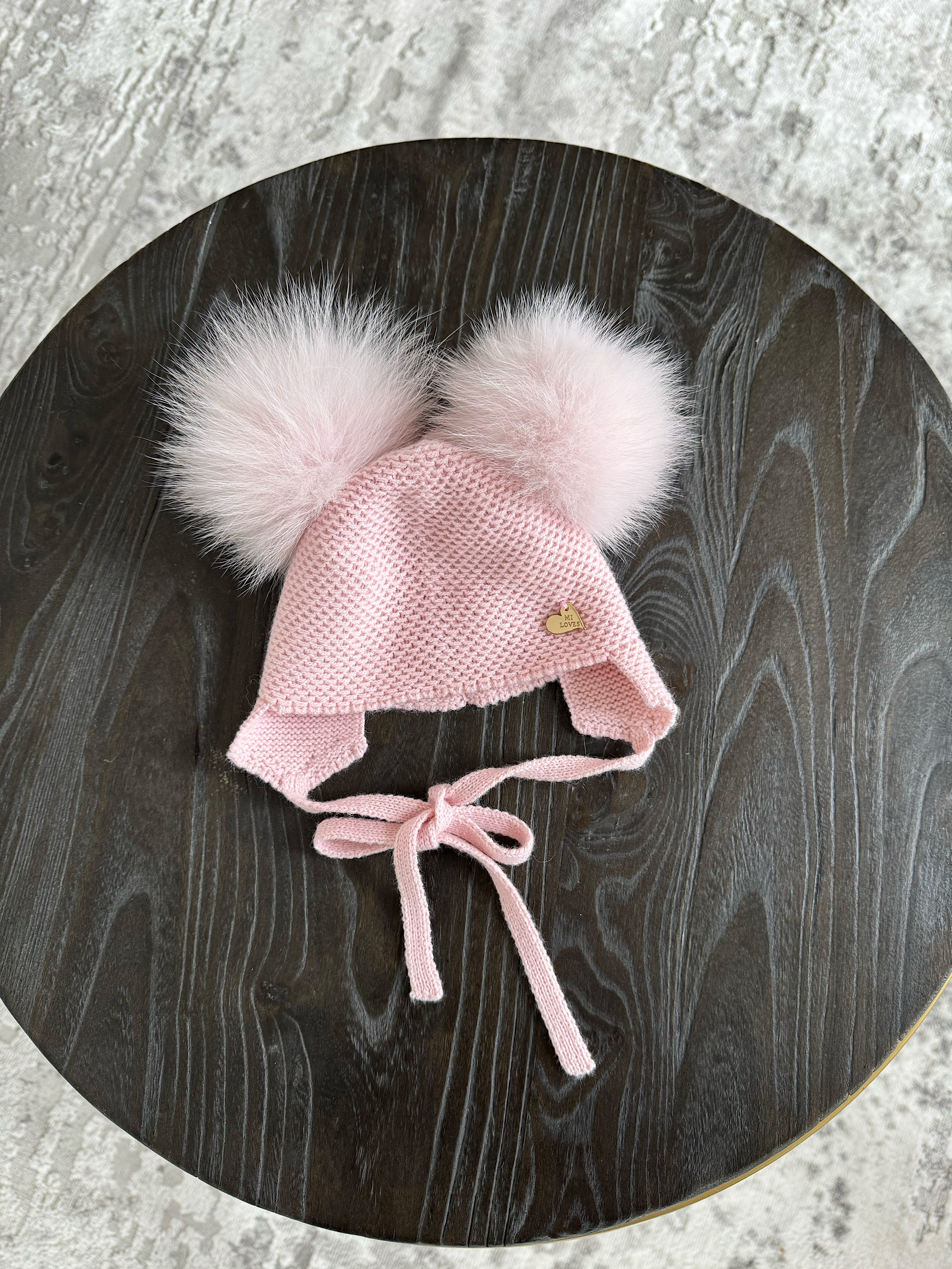 Knitted Double pompom hat .