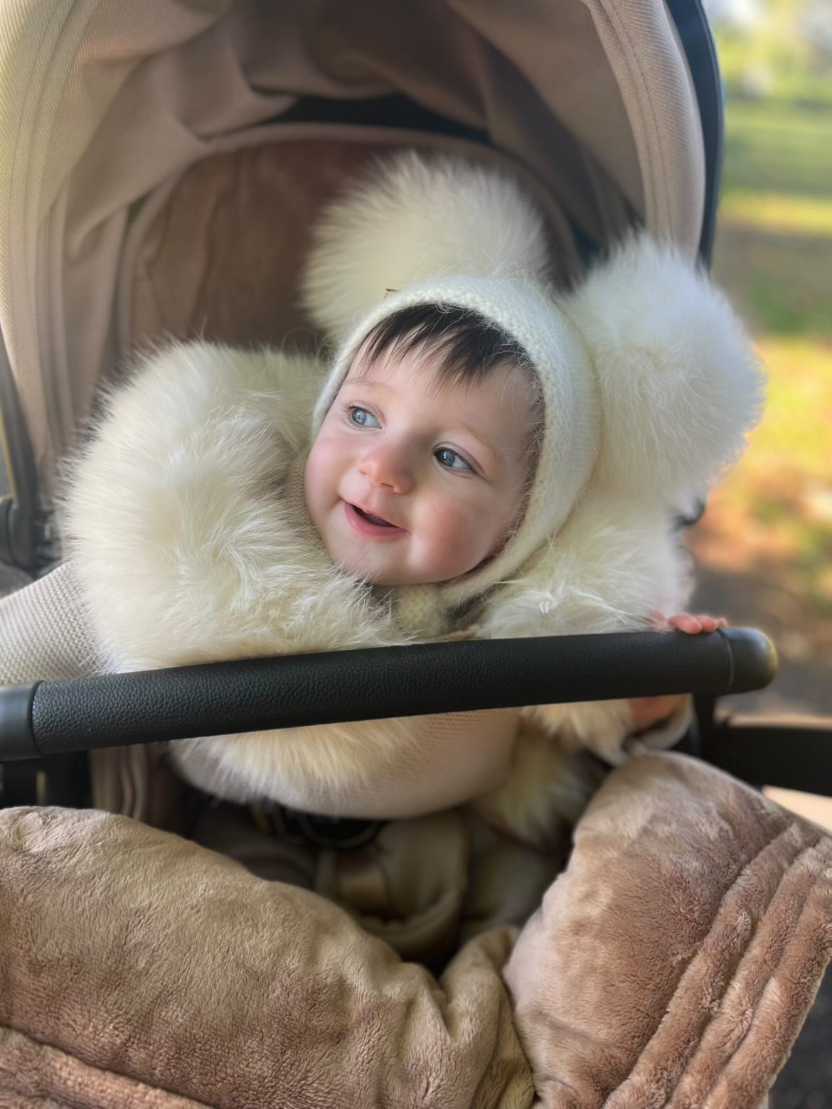 MI LOVES SIGNATURE Little Bear Angora Double pompom hat.Beautiful,Soft and warm angora yarn and lovely big round fox fur pompoms.
