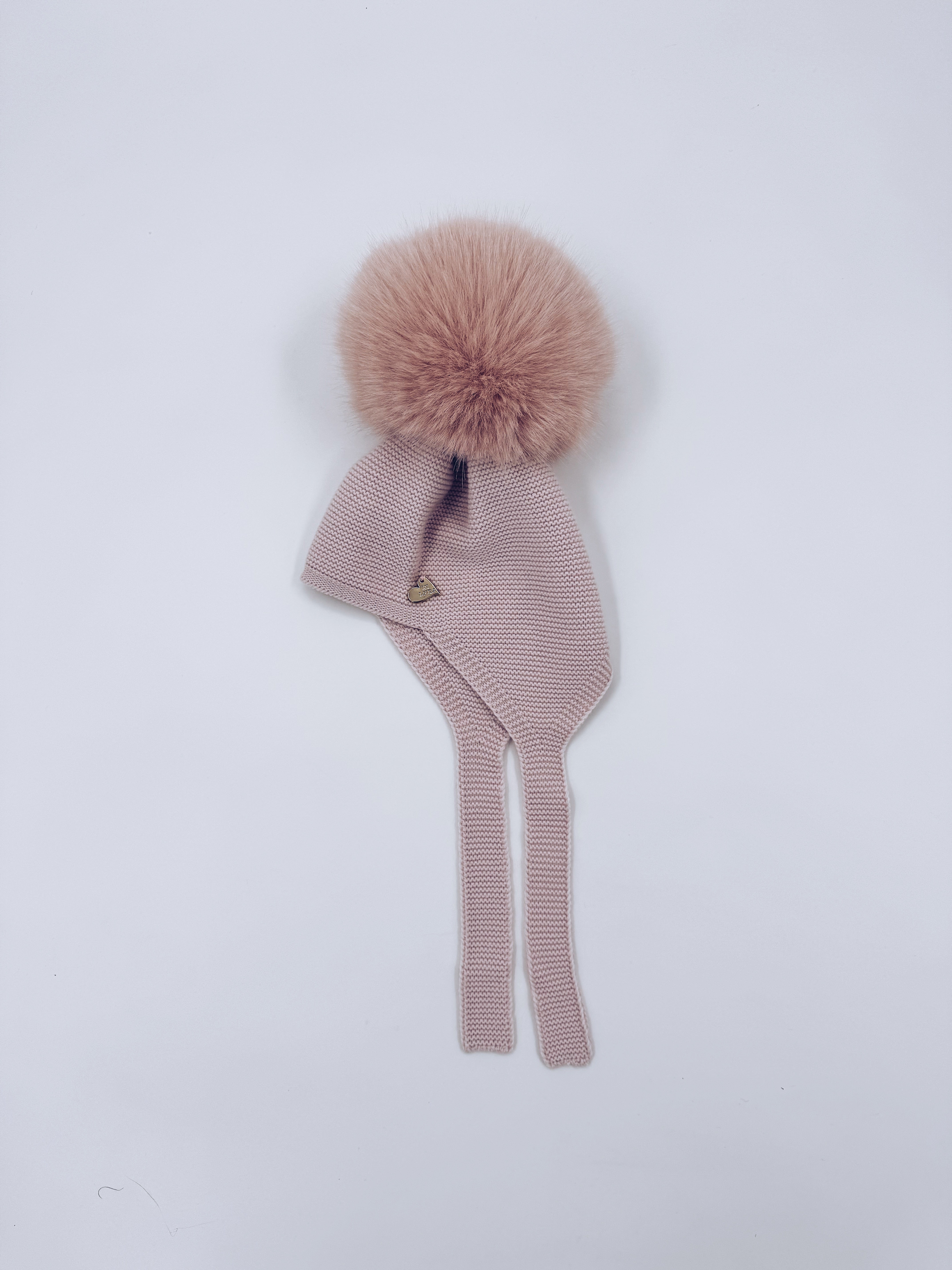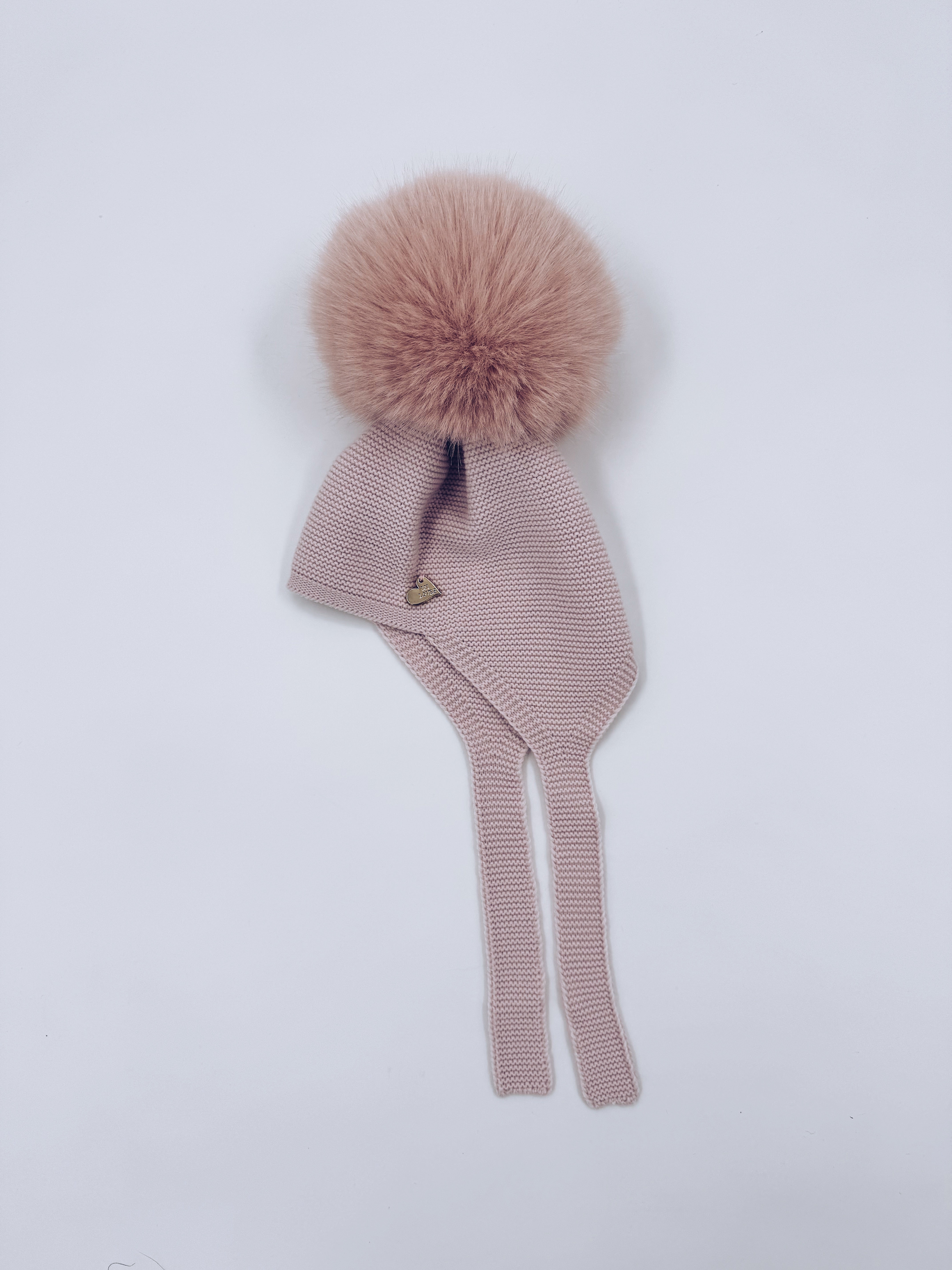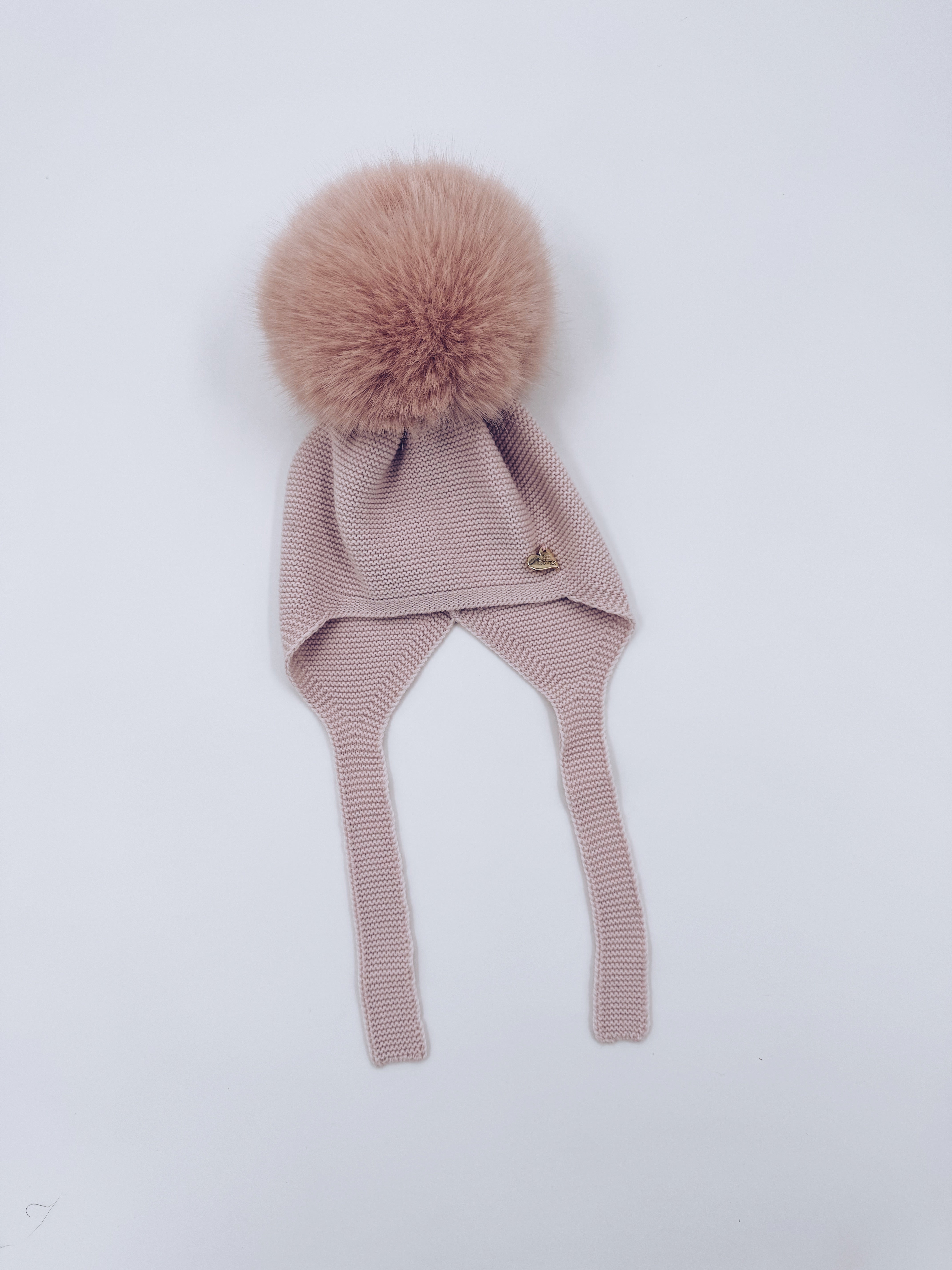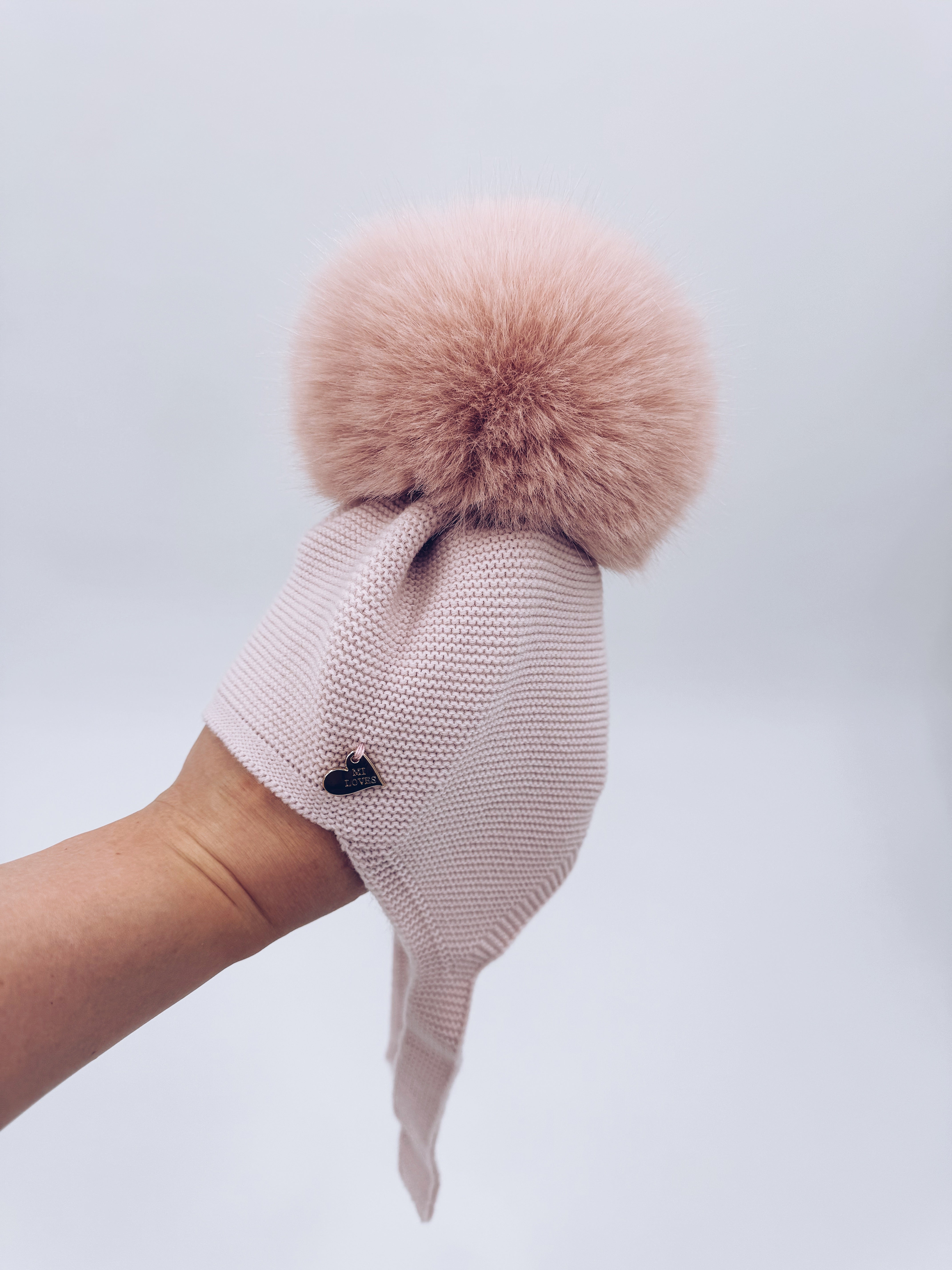 MI LOVES Signature Luxurious knitted Pompom hat with Synthetic fur pompom in Dusty Pink