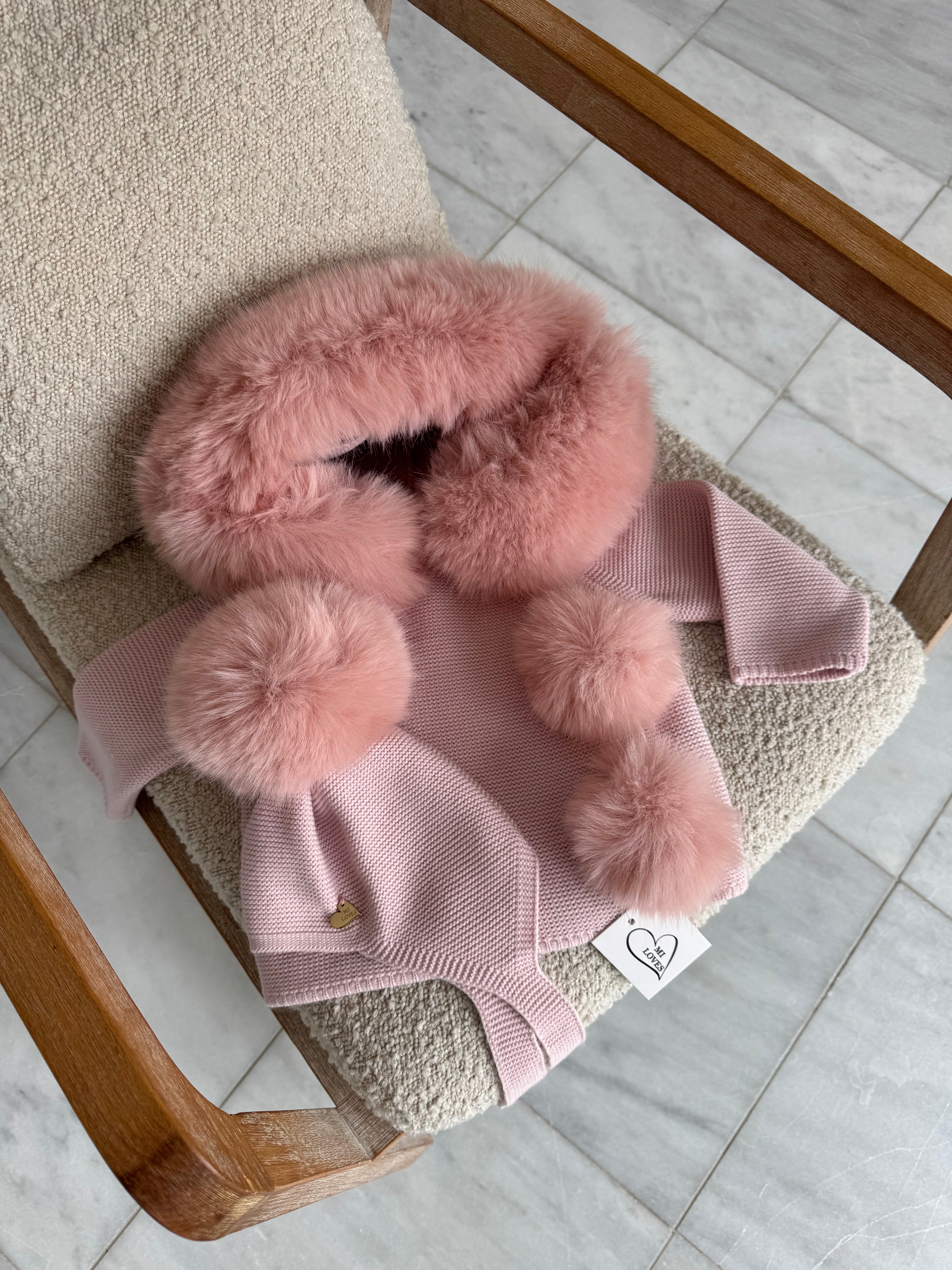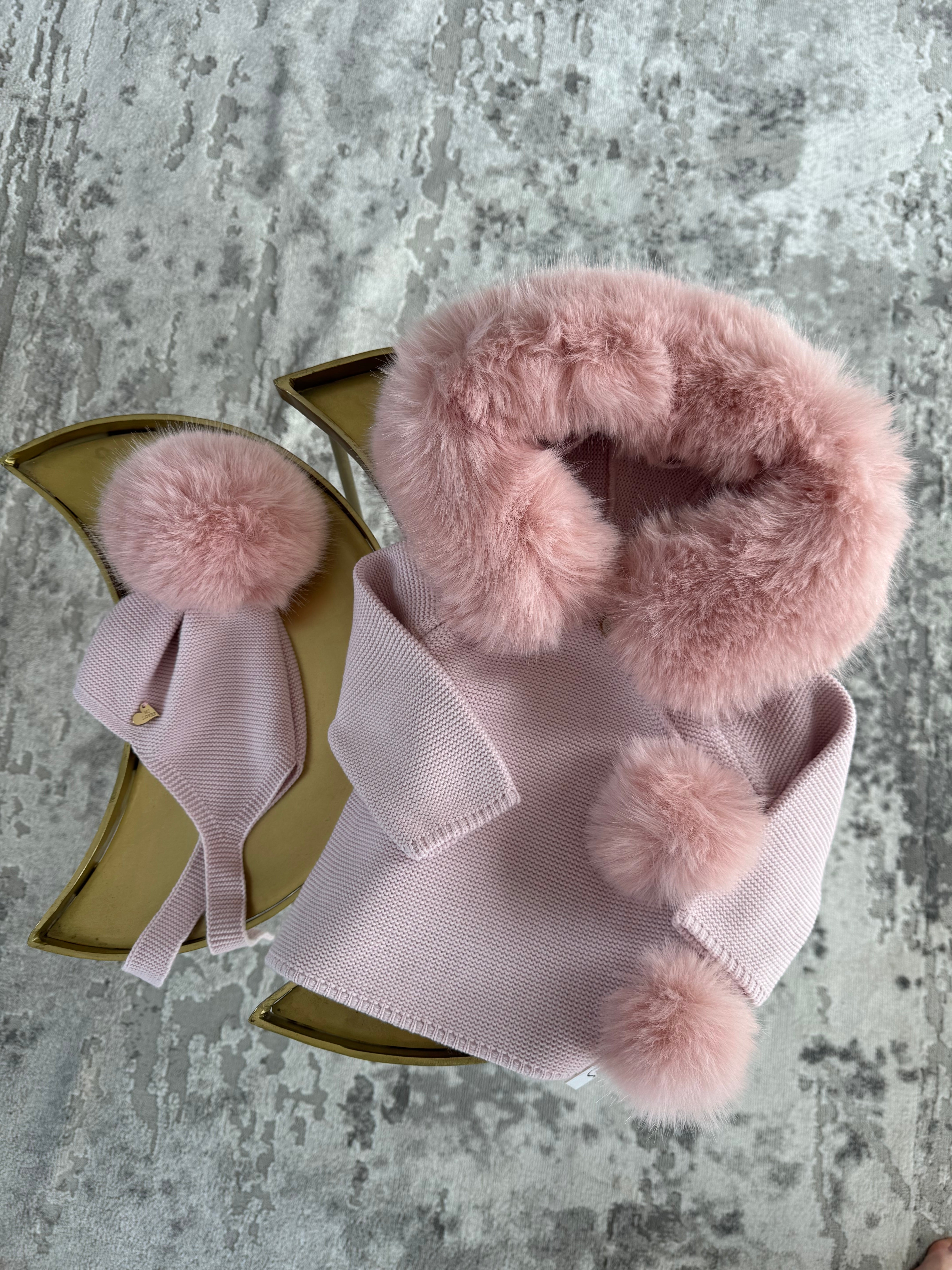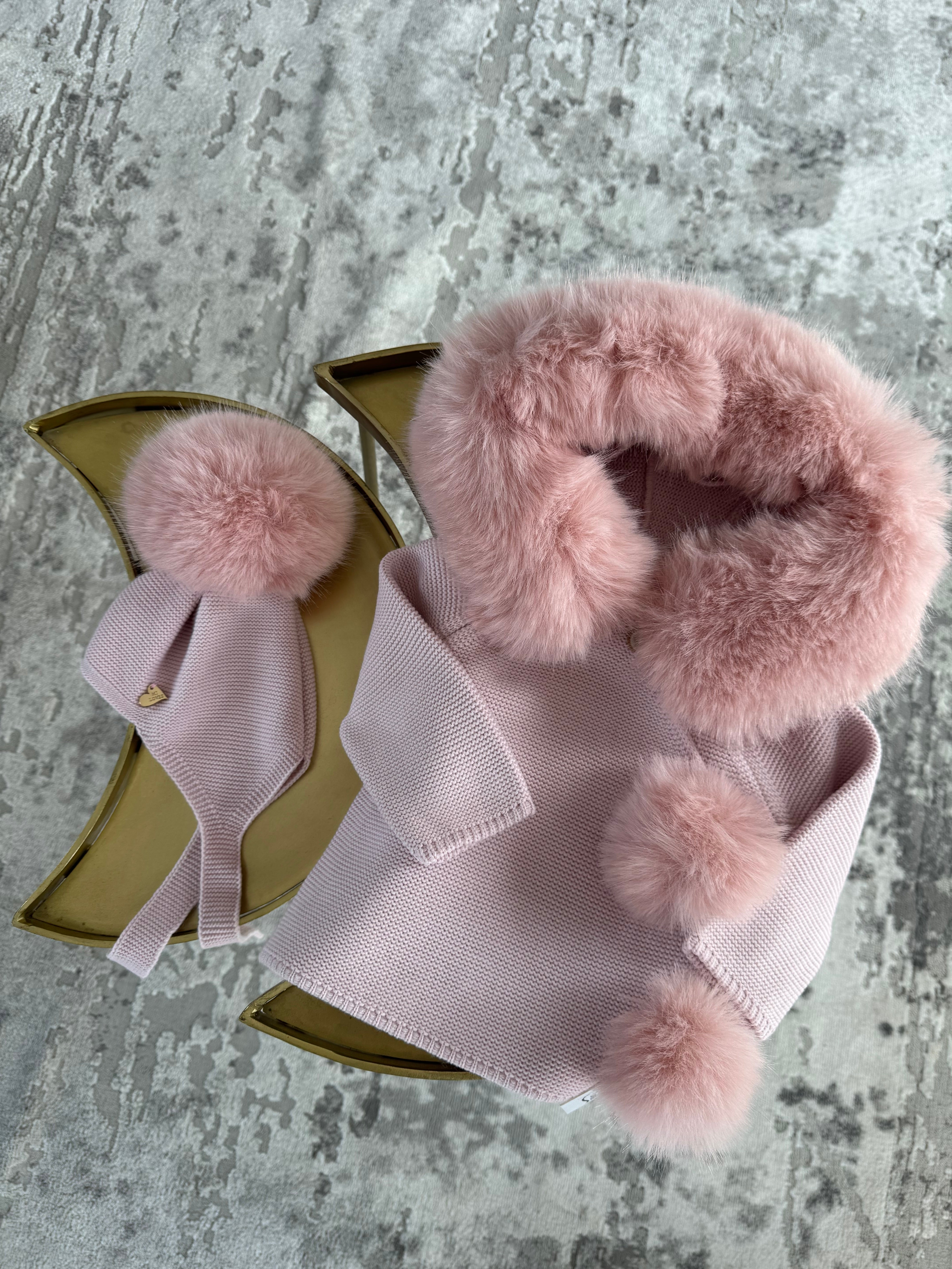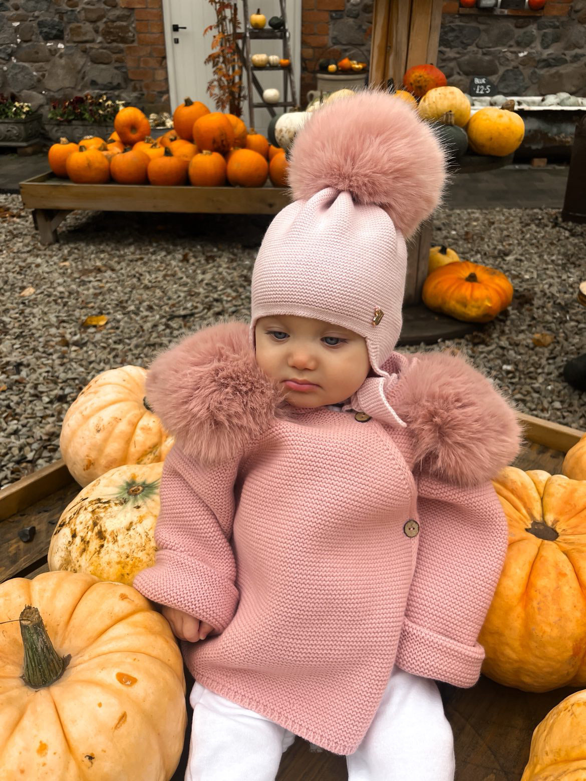 MI LOVES Signature Luxurious knitted Pompom hat with Synthetic fur pompom in Dusty Pink