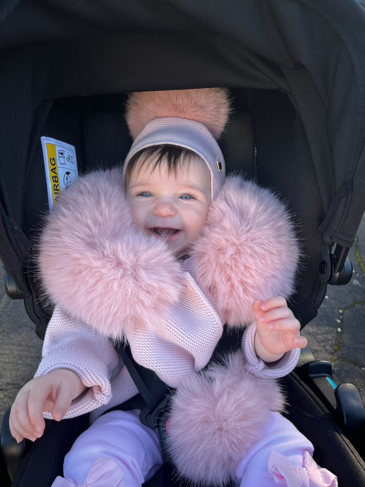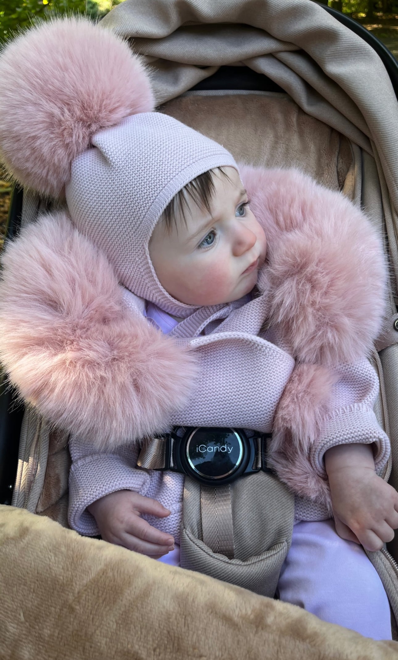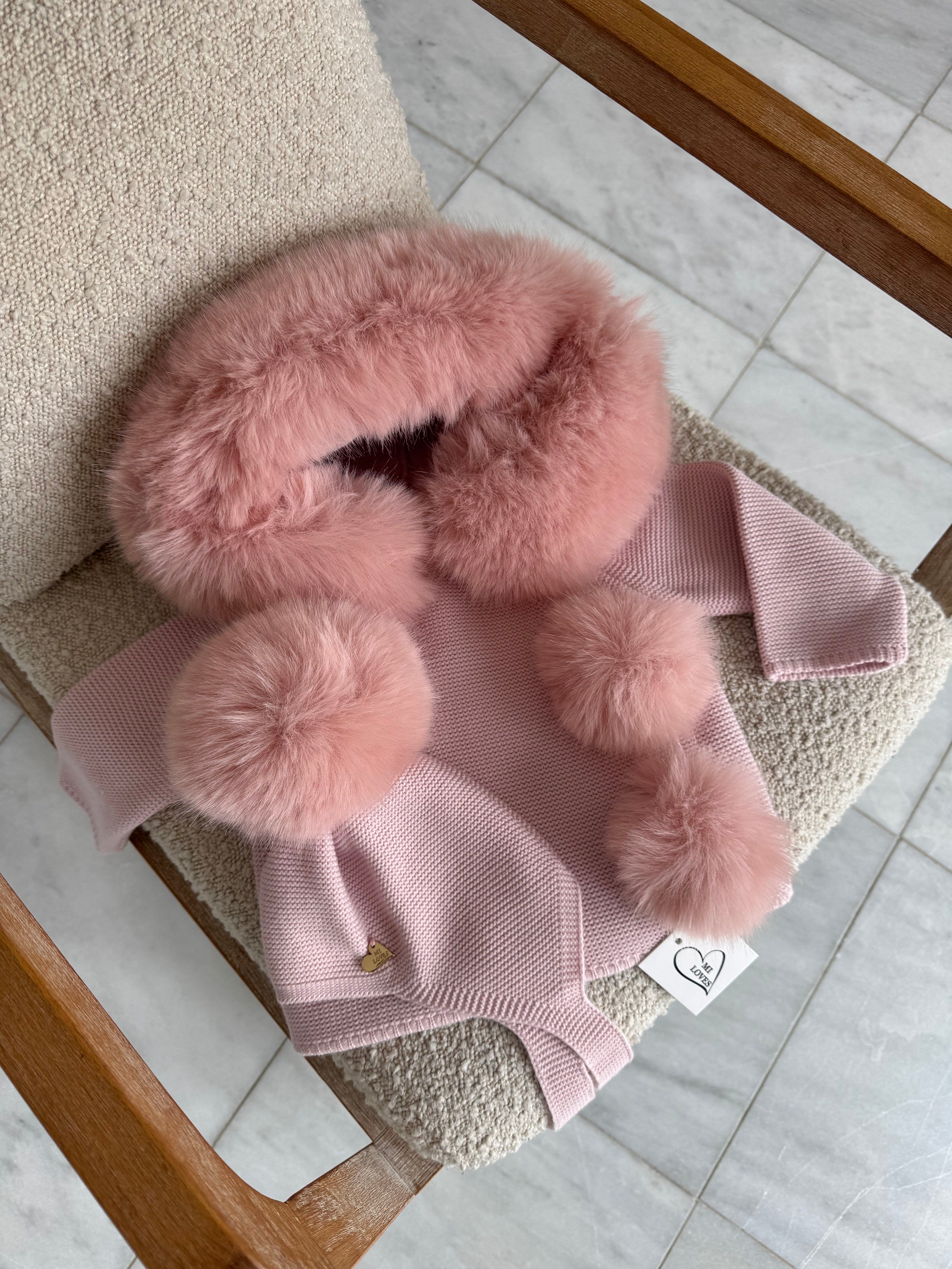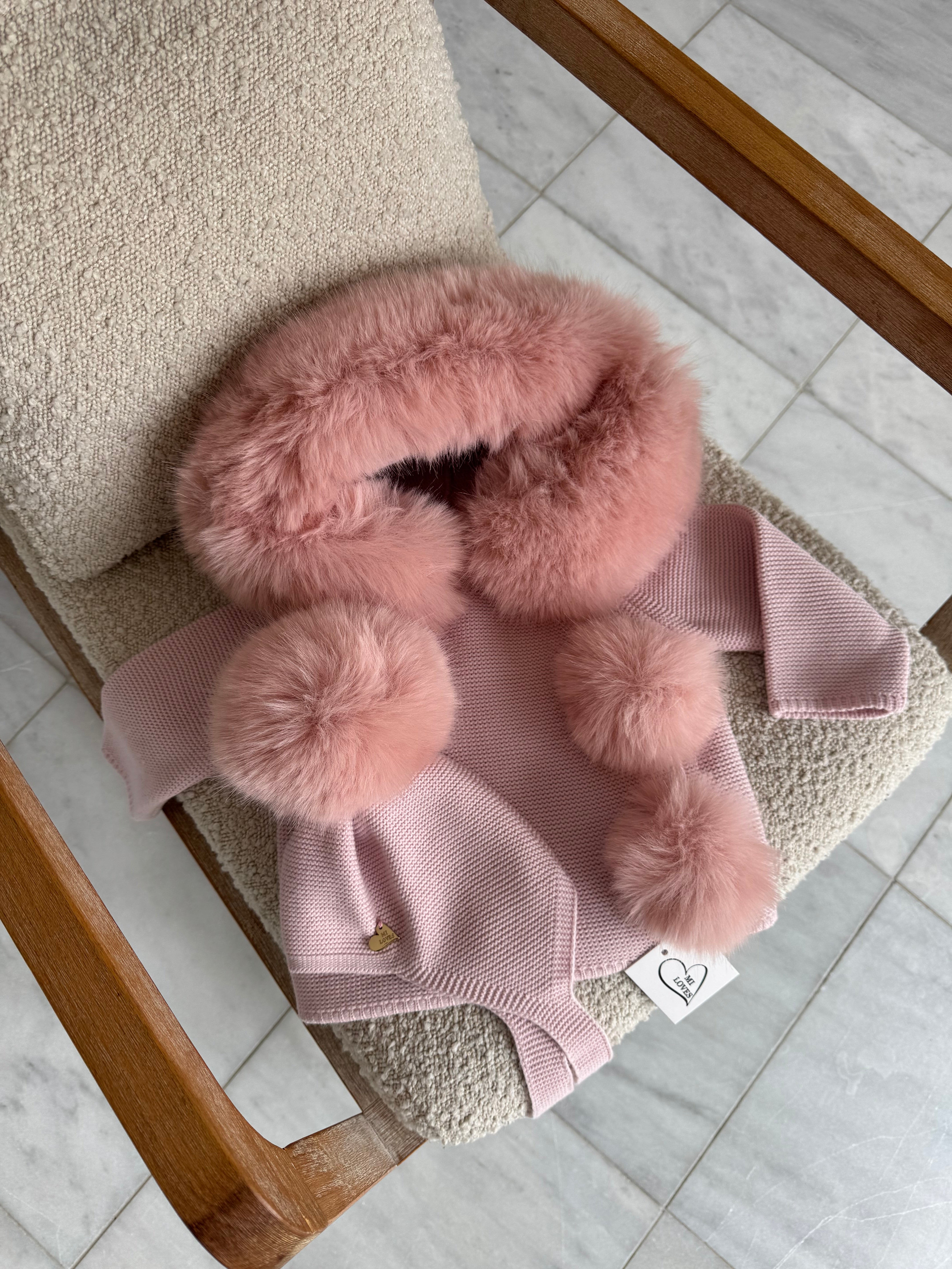 MI LOVES Signature Luxurious knitted Pompom hat with Synthetic fur pompom in Dusty Pink