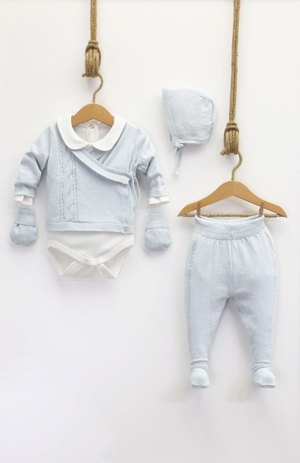 Beautiful Baby Blue Knitted Baby 5 piece set(Jumper/Trousers/Hat/Bodysuit/Mittens)