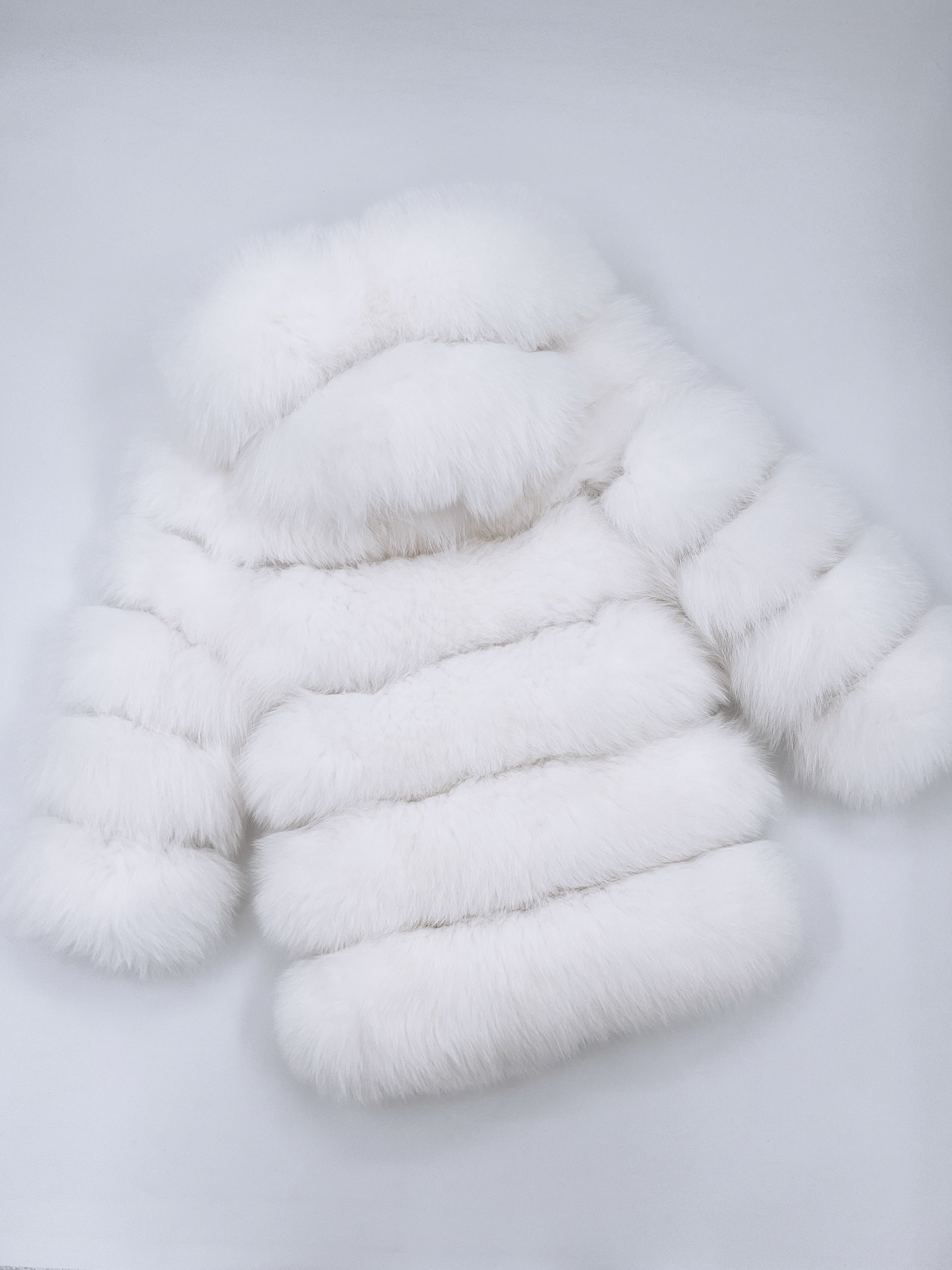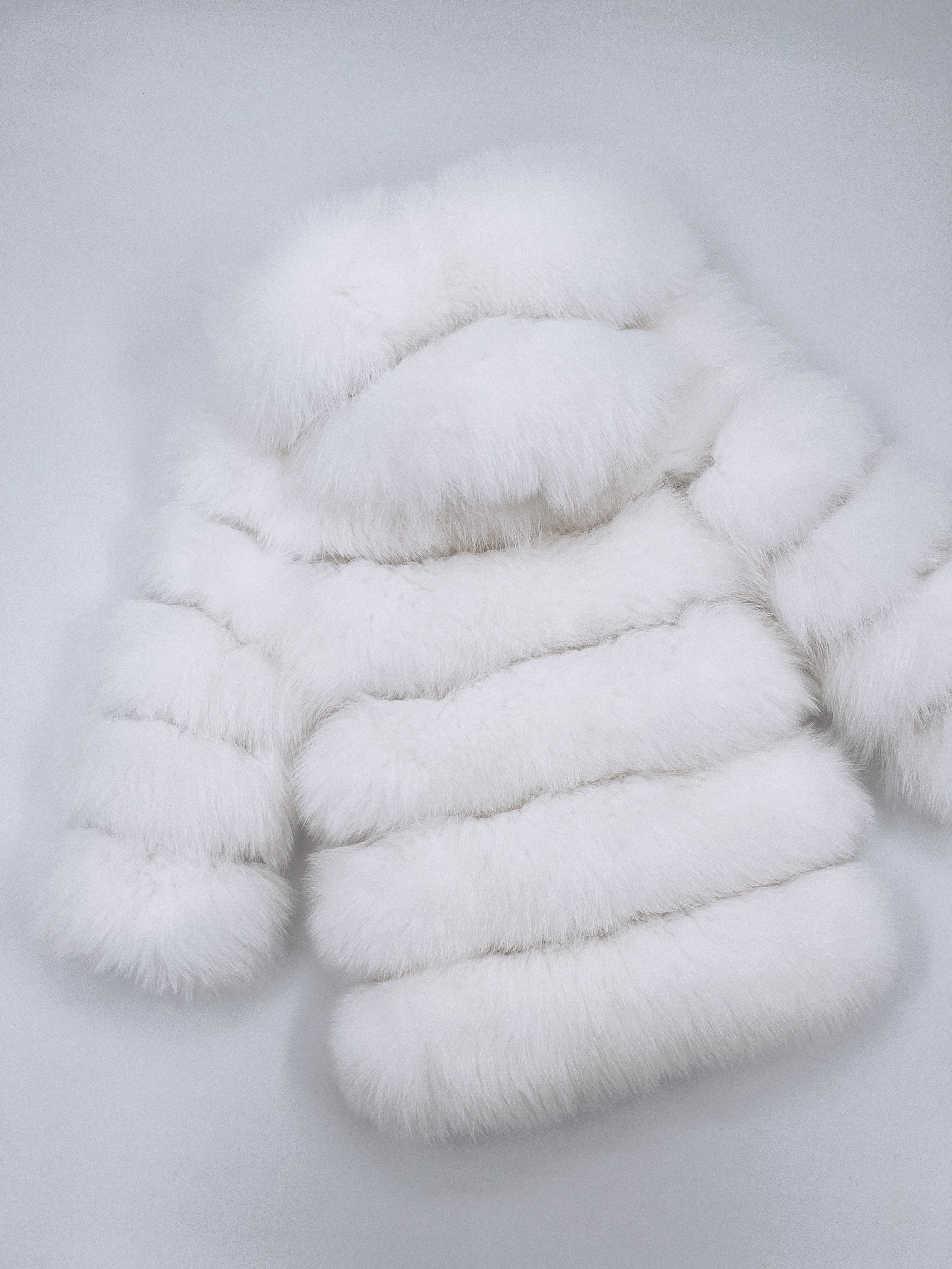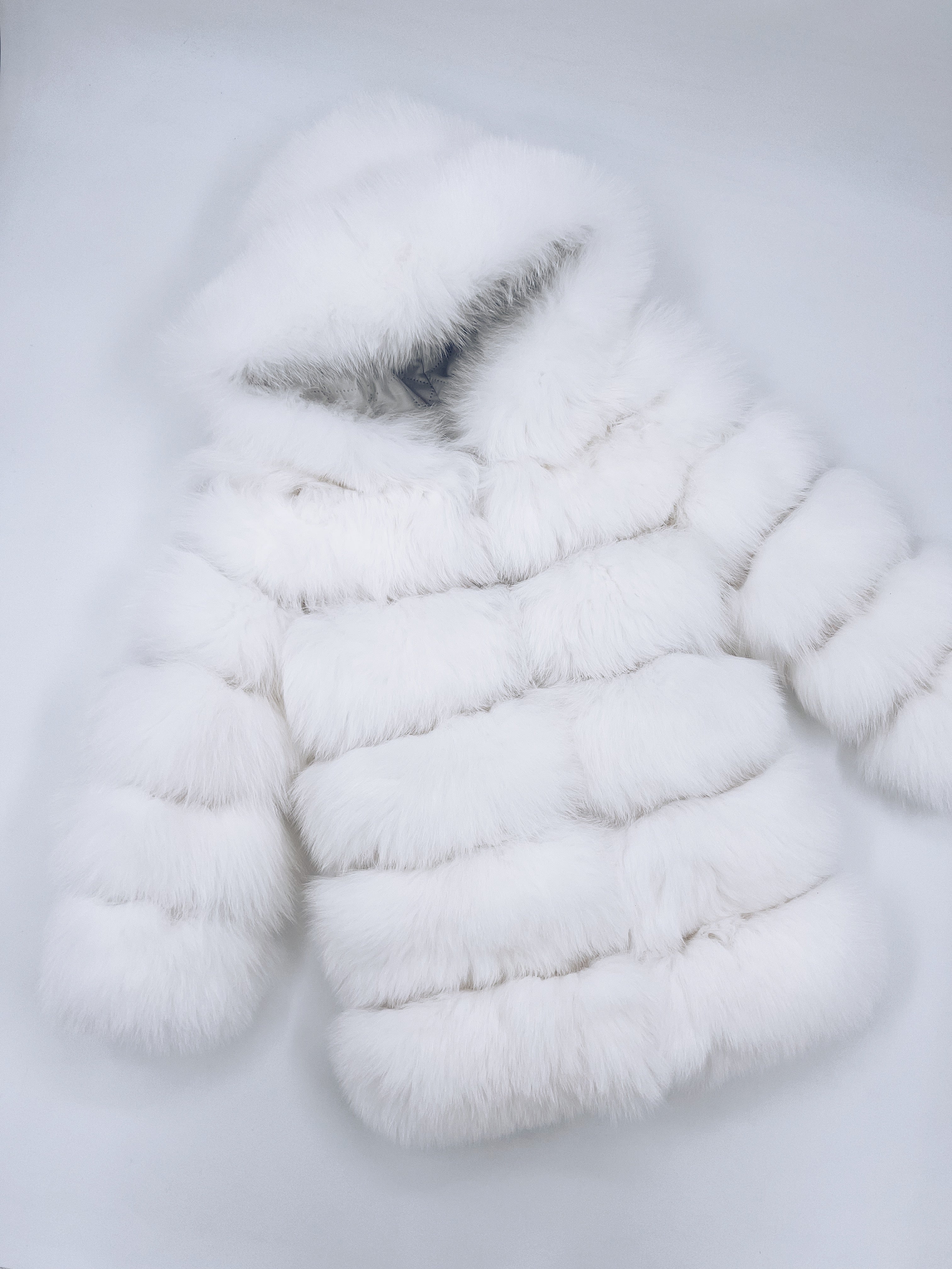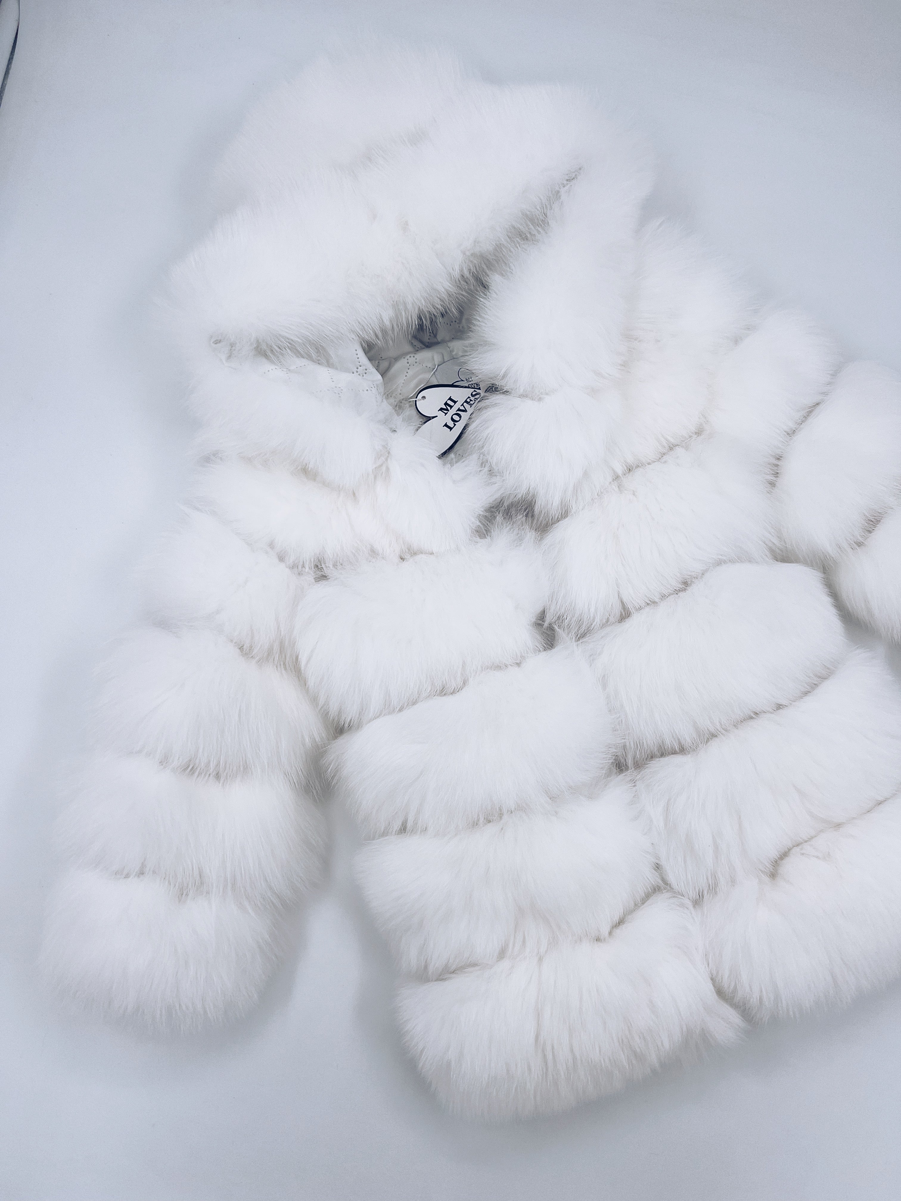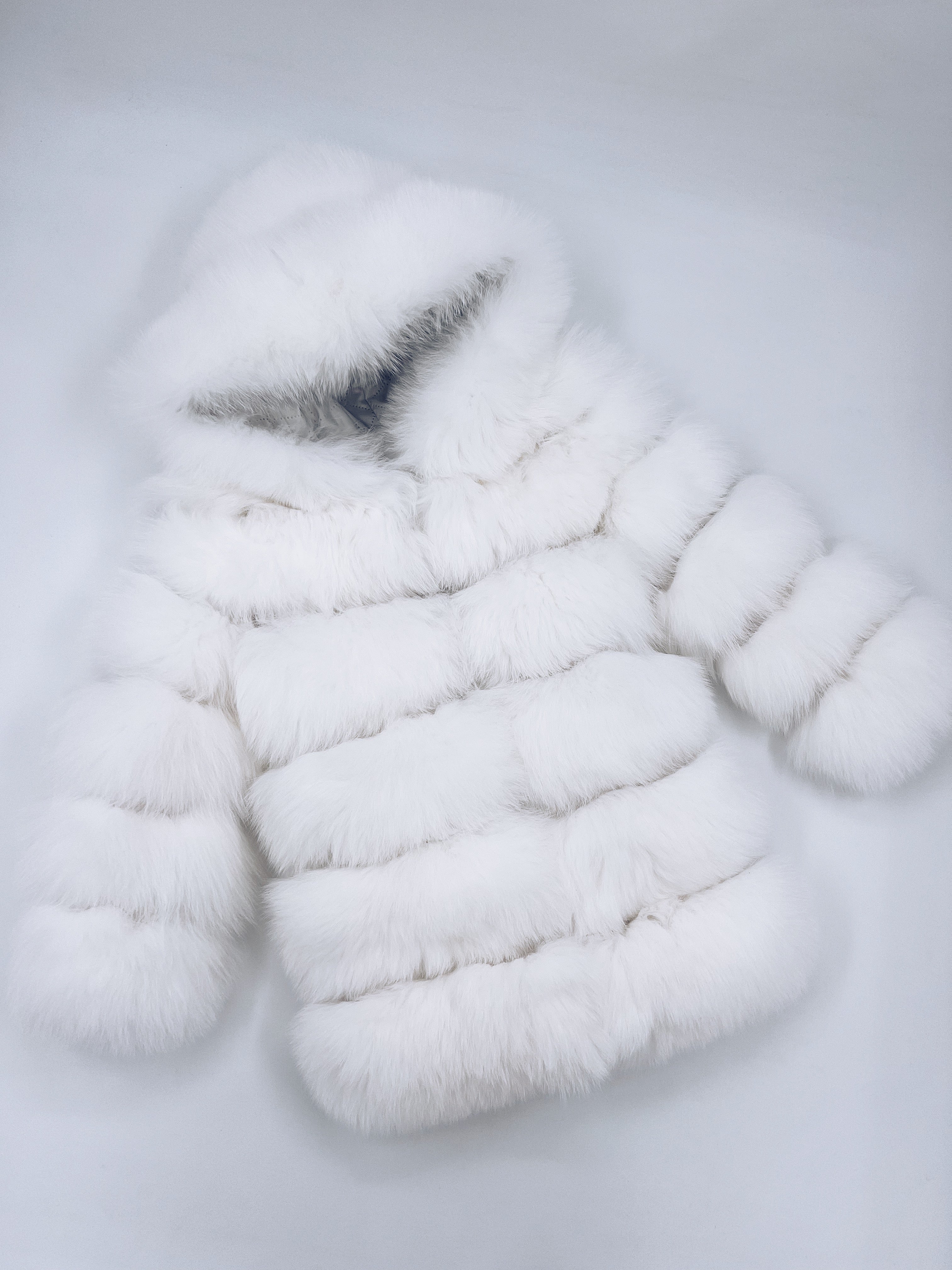 White/Ivory MI LOVES SIGNATURE ELITE COLLECTION,SUPER LUXURIOUS LONG FOX FUR COAT!This coat is super Luxurious and feminine ,with a long sleeves, hood and hidden hook fastening on the front.