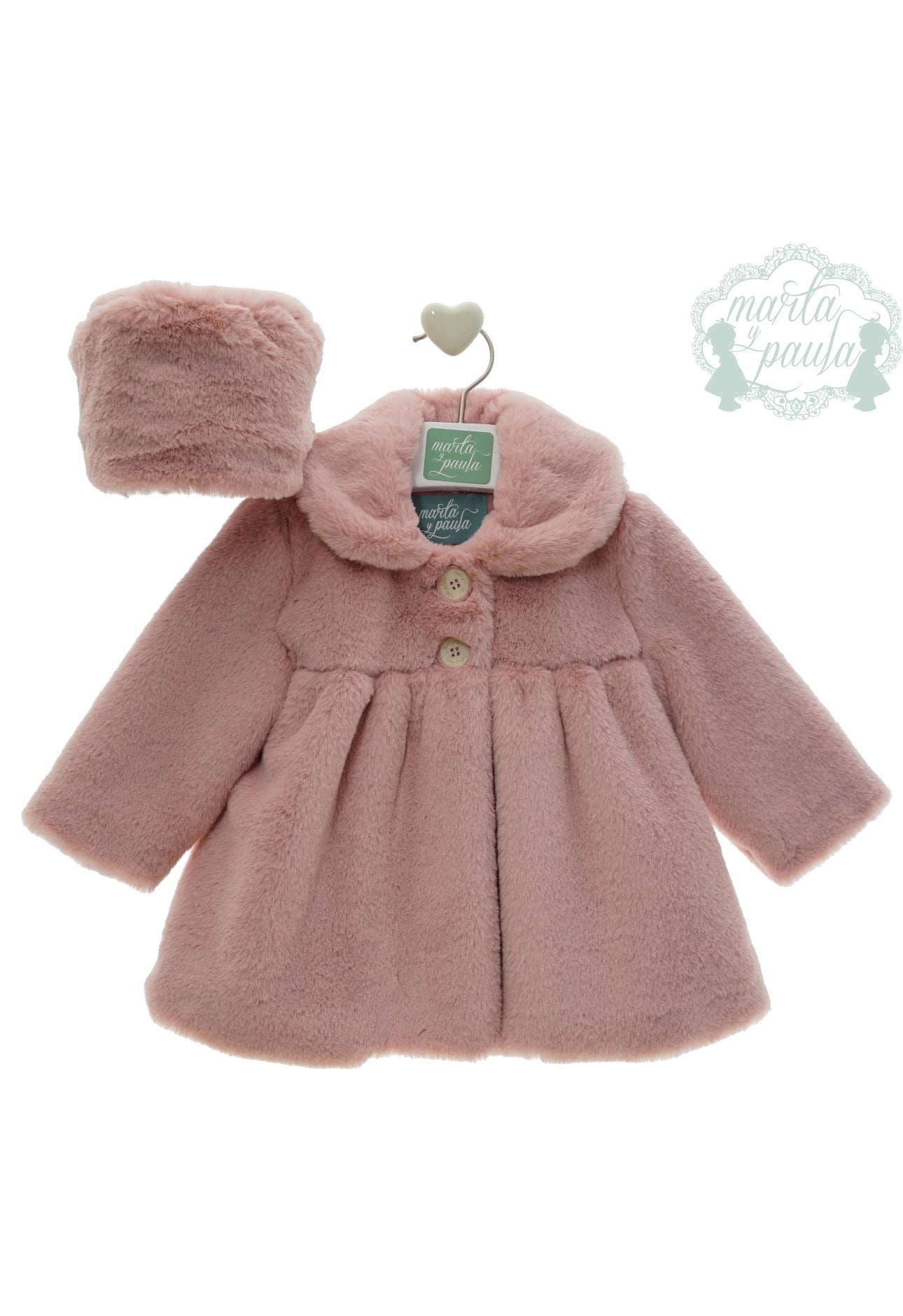 Beautiful Dusty pink Synthetic fur Jacket and bonnet 2 piece set.