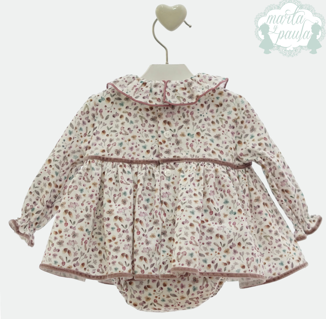 Beautiful Floral pink Dress and bloomers set with lovely dusty pink bow details