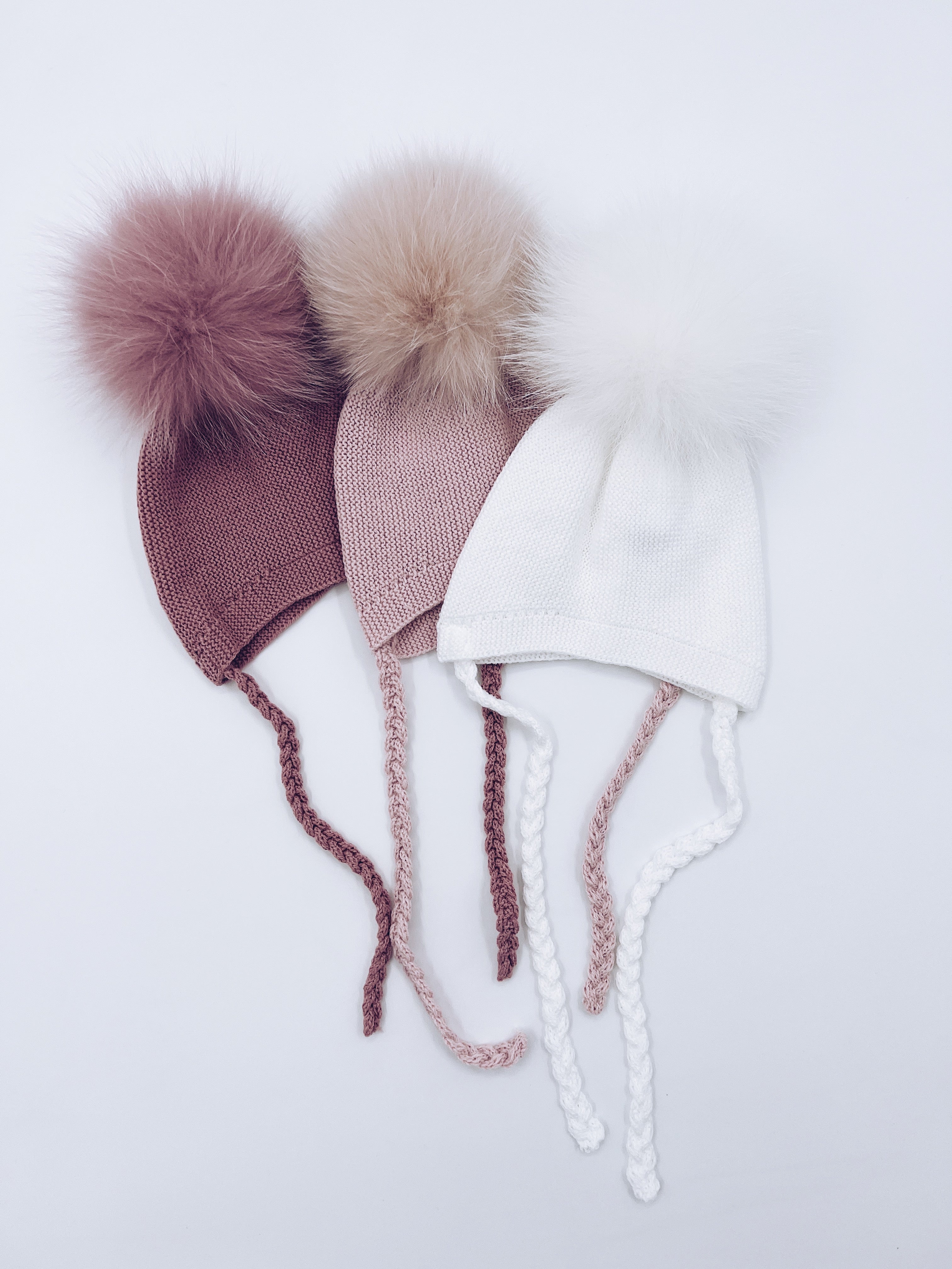 Luxurious knitted Pompom hat with Fox fur pompom.