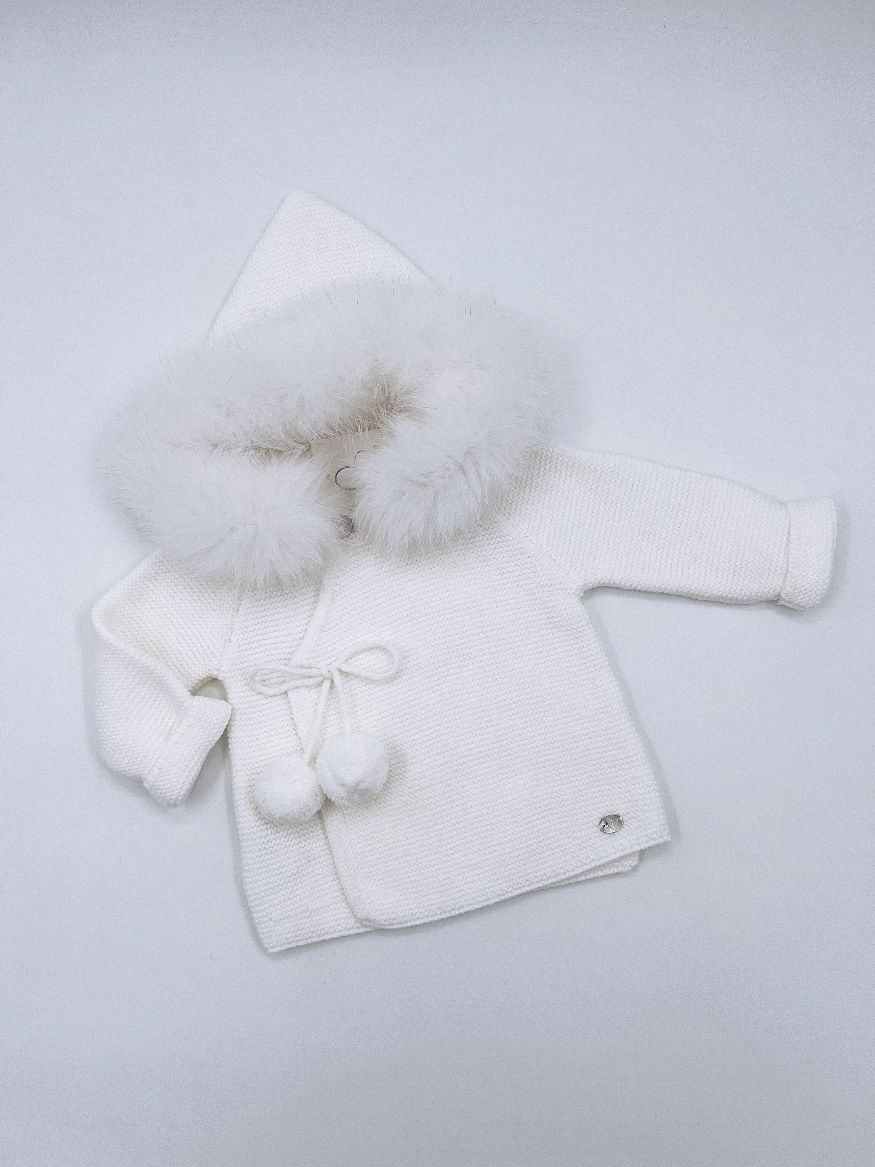 Beautiful Ivory/White knitted Cardigan with Luxurious fur trim.