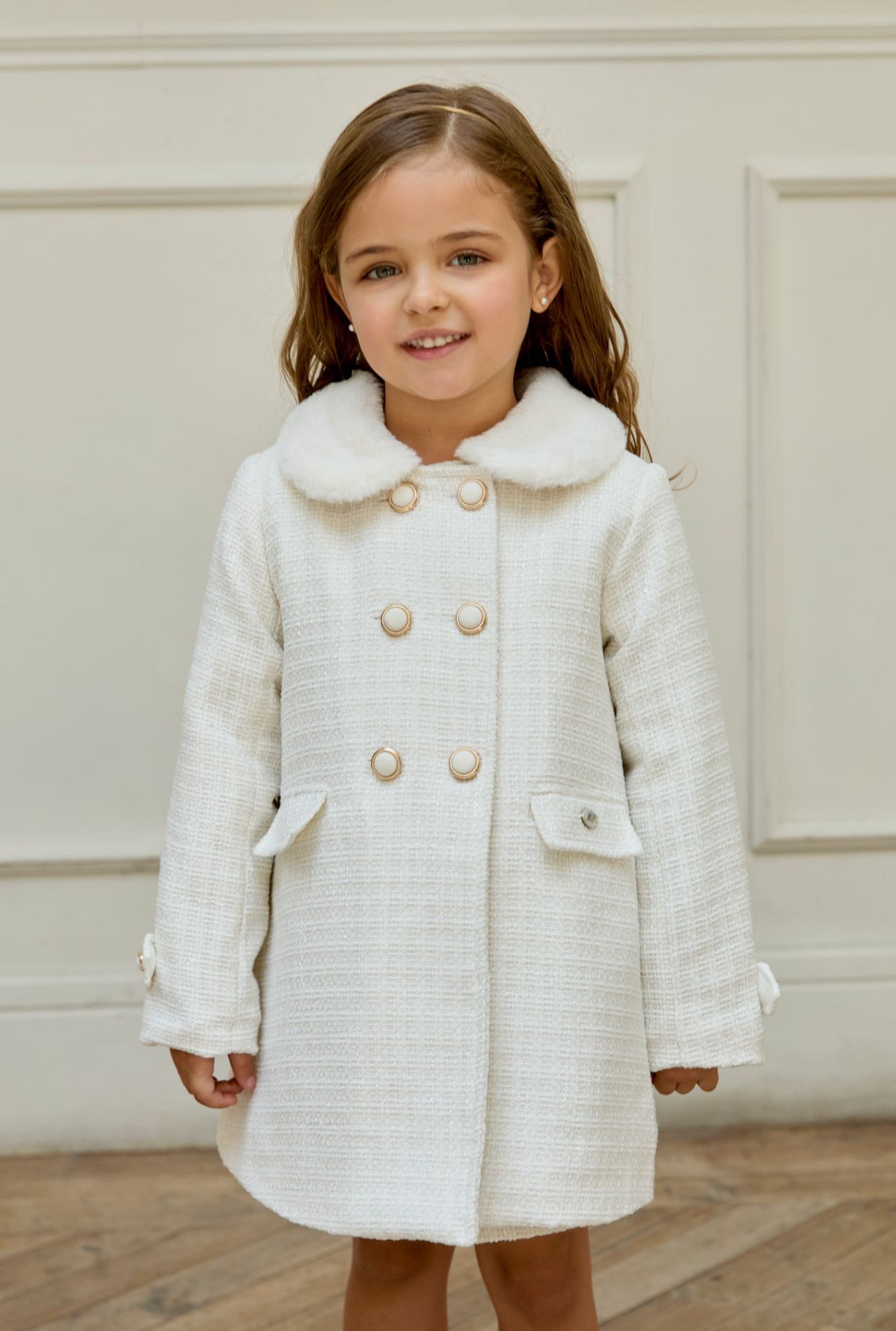 Beautiful Ivory Tweed jacket with synthetic fur trim.