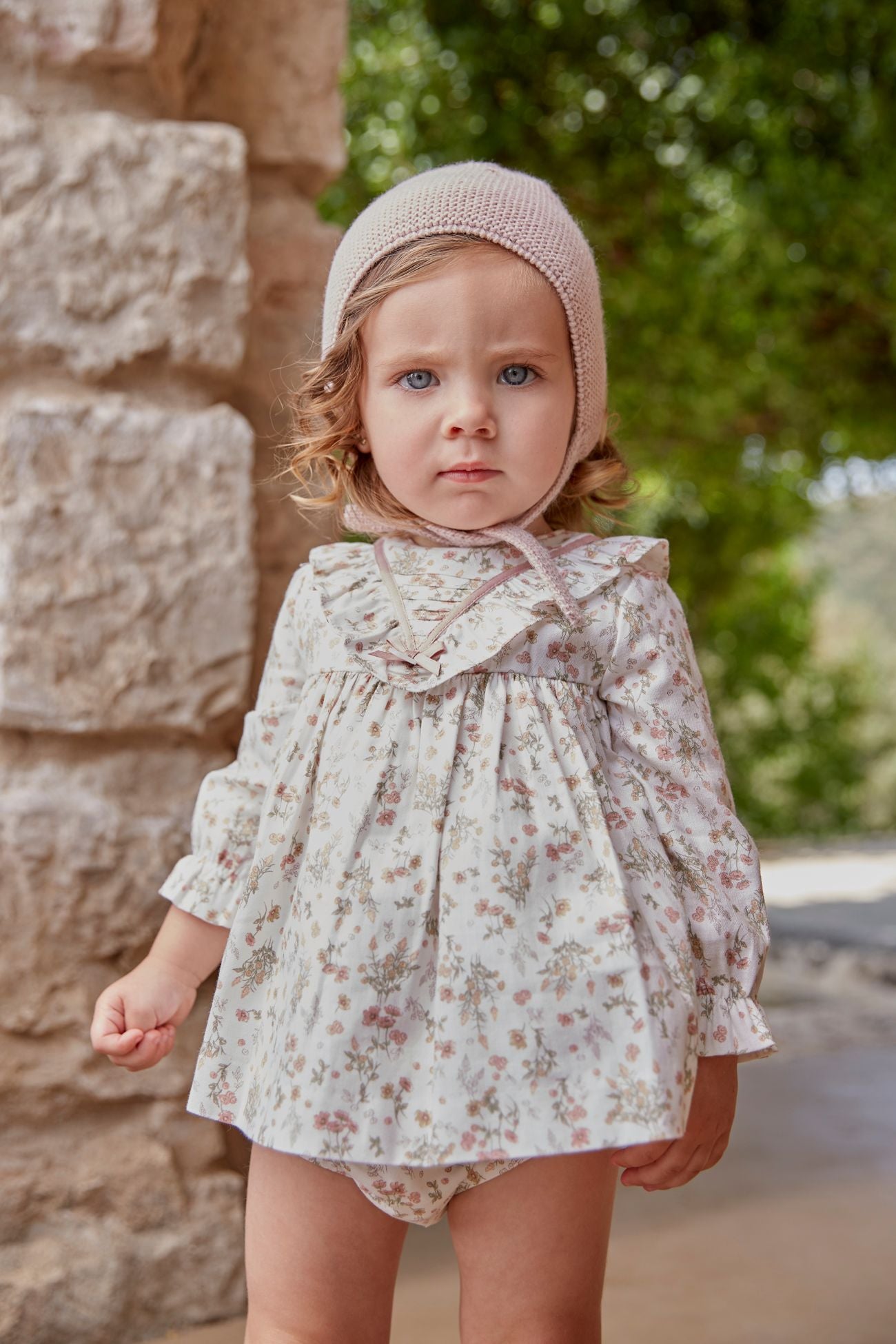 Beautiful floral print Dress and bloomers 2 piece set with Bow details.