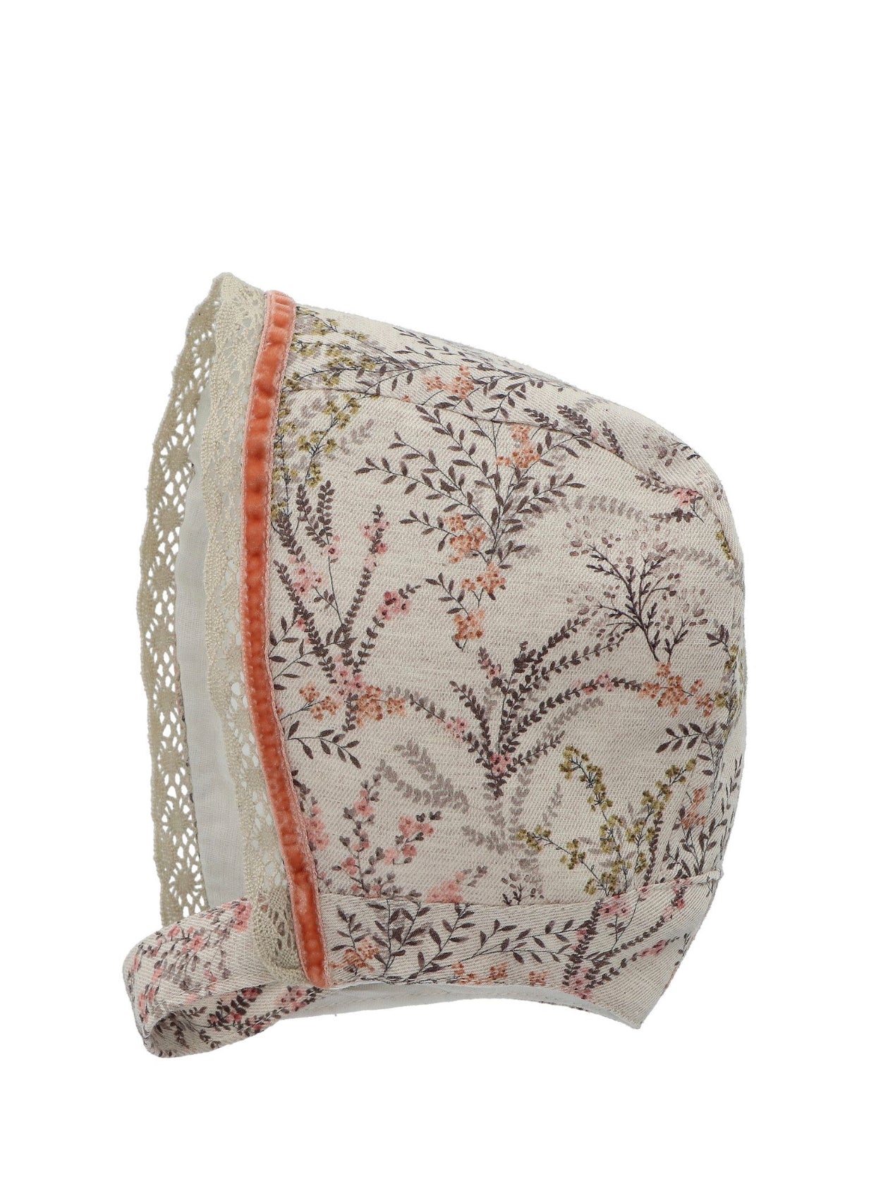 Beautiful Ivory Baby bonnet with lace and bow details.