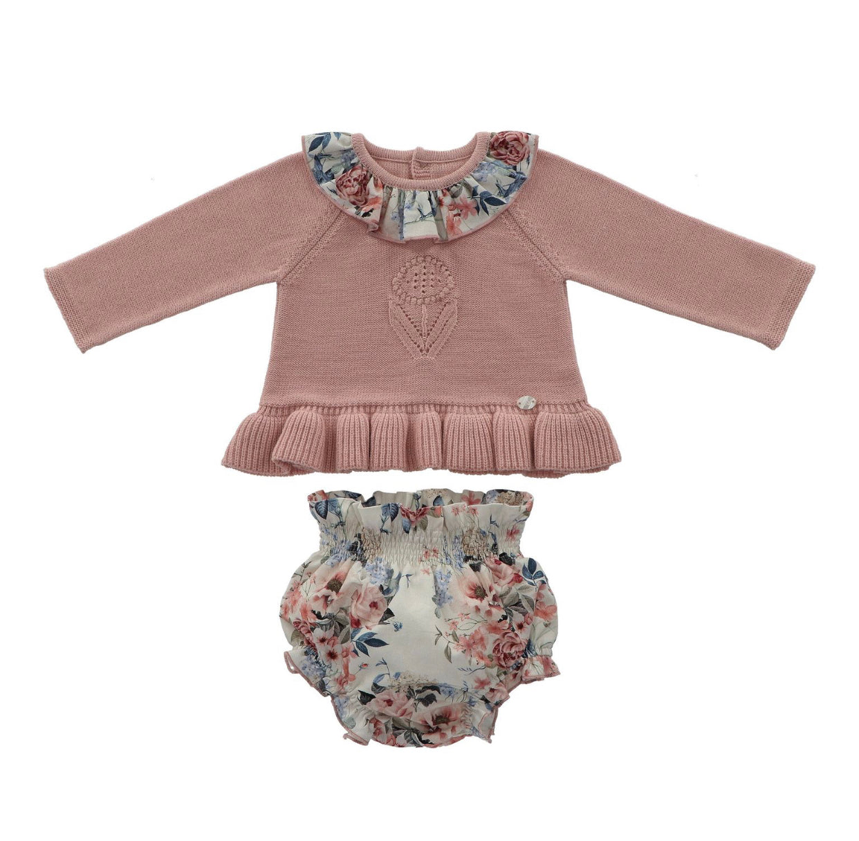 Beautiful Dusty pink Knitted jumper and floral print bloomers 2 piece set