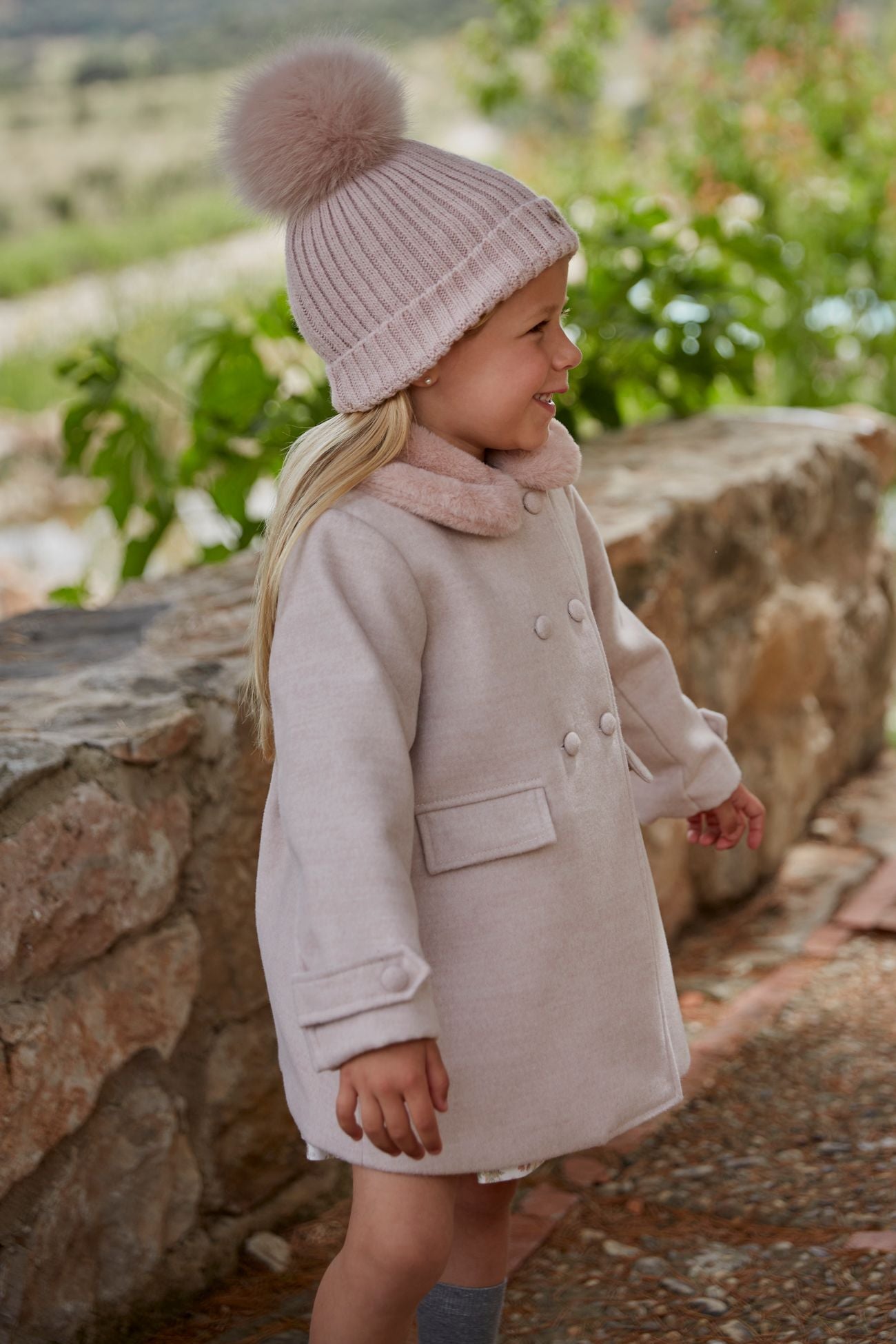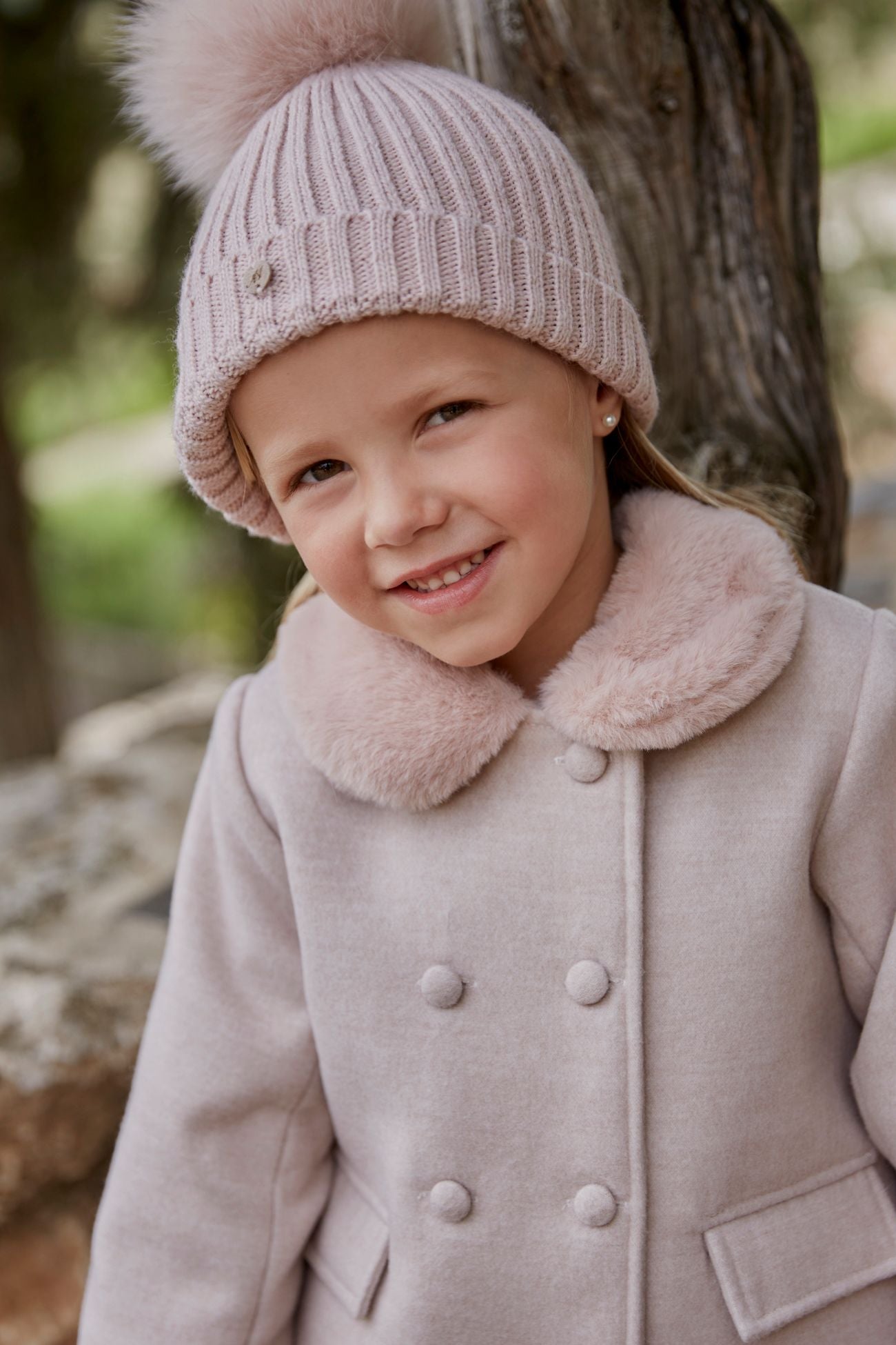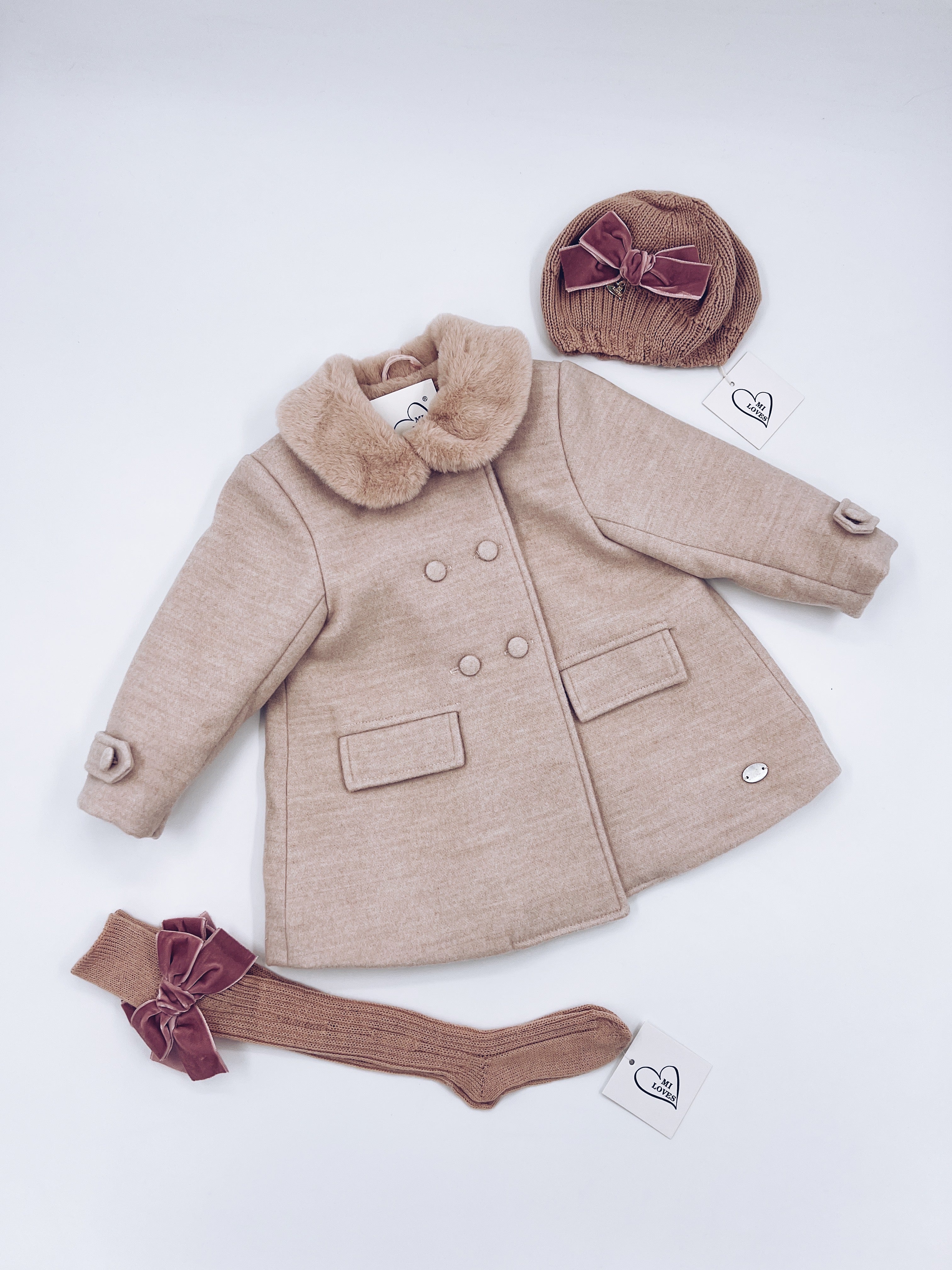 Beautiful Dusty pink Jacket with synthetic fur collar details.