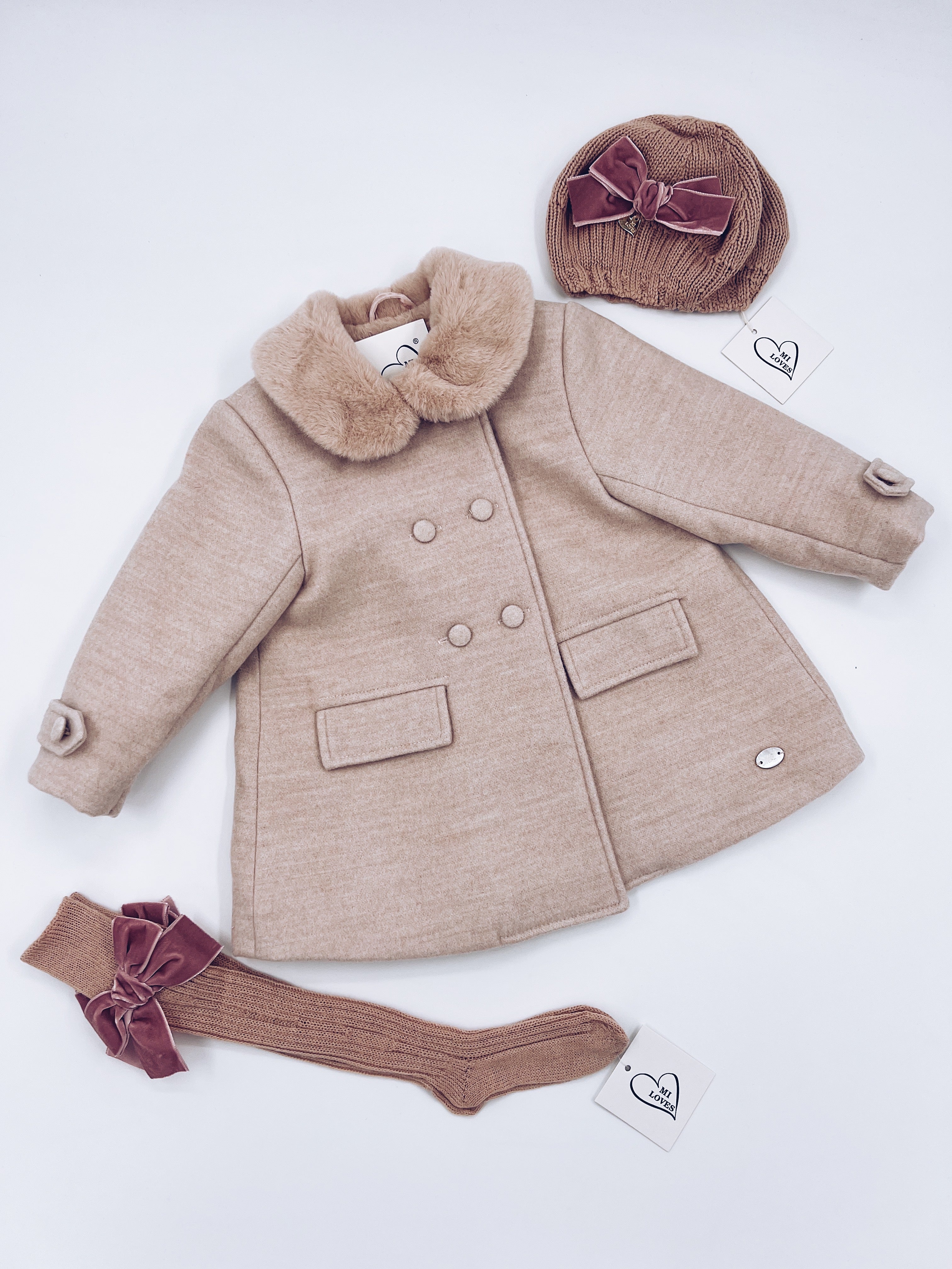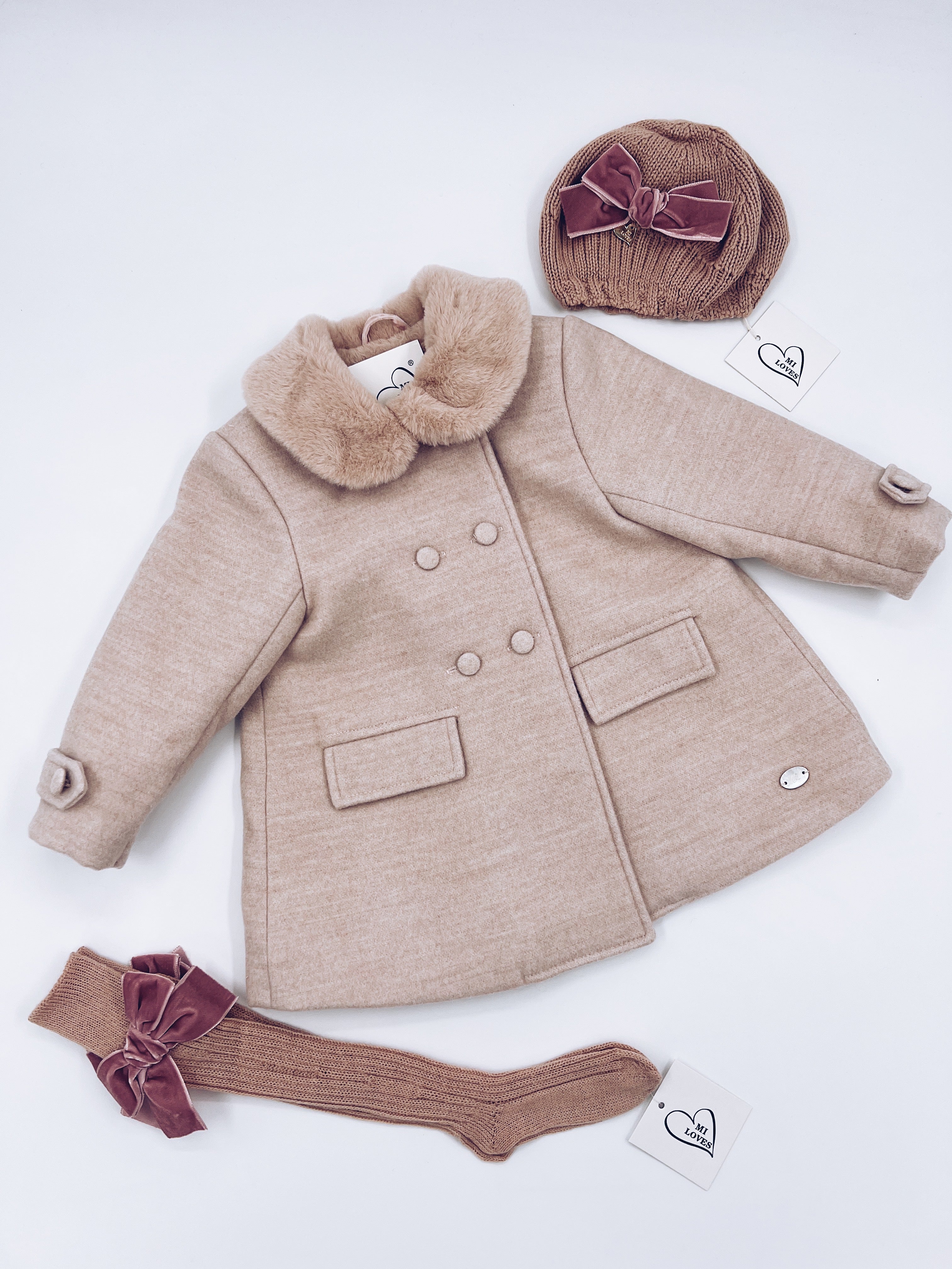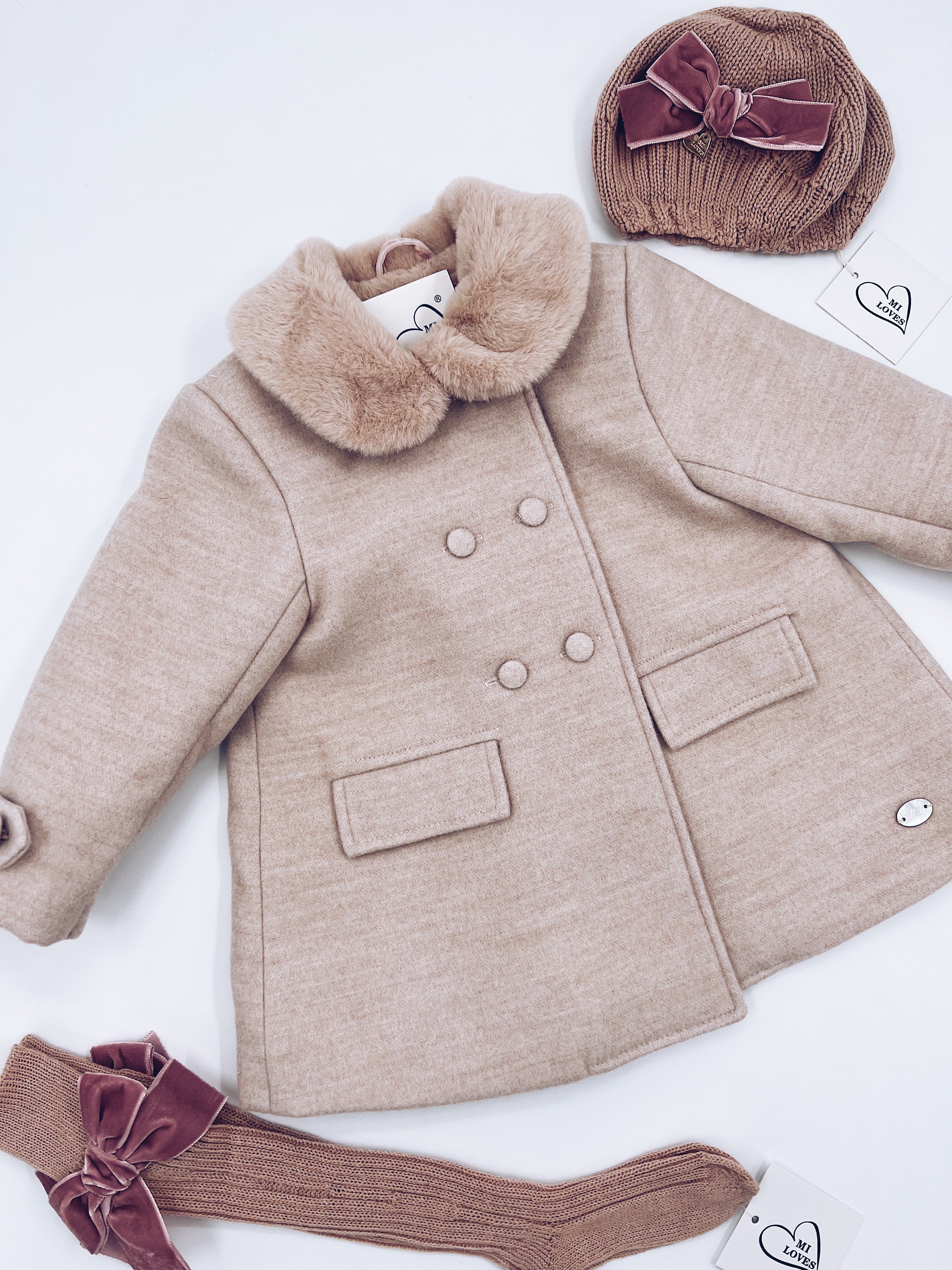 Beautiful Dusty pink Jacket with synthetic fur collar details.