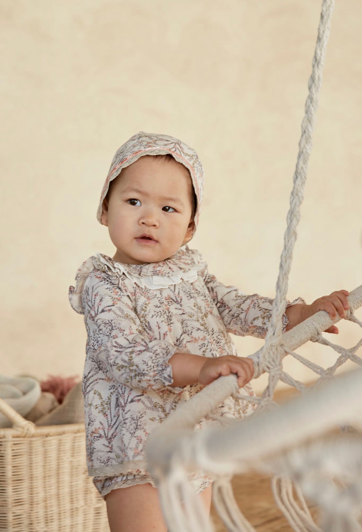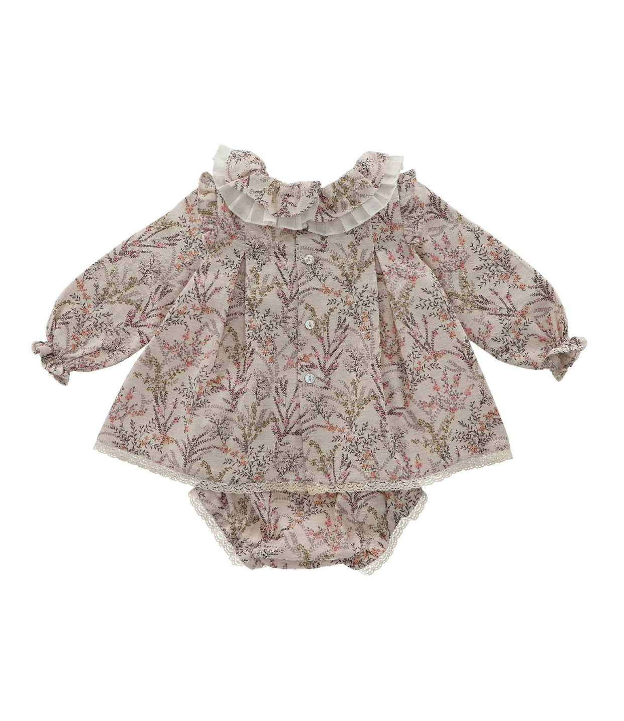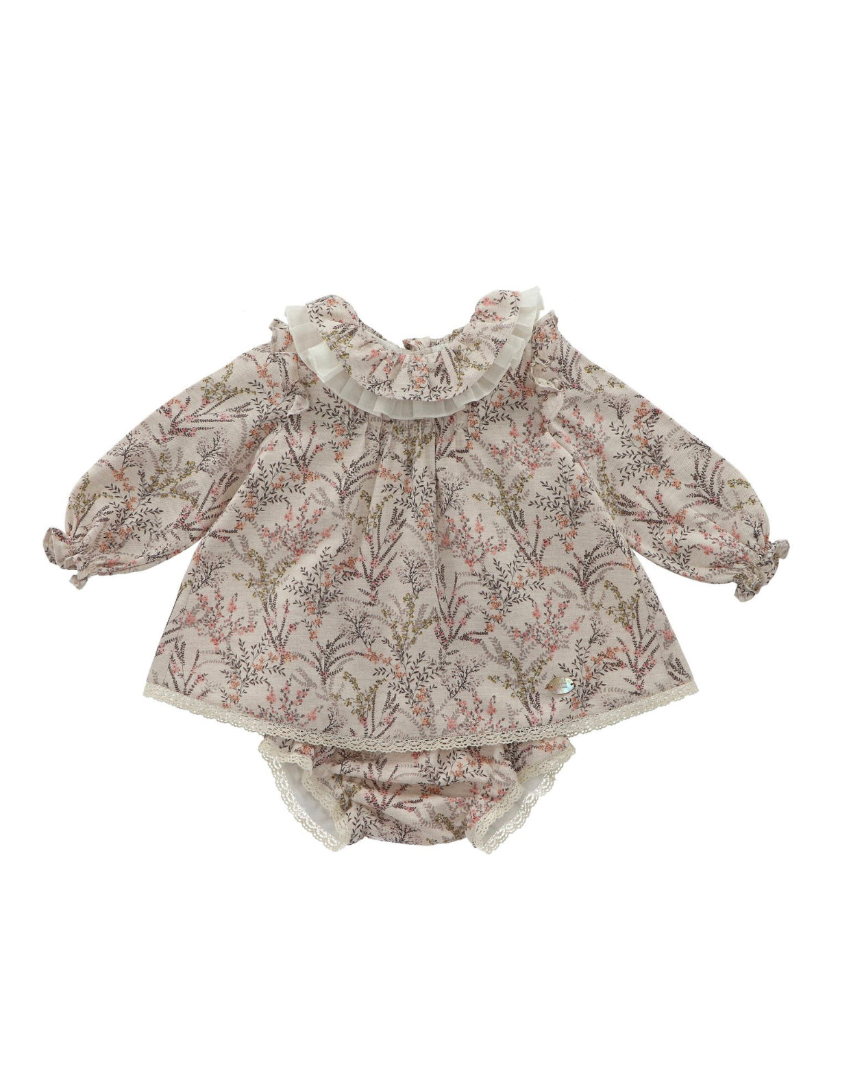 Beautiful Floral Dress/bloomers 2 piece set with lace trim details
