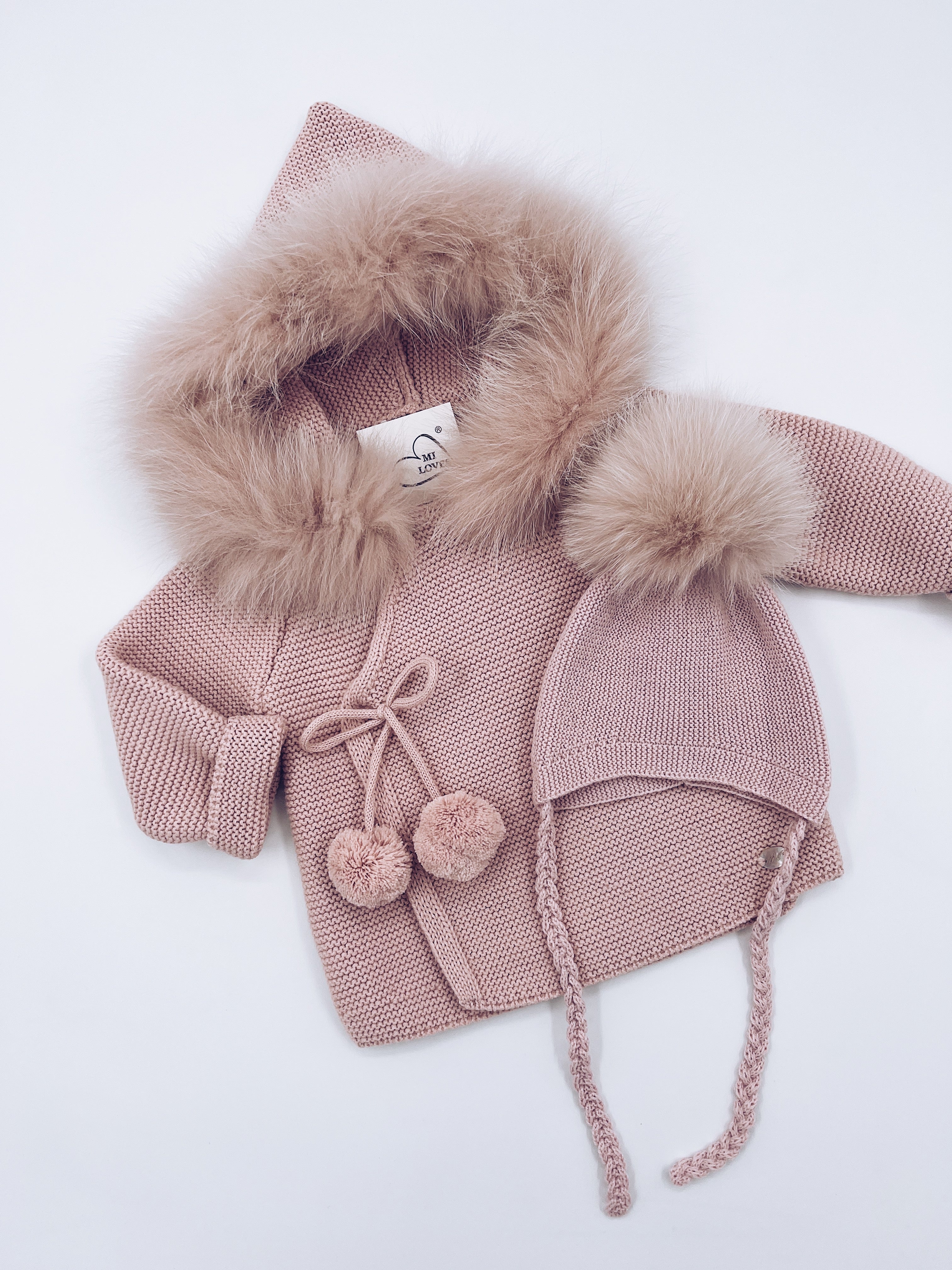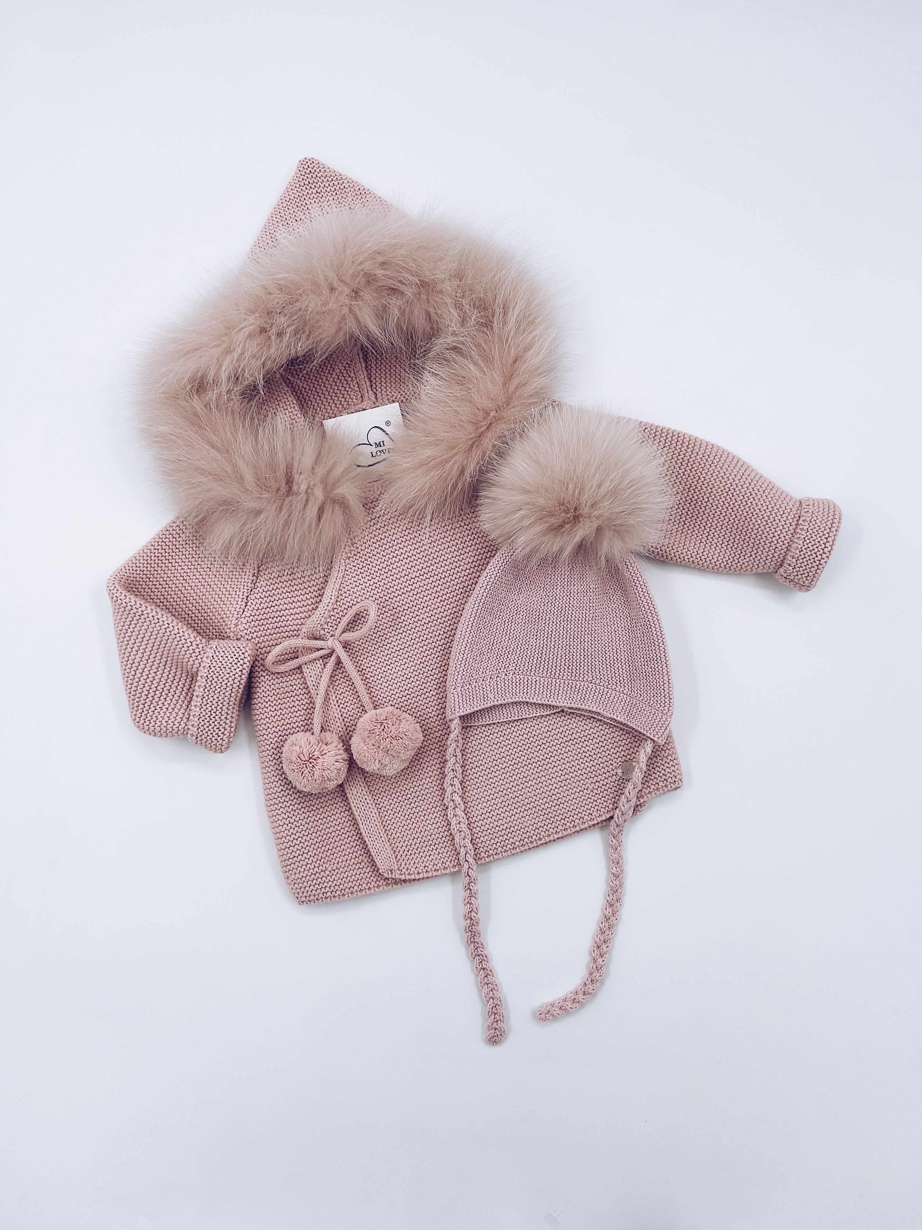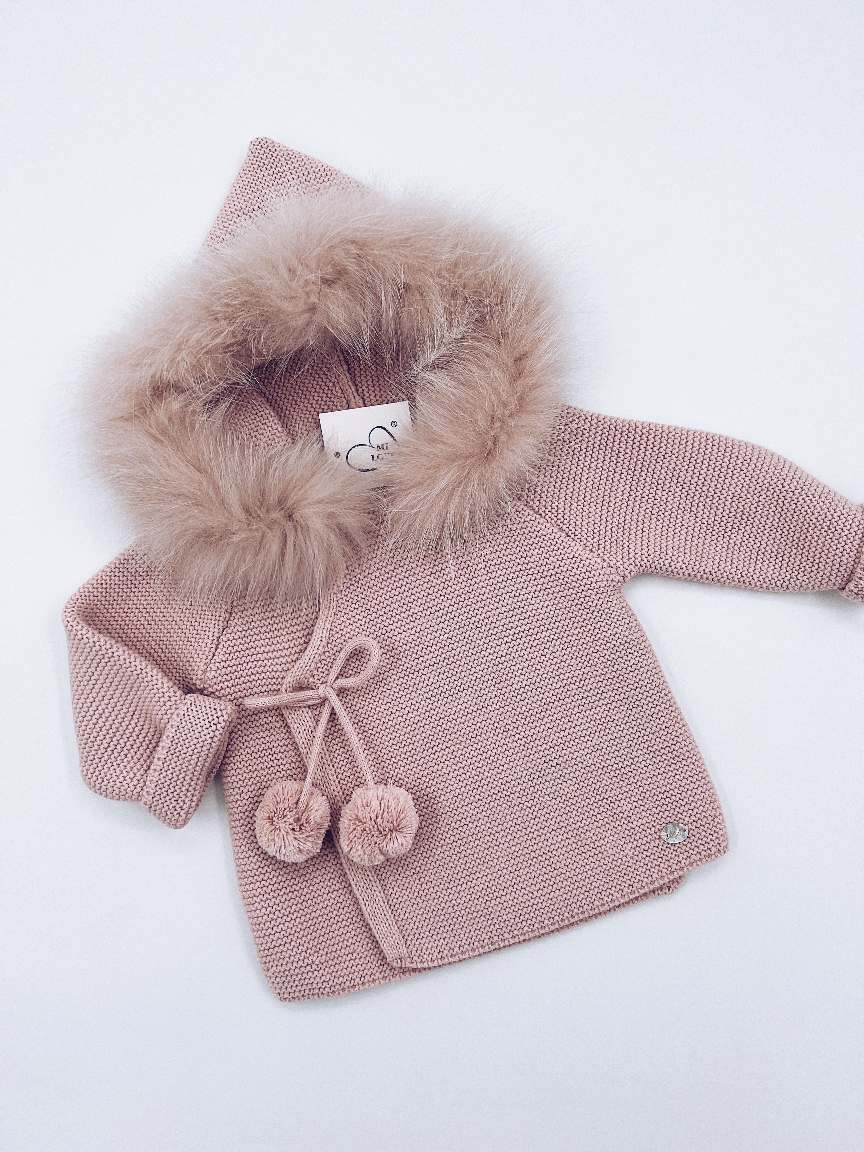 Beautiful Pink knitted Cardigan with Luxurious fur trim.