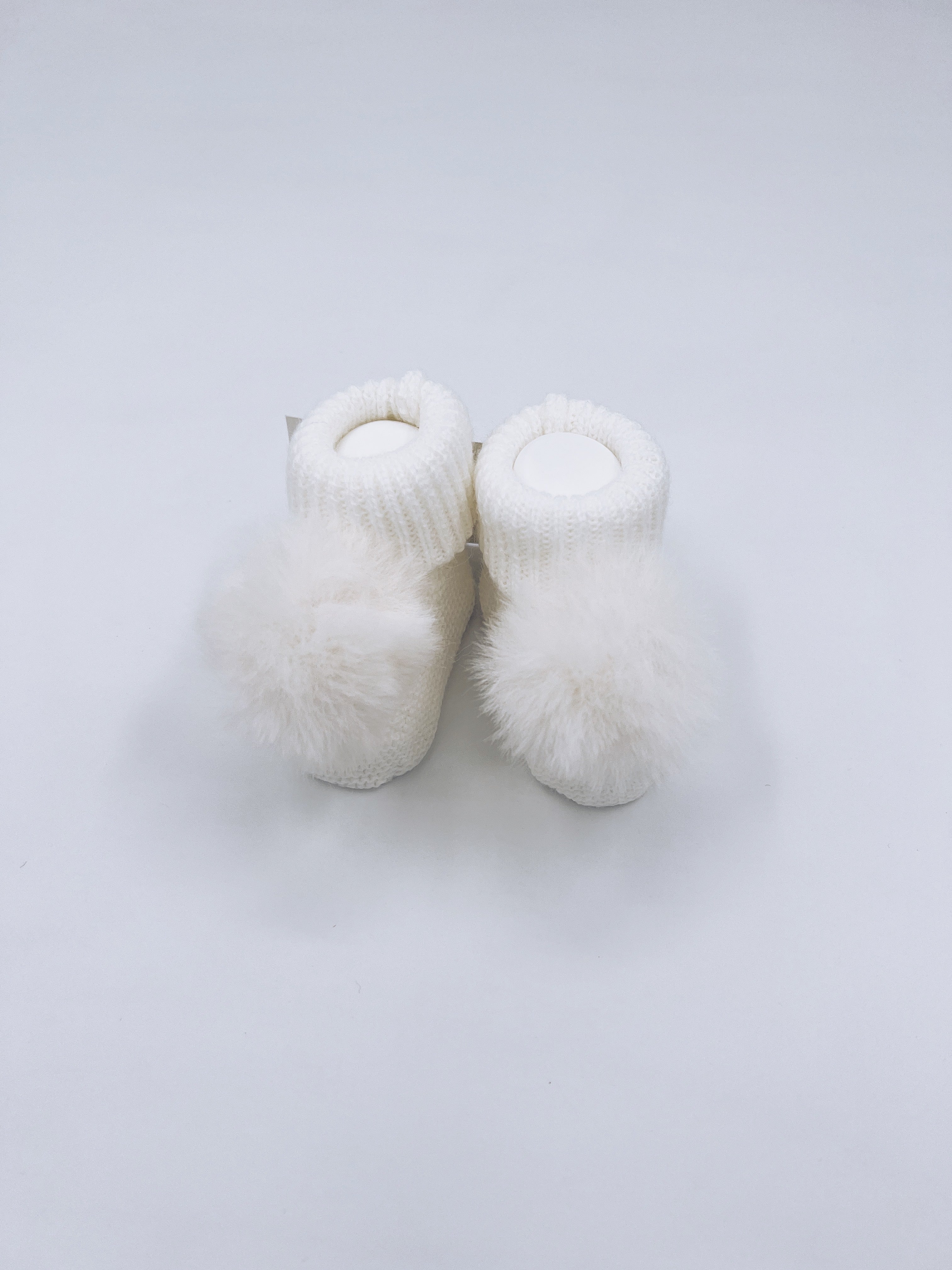 Ivory knitted Pompom booties.