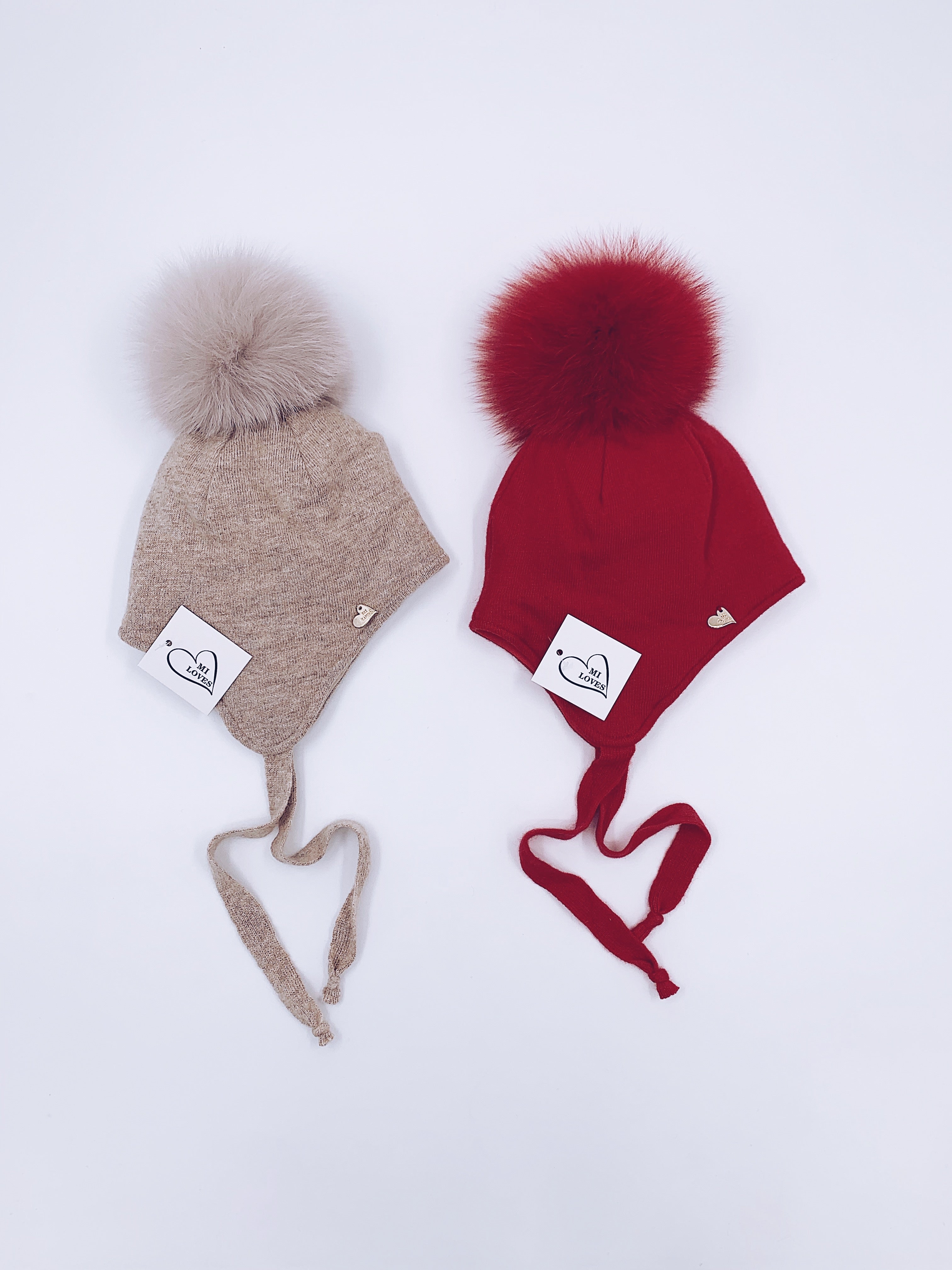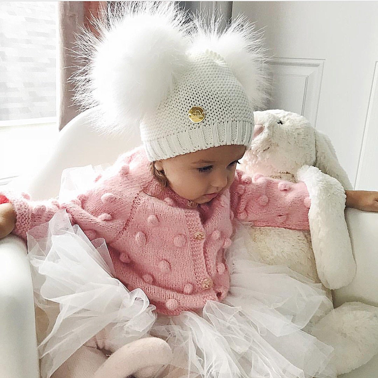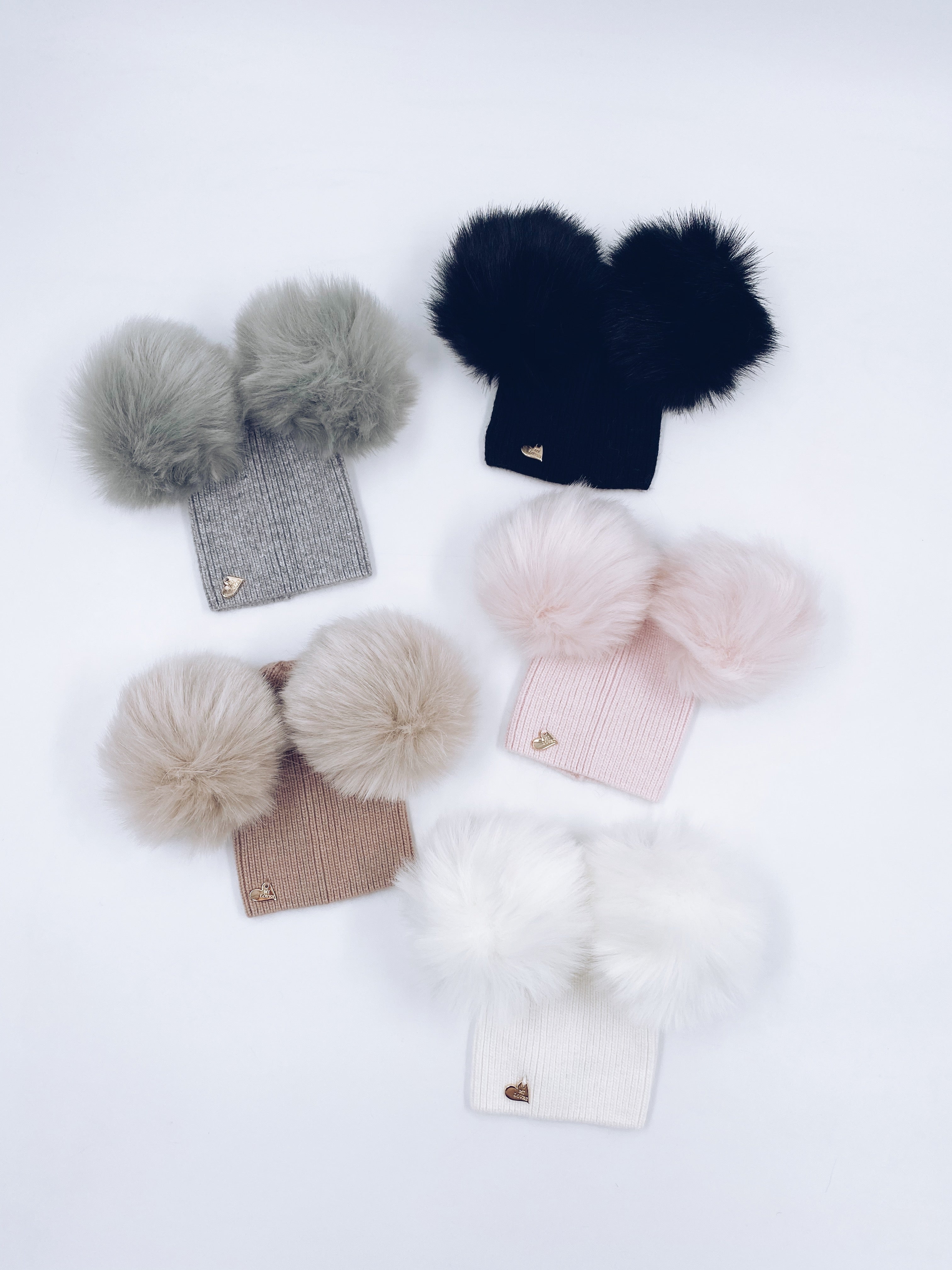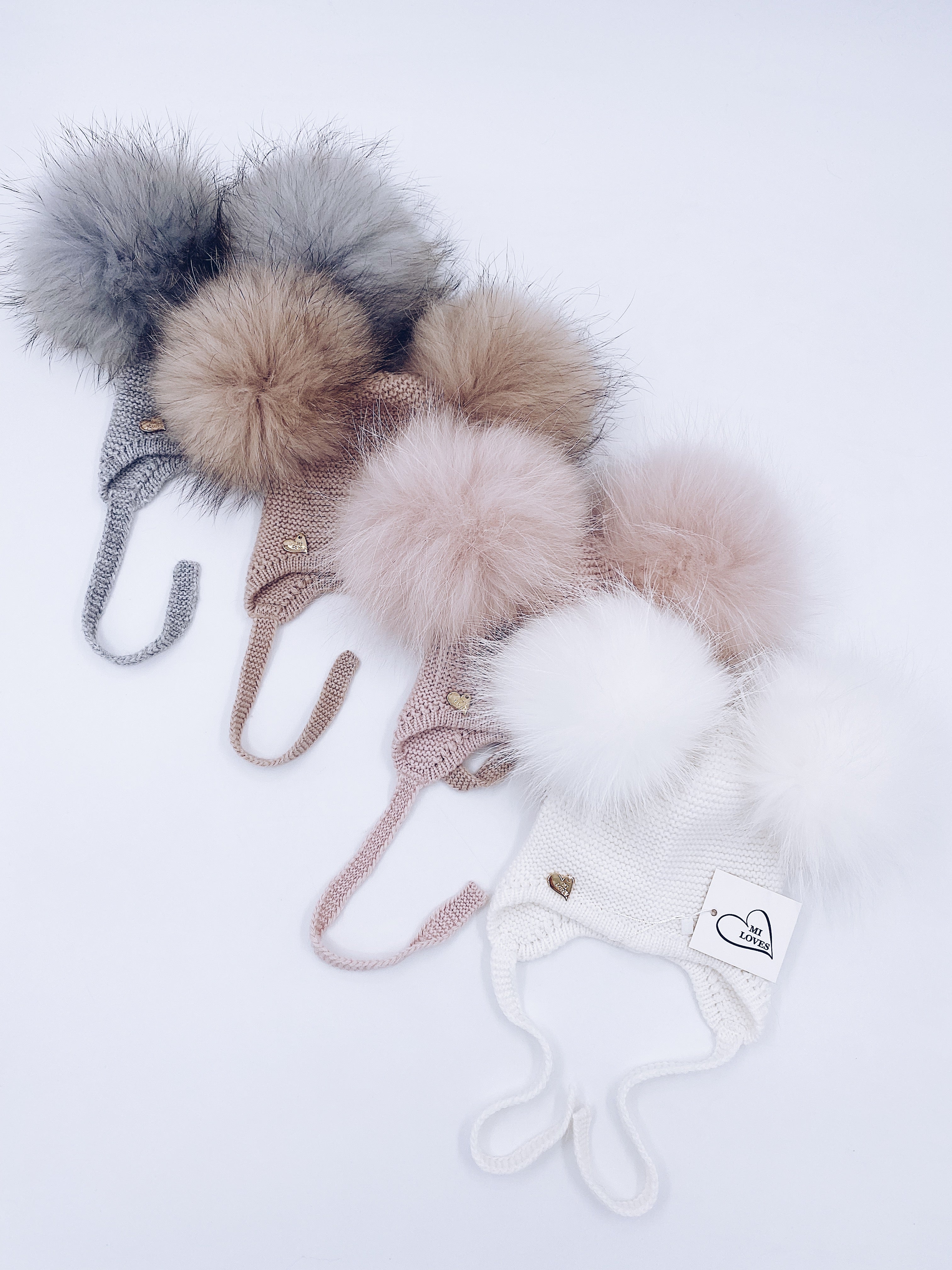 MI LOVES SIGNATURE Angora Baby Double pompom hat with Synthetic fur pom-poms.