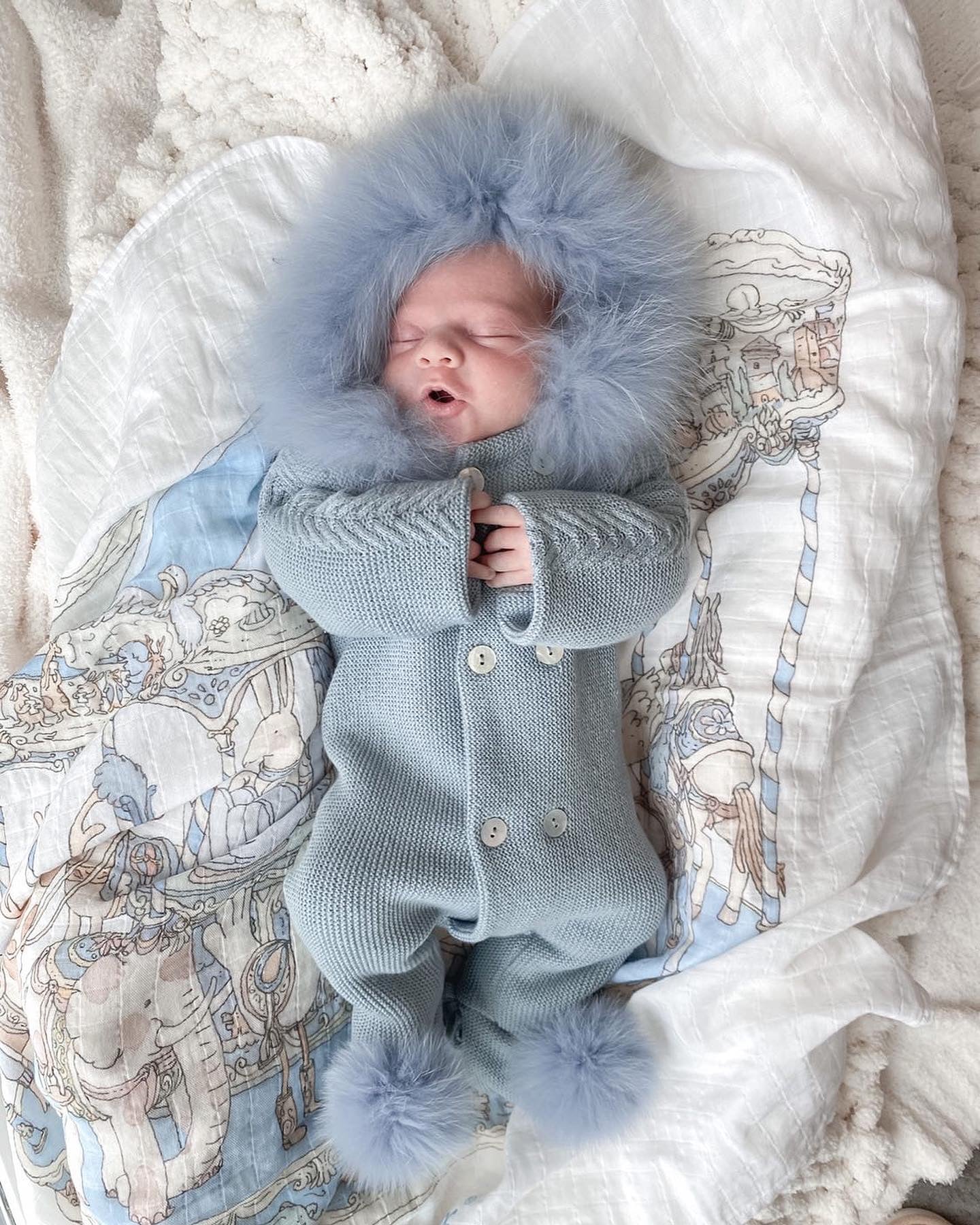 MI LOVES SIGNATURE Fox fur trim/pompoms Baby Pramsuit(ALL COLOURS)