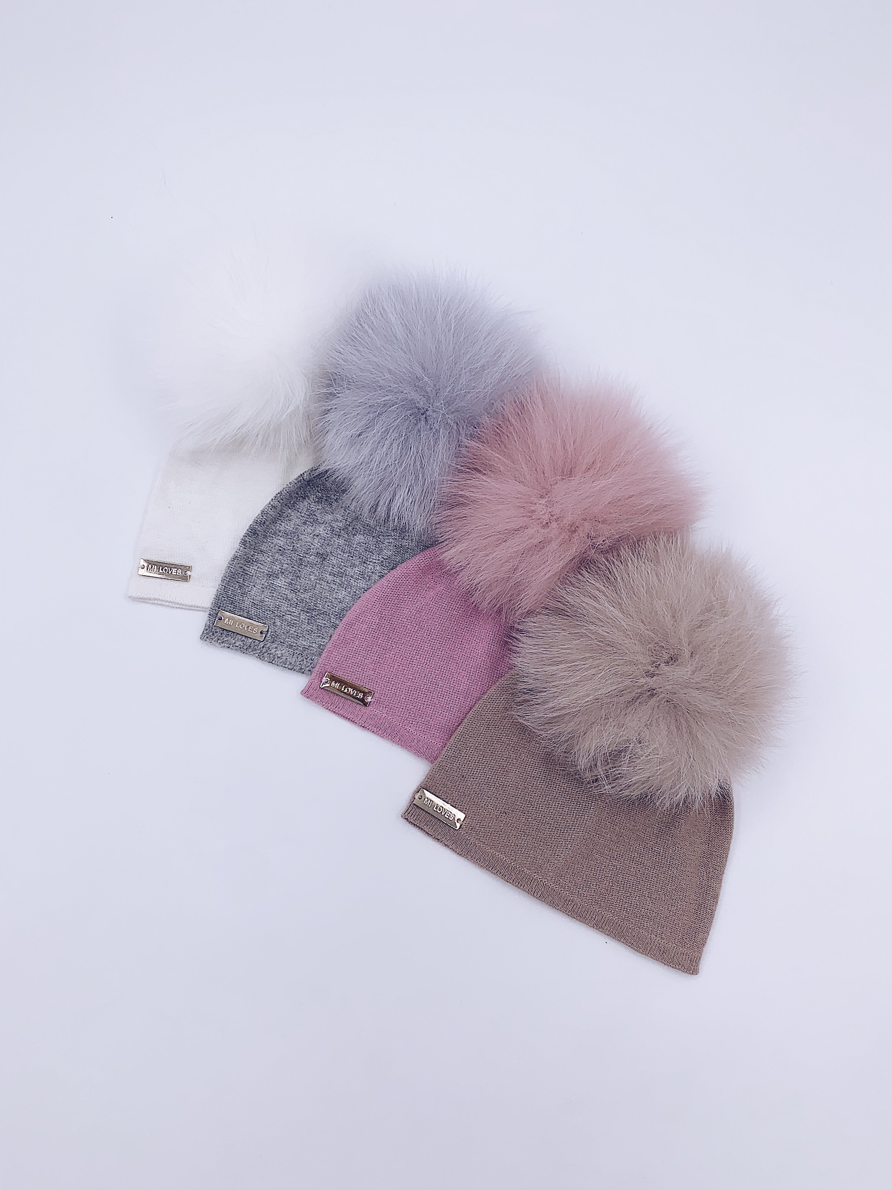 MI LOVES SIGNATURE Angora Adult/Big kids hat with Synthetic fur pompom